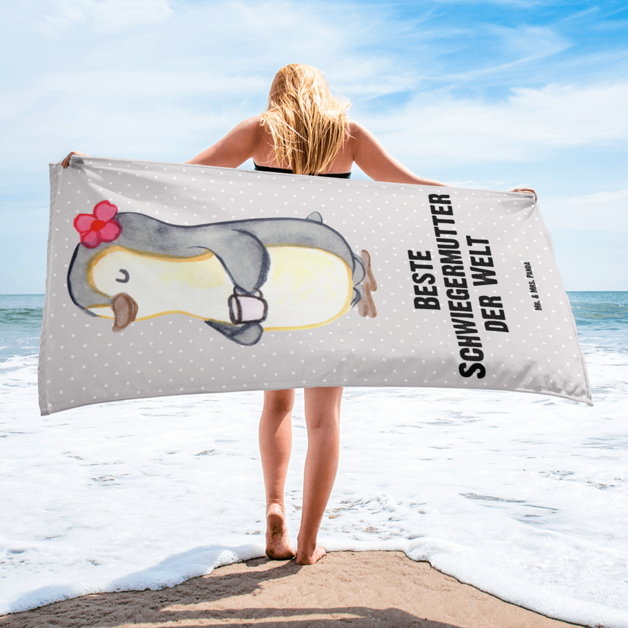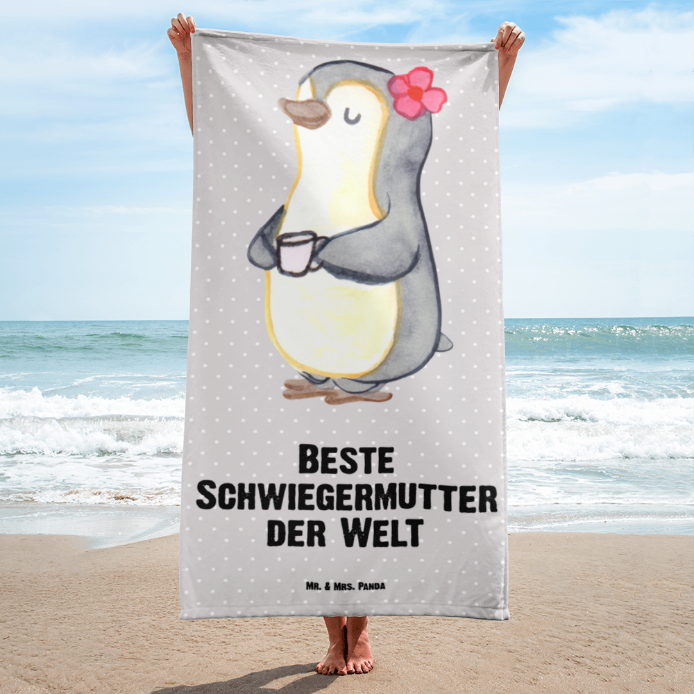 XL Badehandtuch Pinguin Beste Schwiegermutter der Welt - Grau Pastell