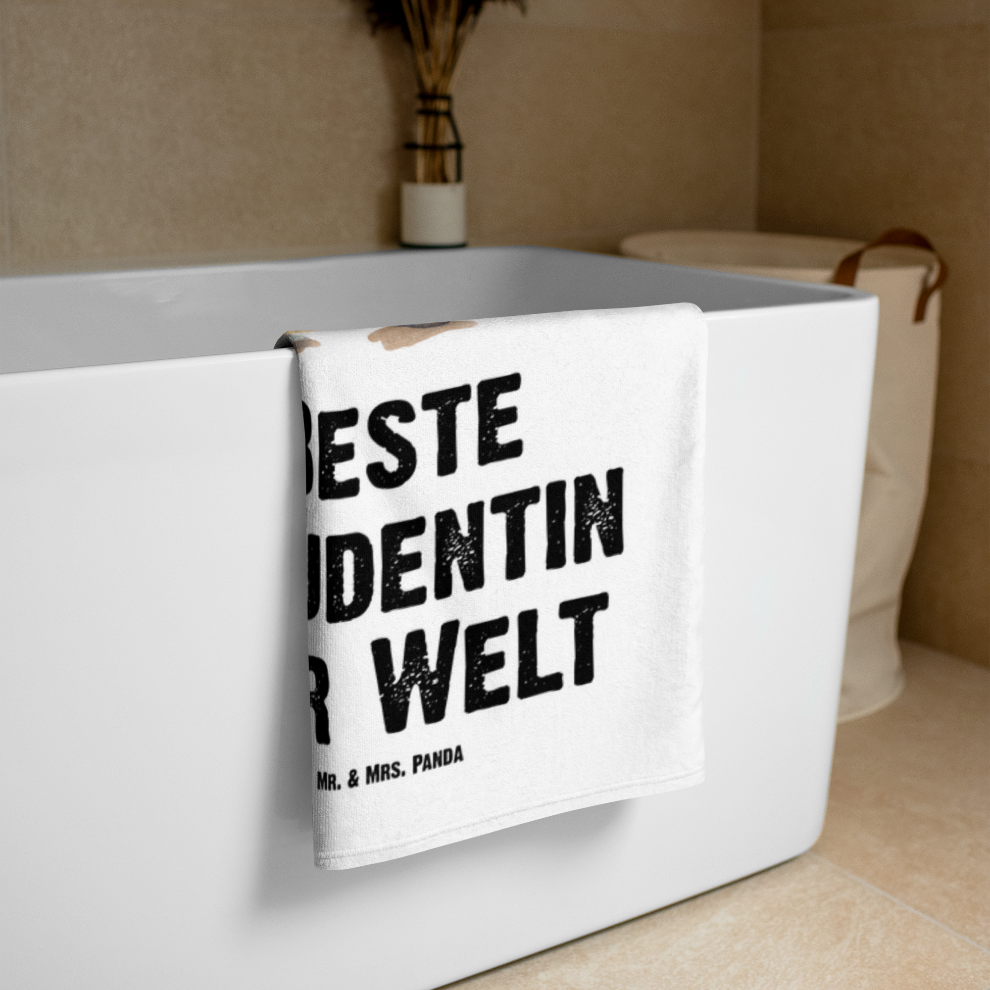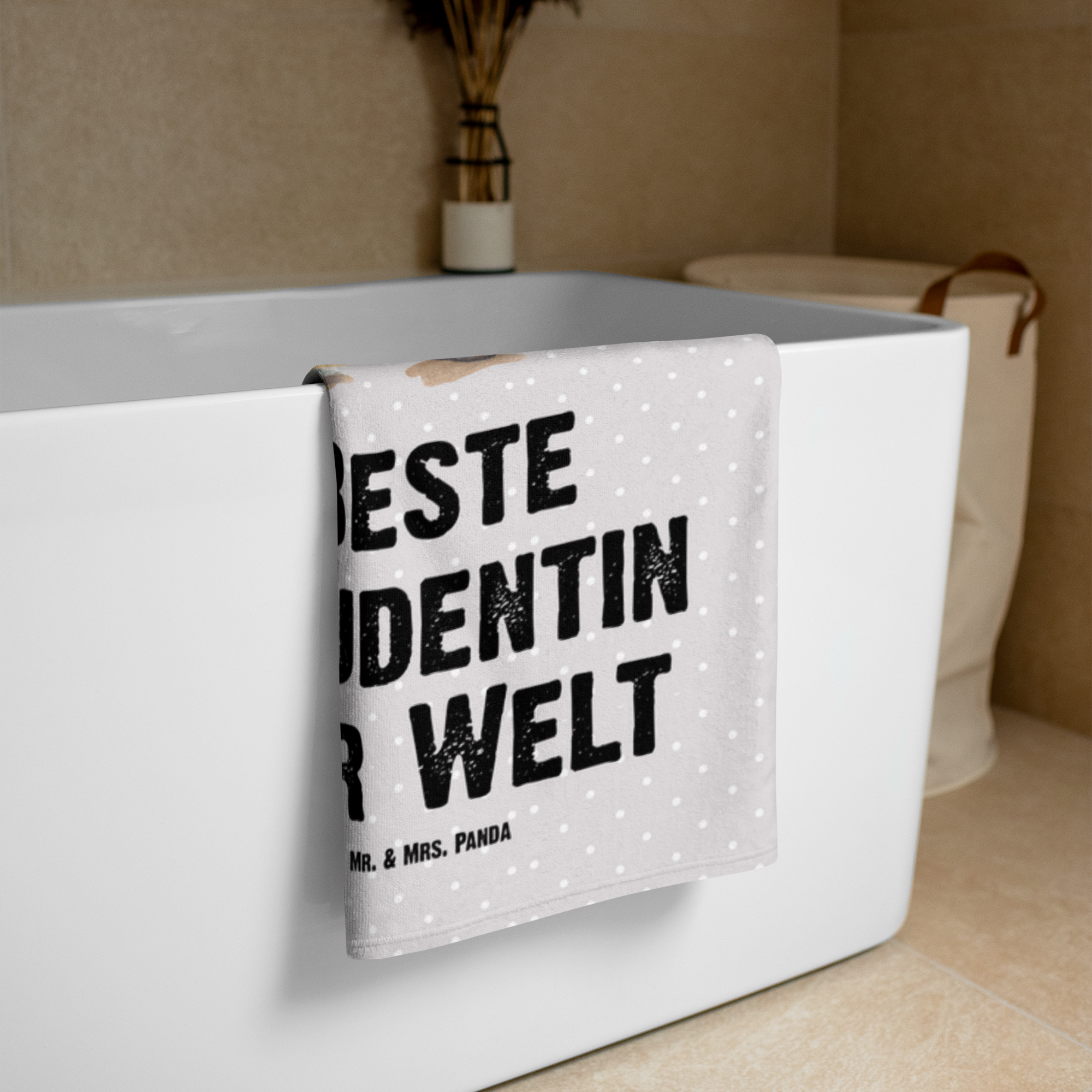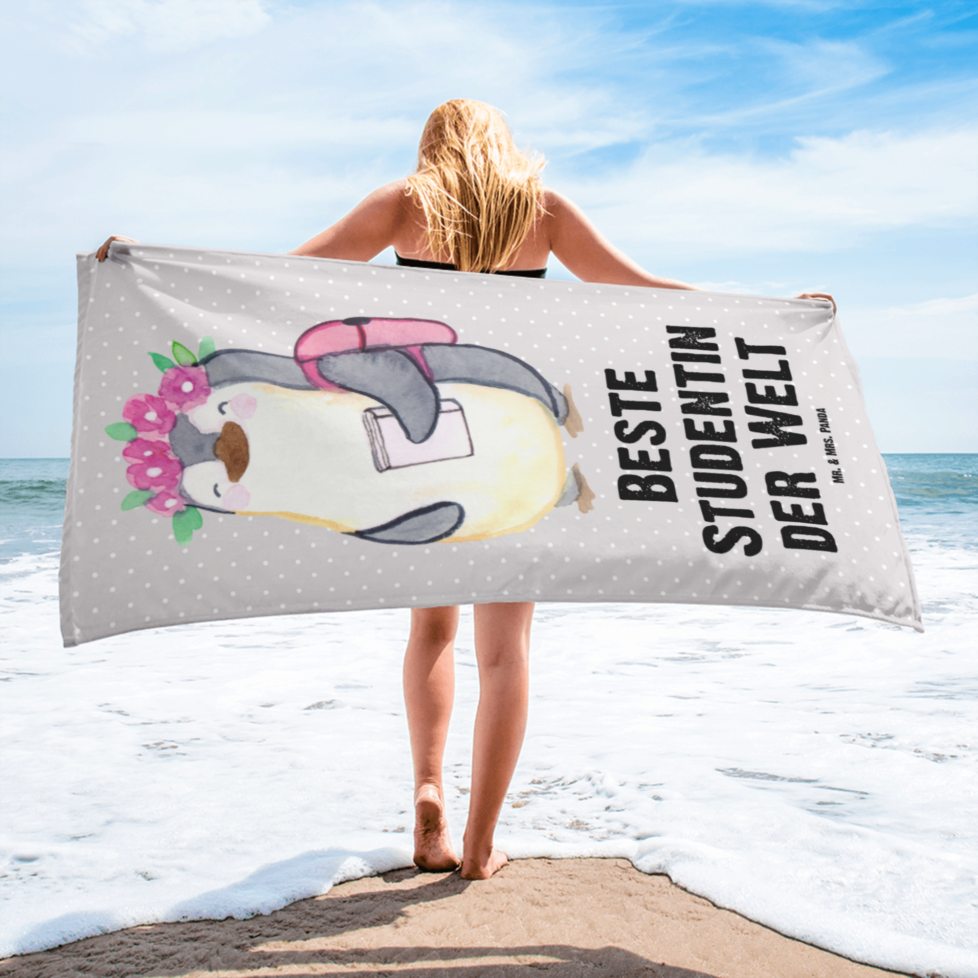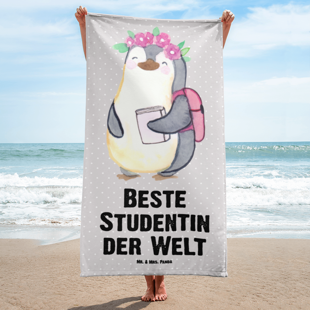 XL Badehandtuch Pinguin Beste Studentin der Welt - Grau Pastell