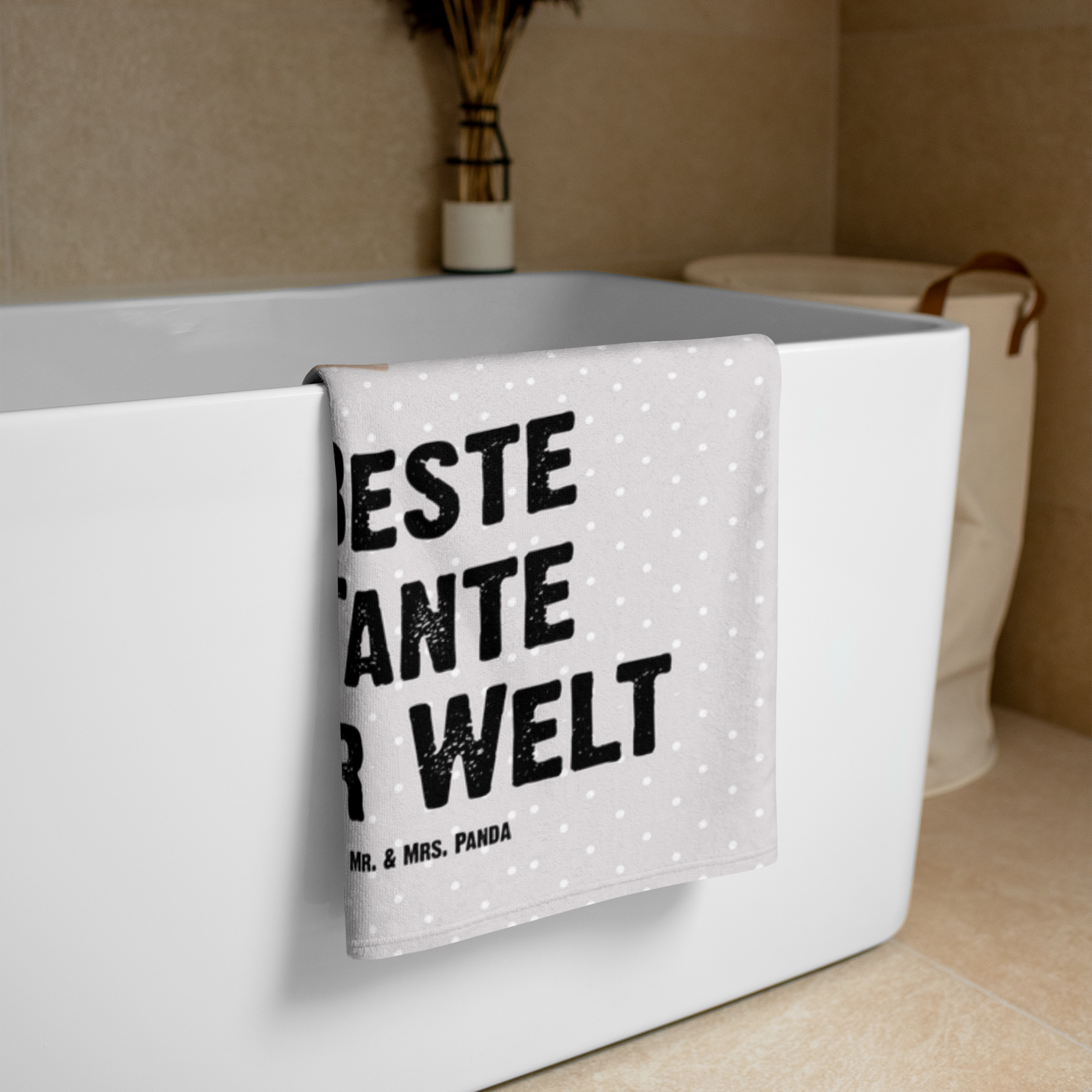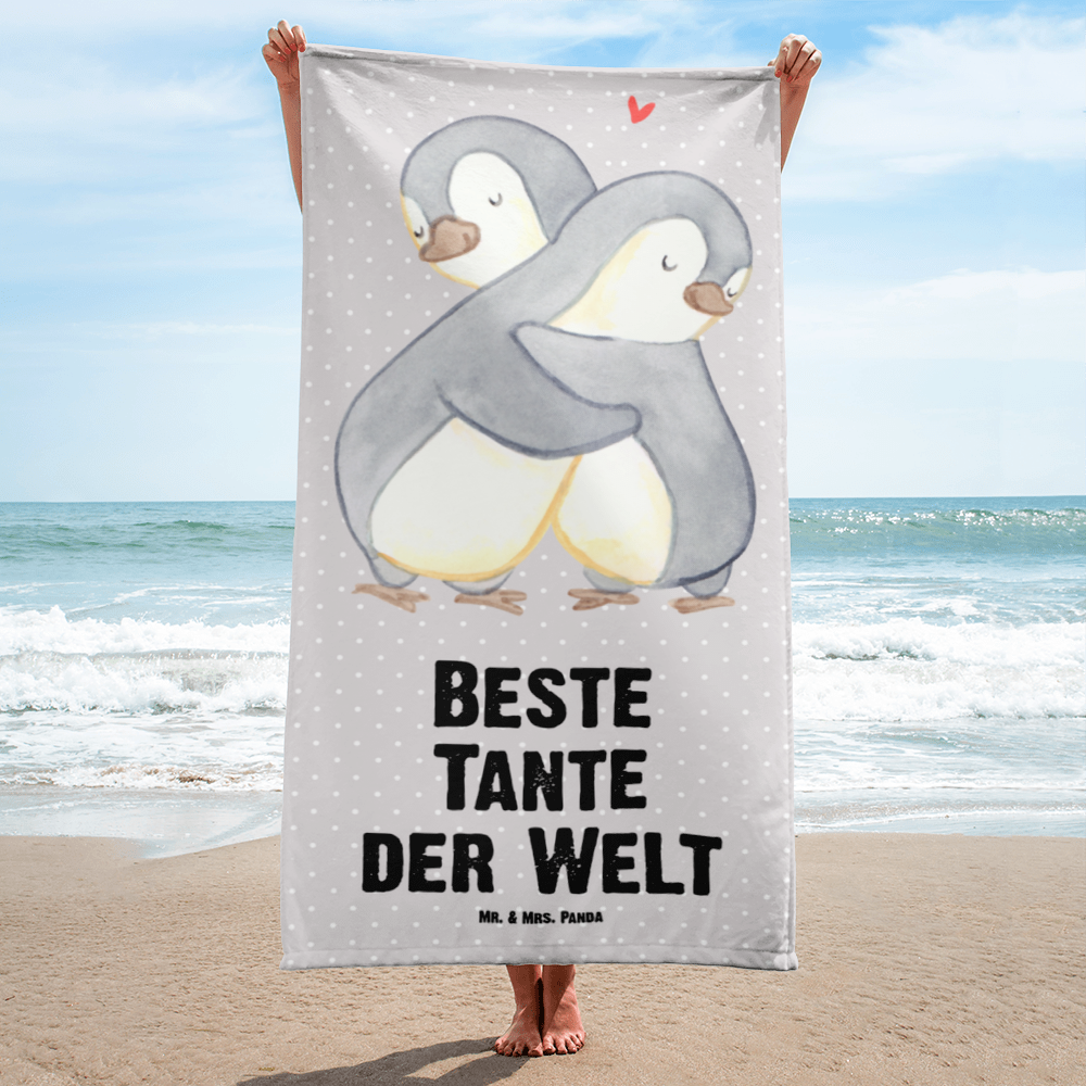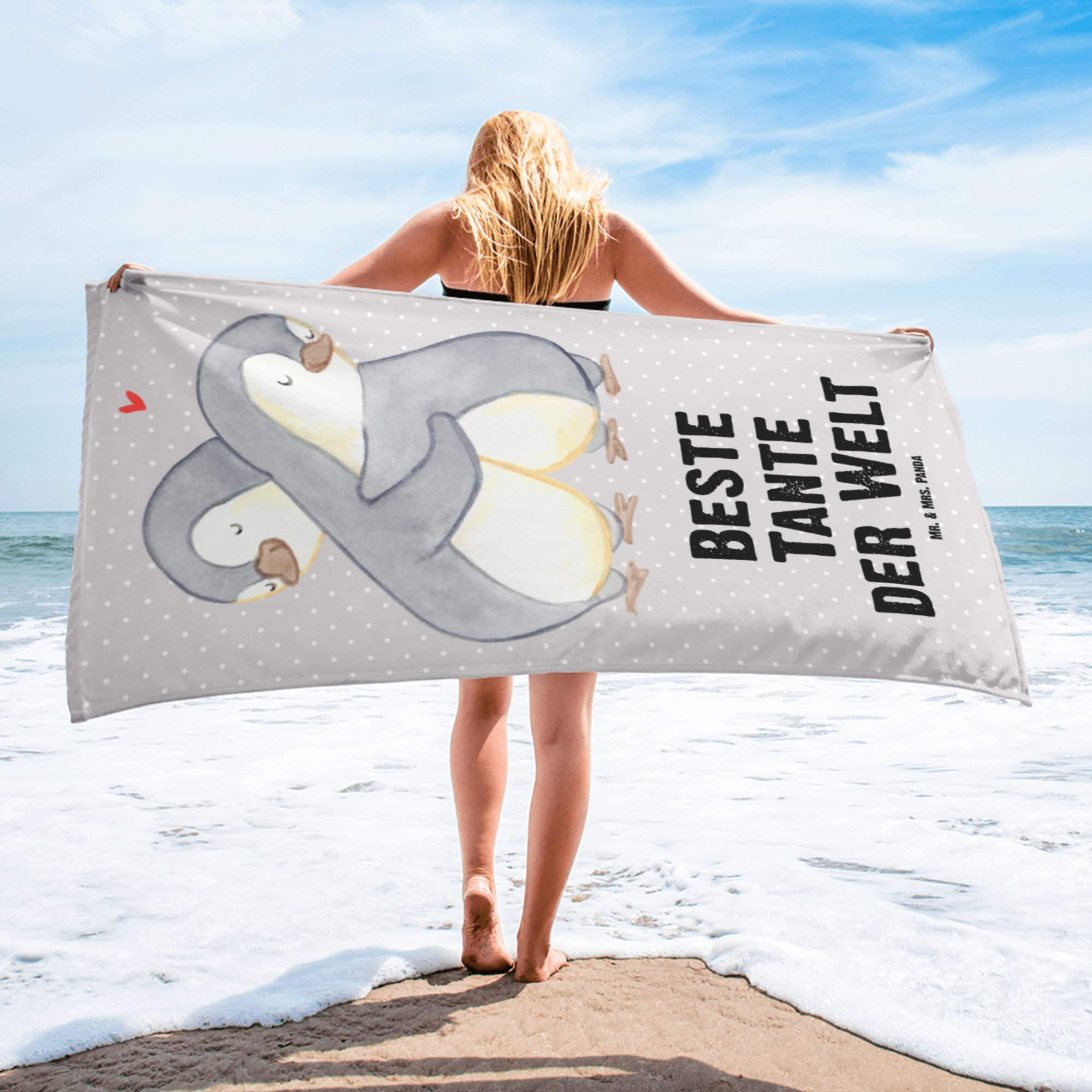 XL Badehandtuch Pinguin Beste Tante der Welt - Grau Pastell