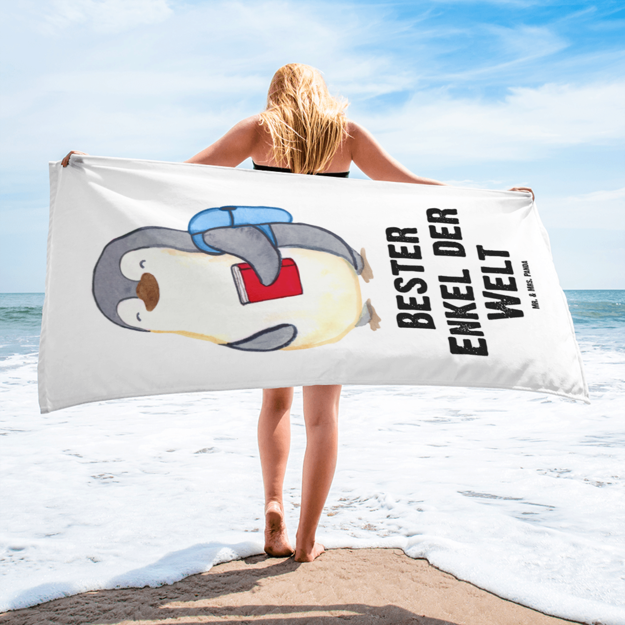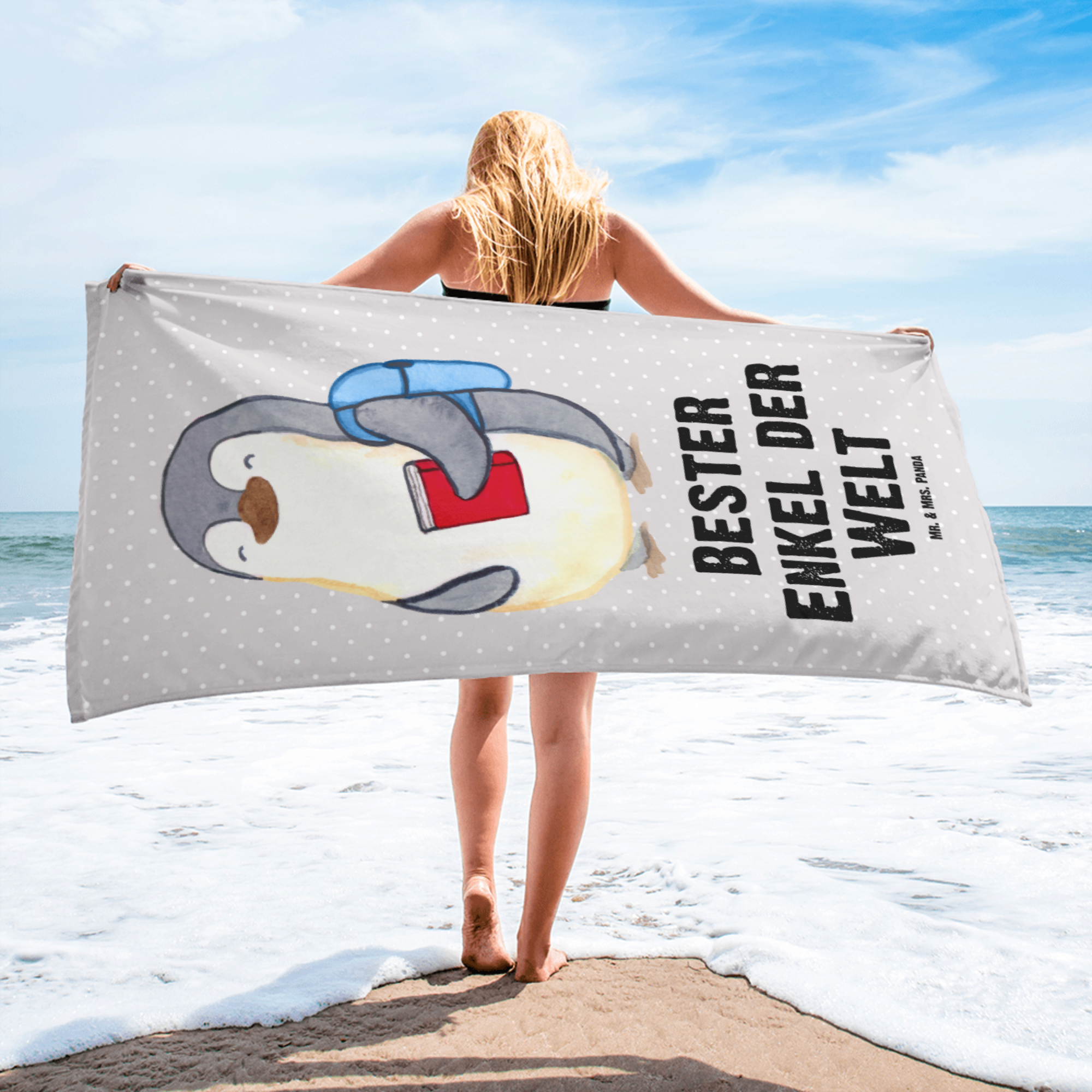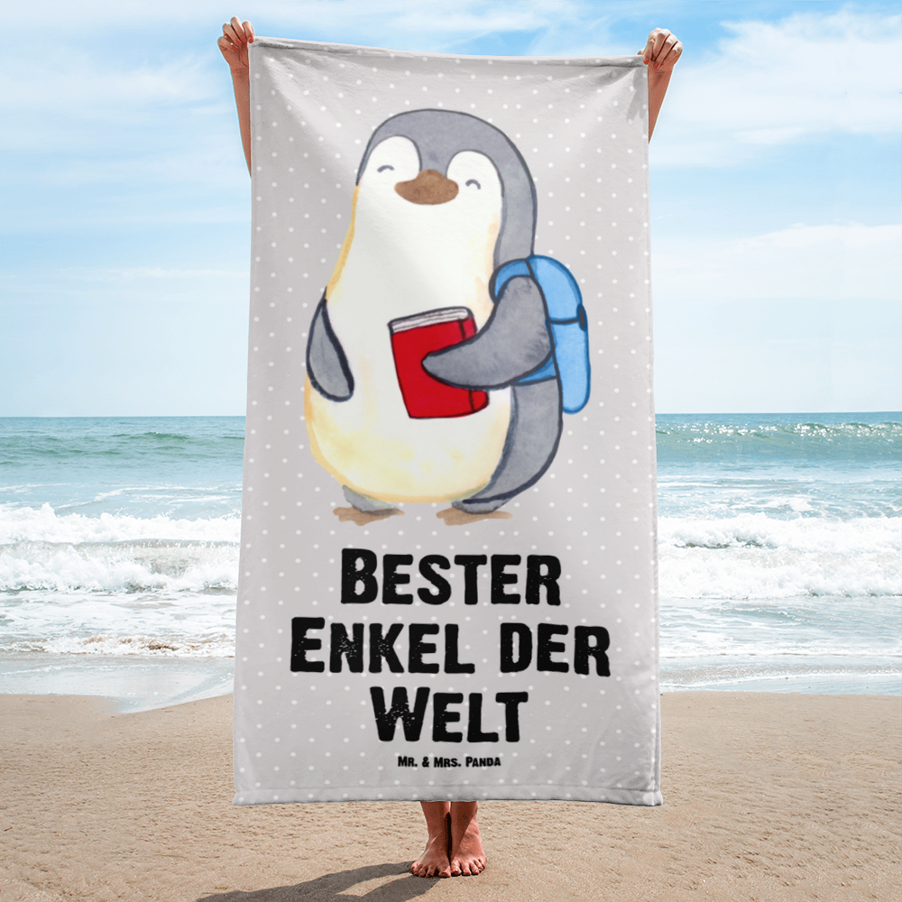 XL Badehandtuch Pinguin Bester Enkel der Welt - Grau Pastell