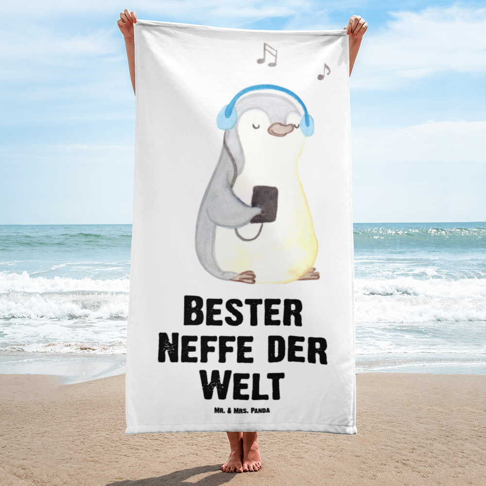 XL Badehandtuch Pinguin Bester Neffe der Welt - Grau Pastell