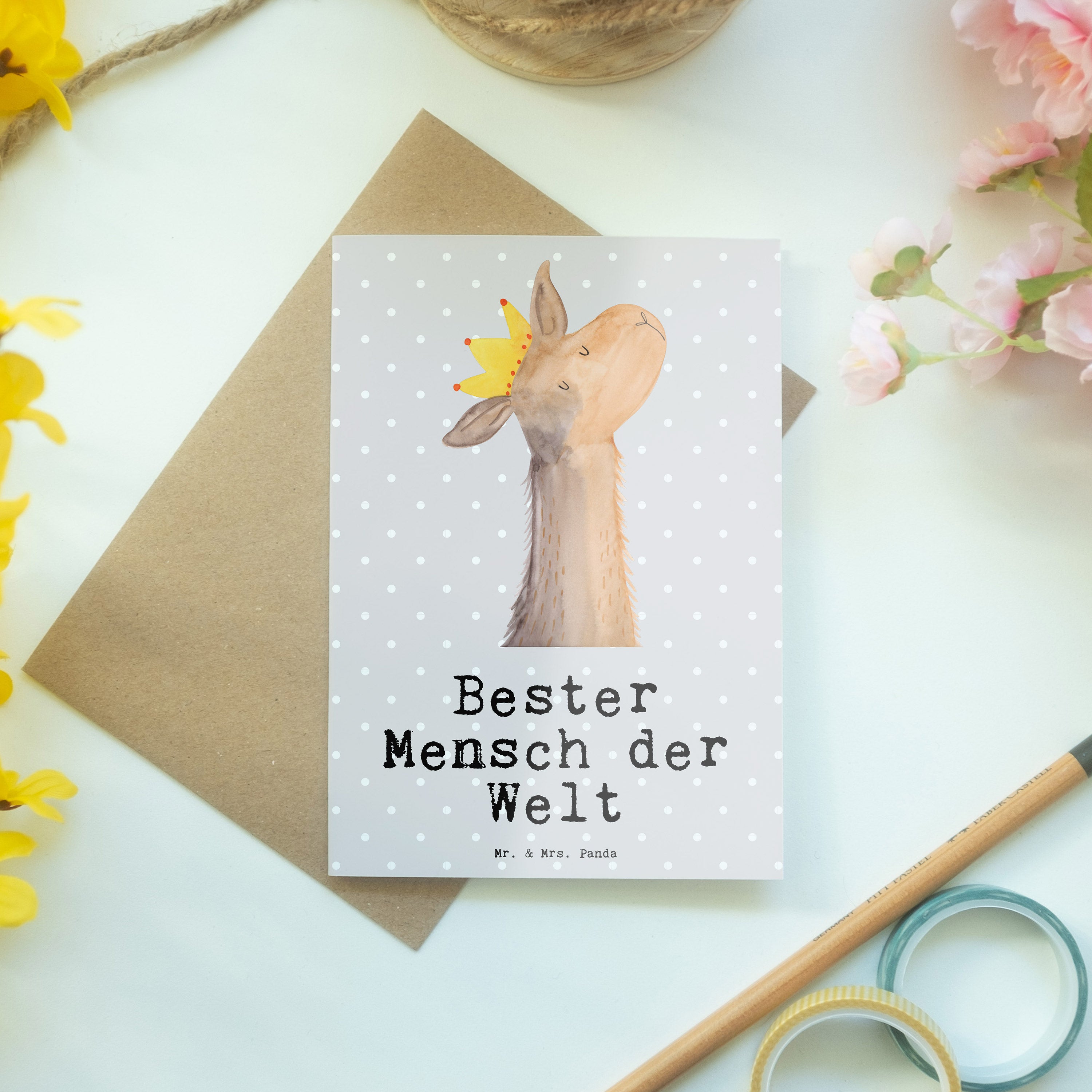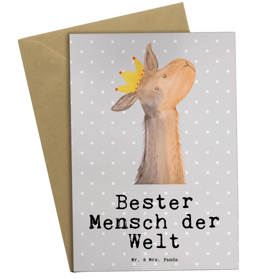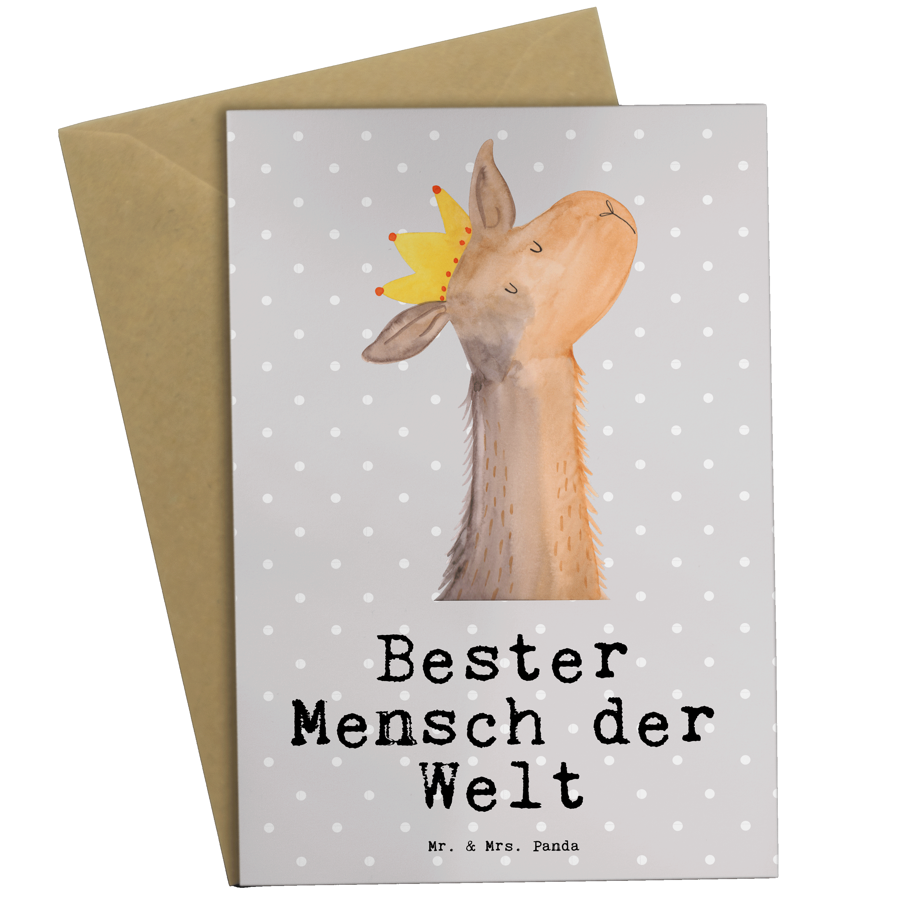 Grußkarte Lama Bester Mensch der Welt - Grau Pastell