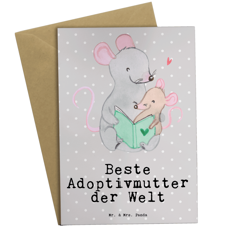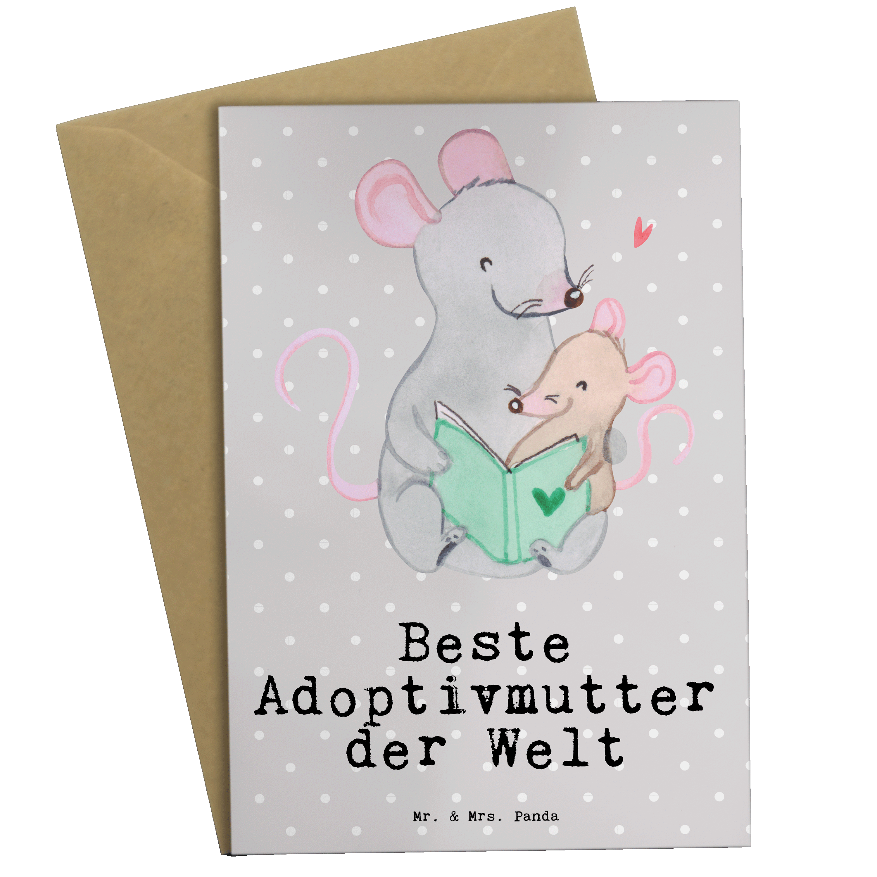 Grußkarte Maus Beste Adoptivmutter der Welt - Grau Pastell