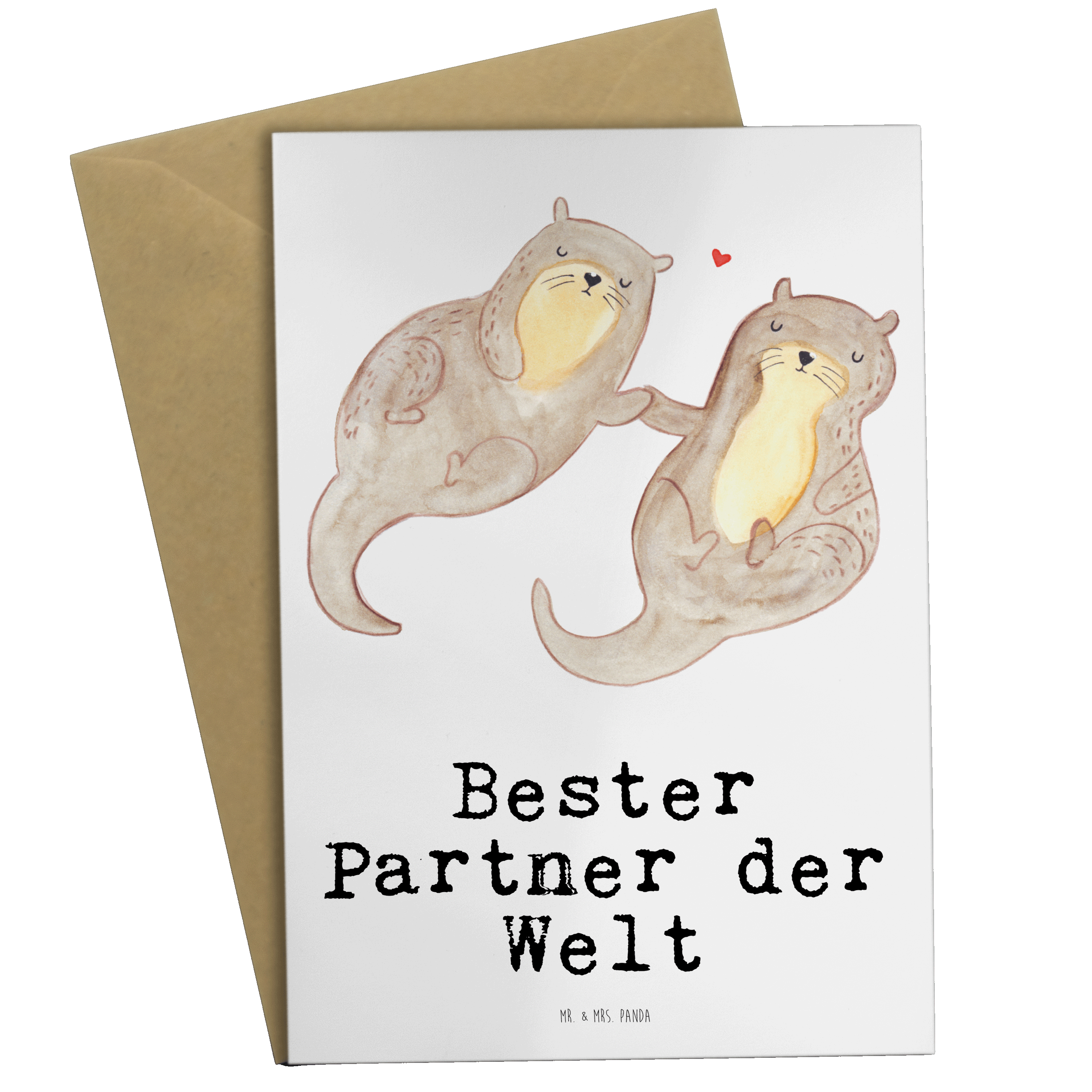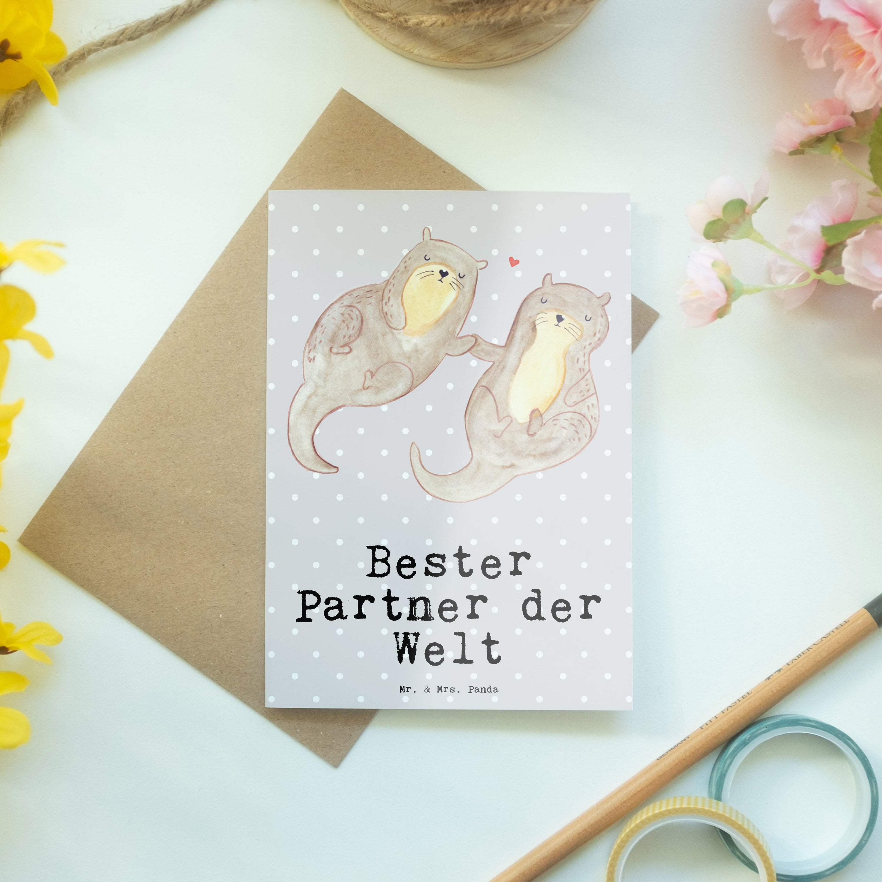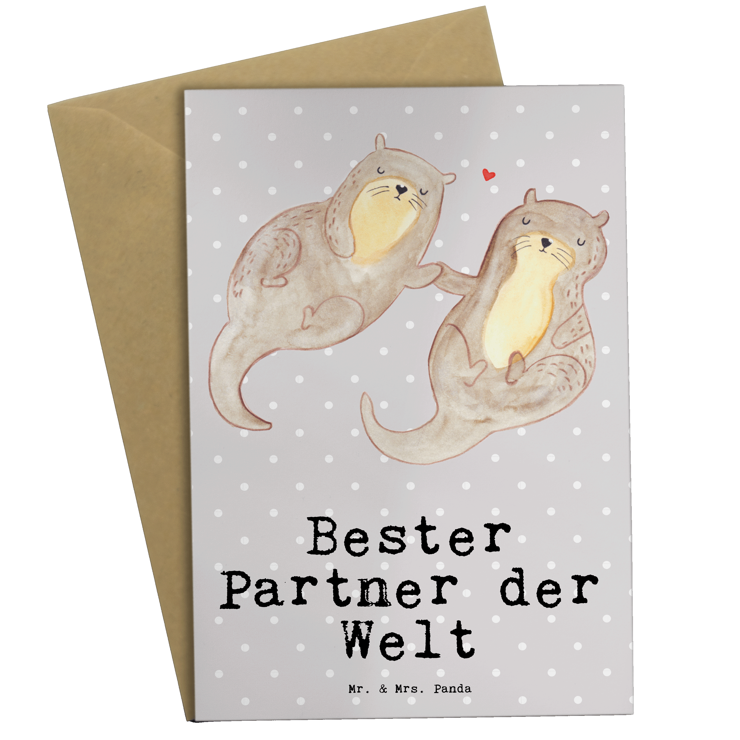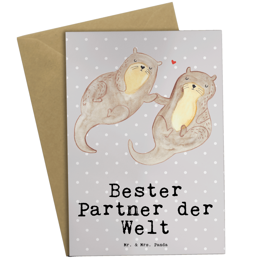 Grußkarte Otter Bester Partner der Welt - Grau Pastell