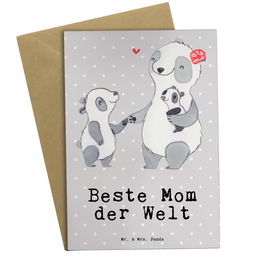 Grußkarte Panda Beste Mom der Welt - Grau Pastell