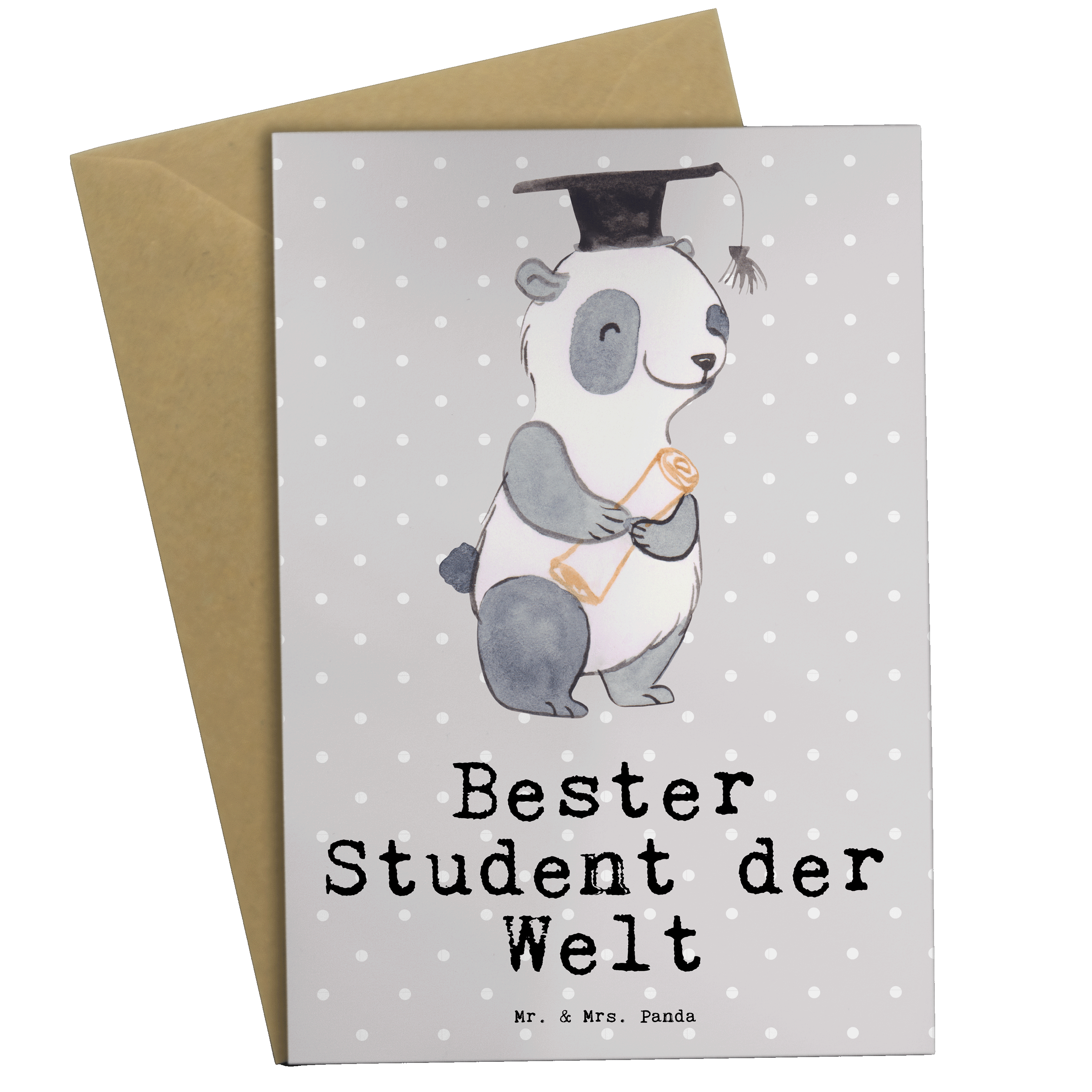 Grußkarte Panda Bester Student der Welt - Grau Pastell
