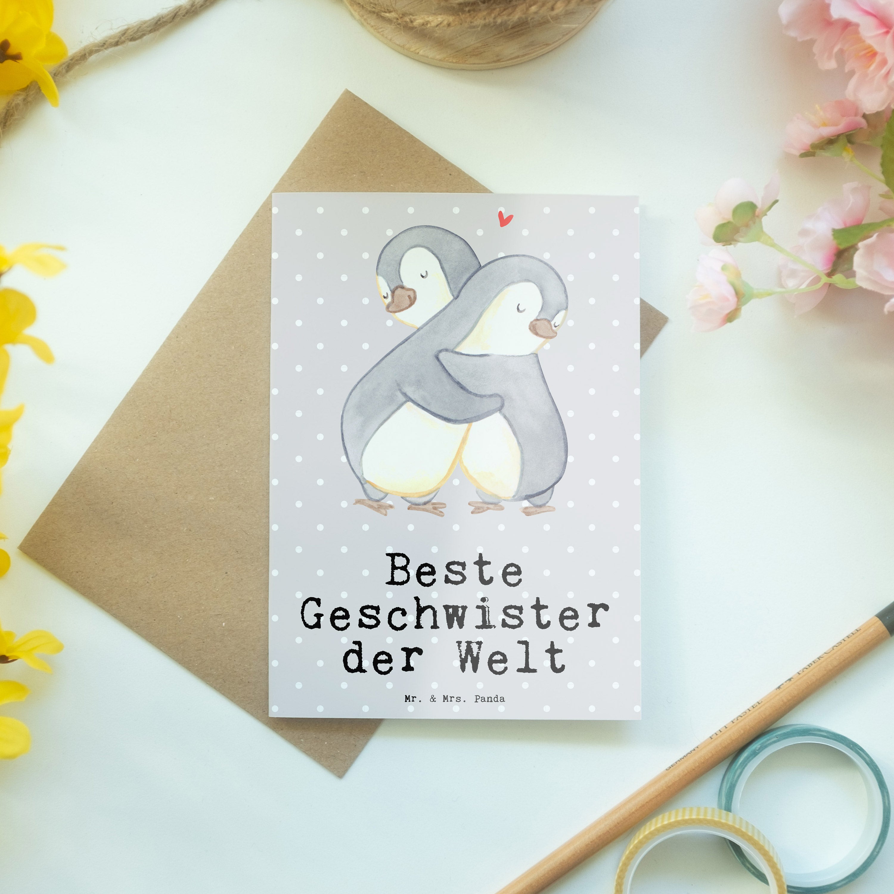 Grußkarte Pinguin Beste Geschwister der Welt - Grau Pastell