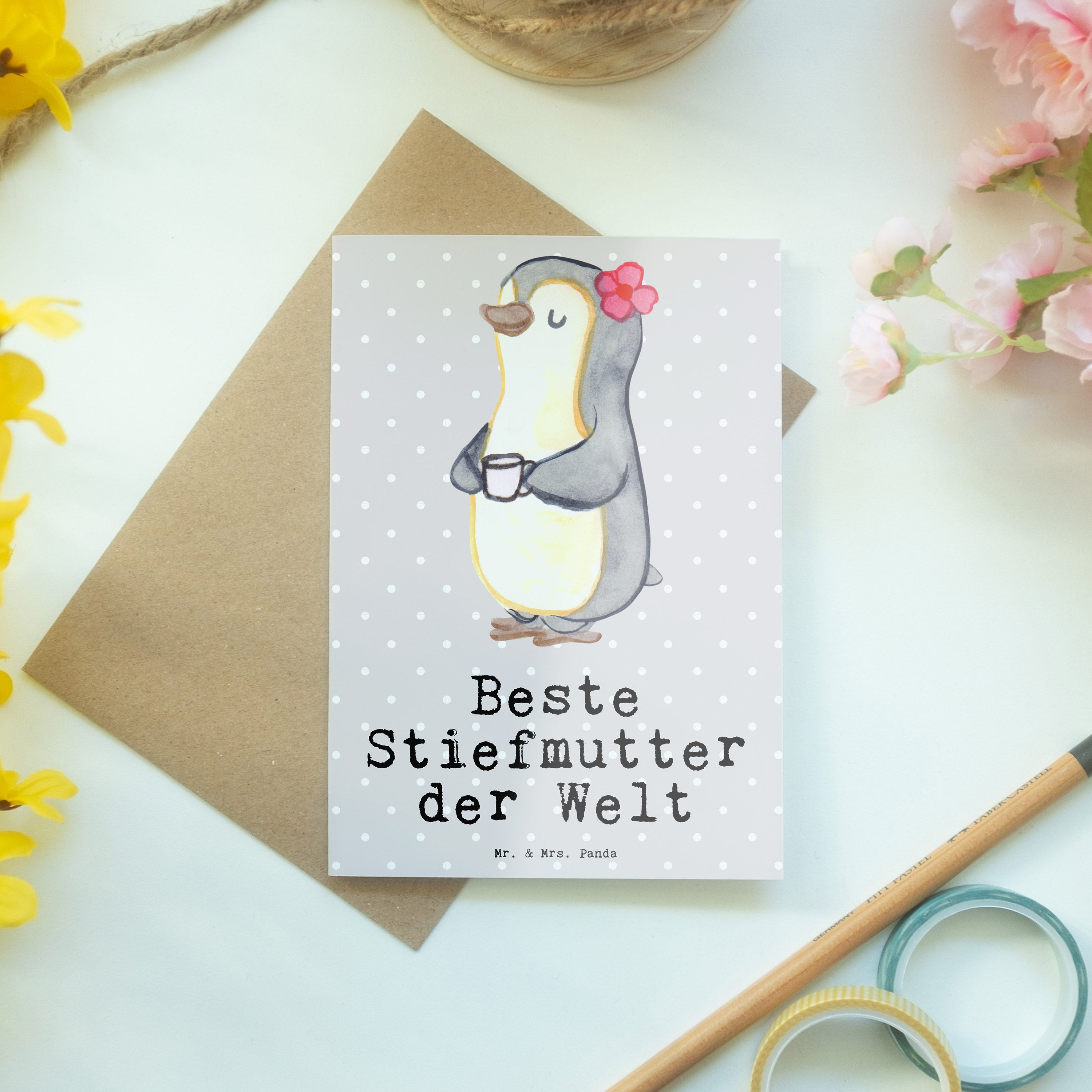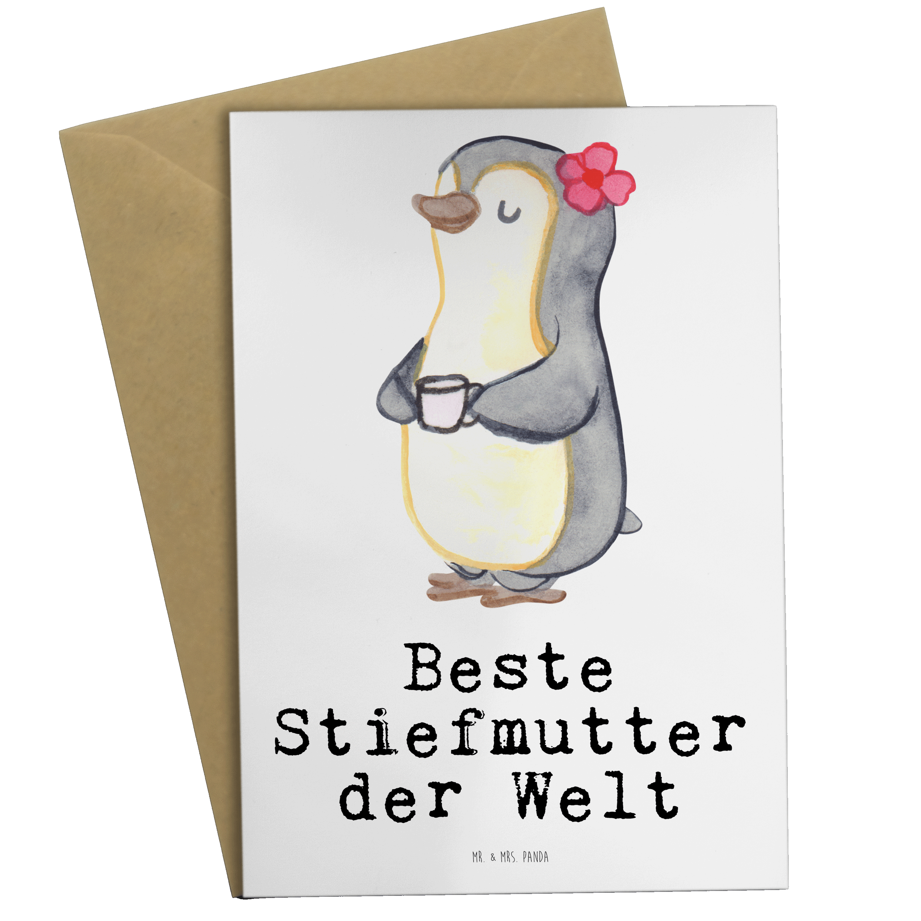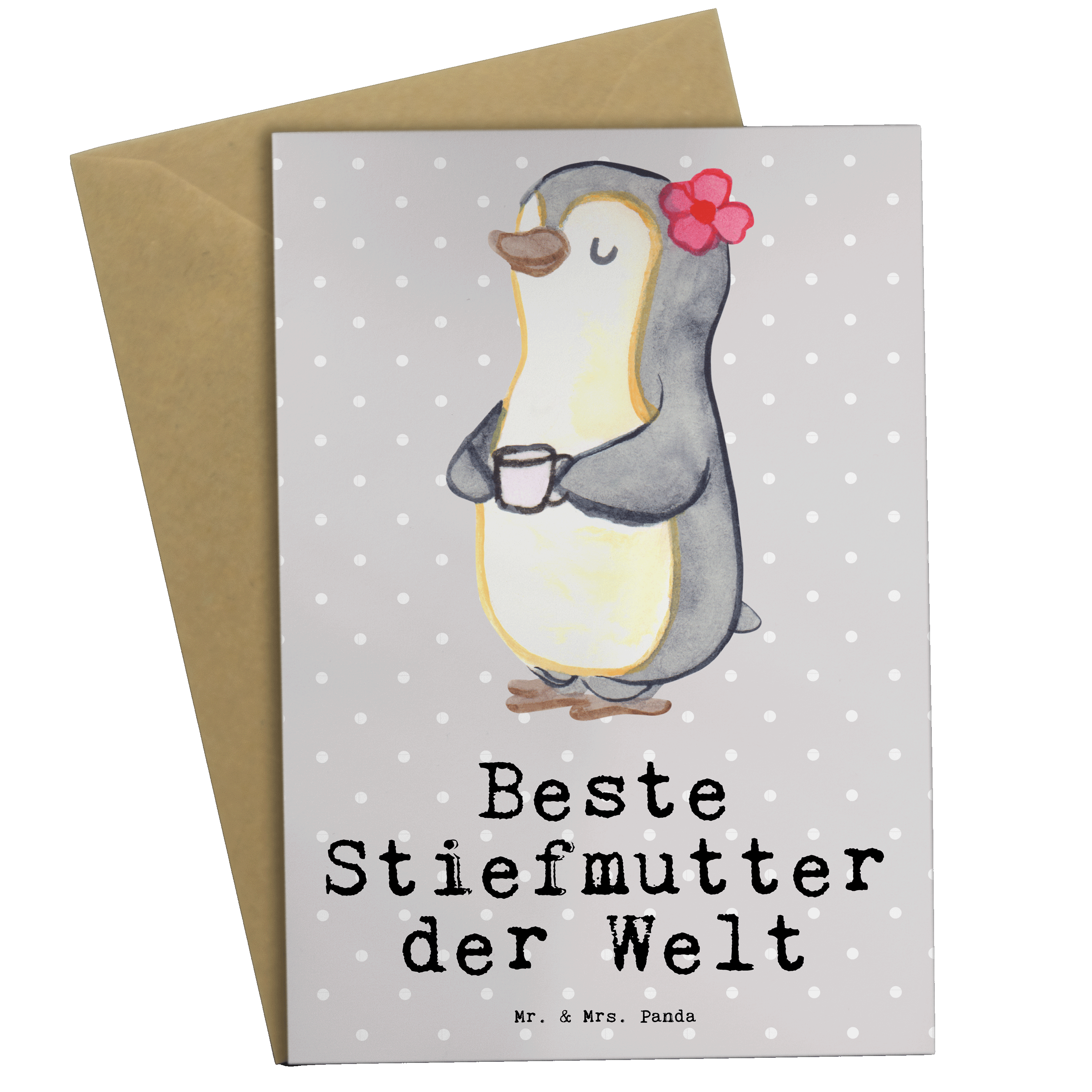 Grußkarte Pinguin Beste Stiefmutter der Welt - Grau Pastell
