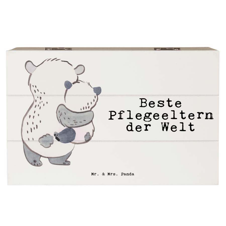 Holzkiste Panda Beste Pflegeeltern der Welt - Weiß - 19 x 12 cm