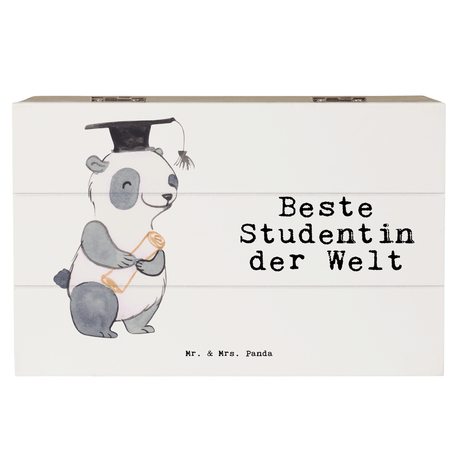 Holzkiste Panda Beste Studentin der Welt - Weiß - 19 x 12 cm