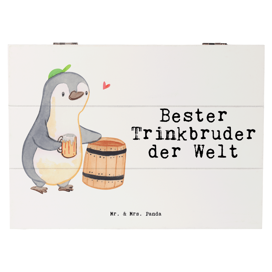 Holzkiste Pinguin Bester Trinkbruder der Welt - 25 x 18 cm - Weiß