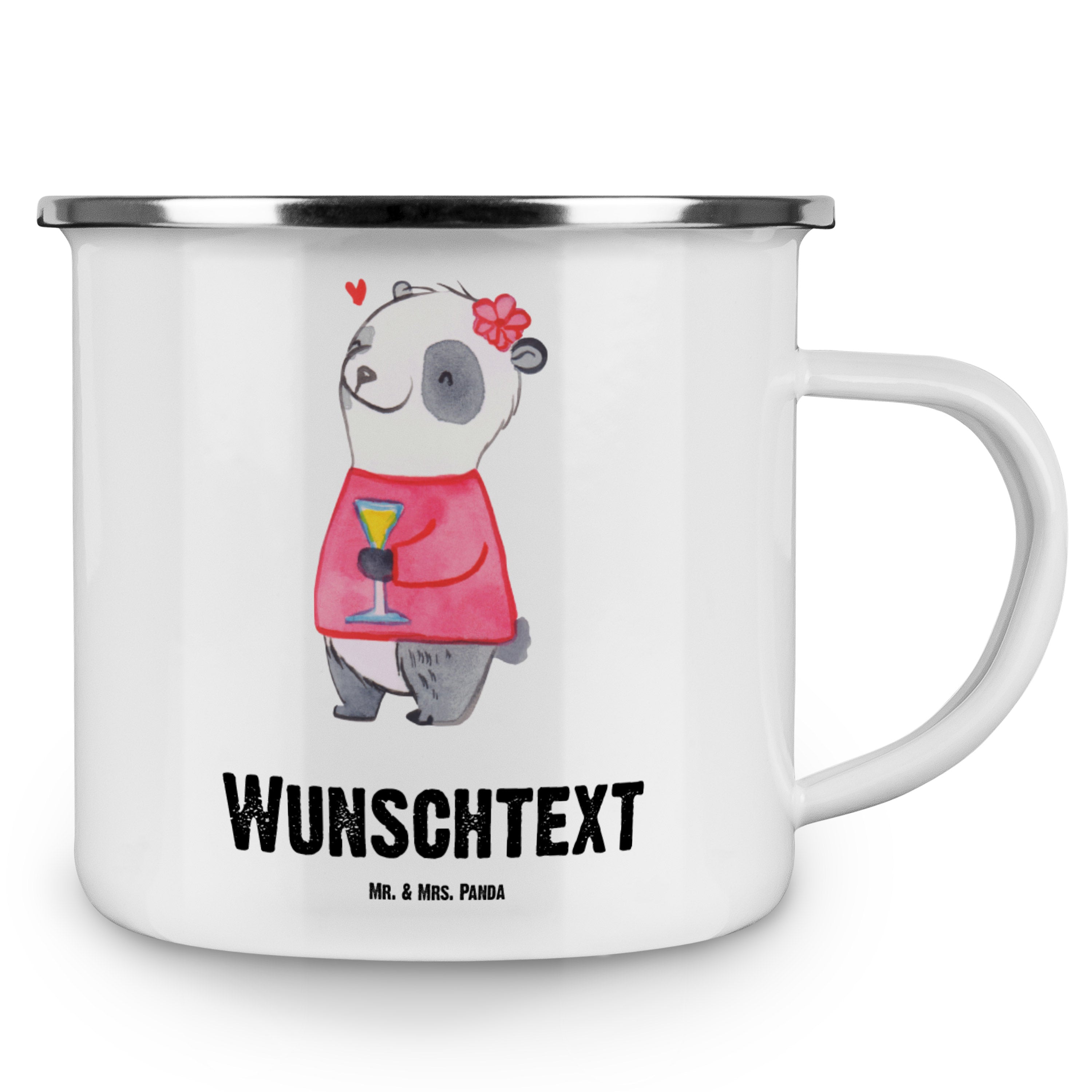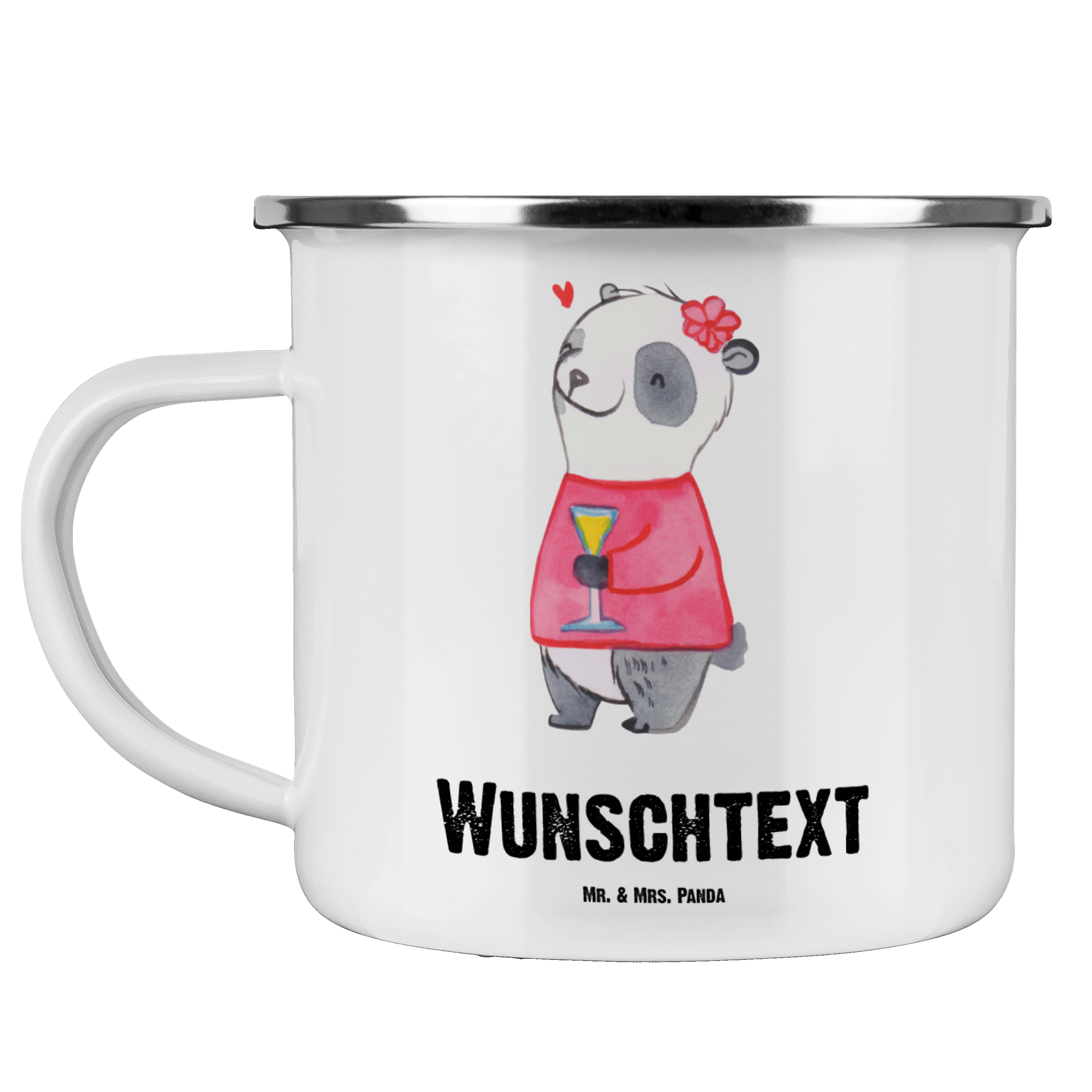 Diese wunderschöne personalisierte Emailletasse von Mr. & Mrs. Panda mit abgesetztem Edelstahl Rand in Emaille Optik ist der perfekte, bruchsichere Begleiter für dein nächstes Abenteuer. Sie wird von uns liebevoll mit deinem Namen oder Wunschnamen bedruckt. Das Füllvolumen des Bechers beträgt 300 ml. So sind die Motivtassen ideal beim Camping als Campingbecher einsetzbar.