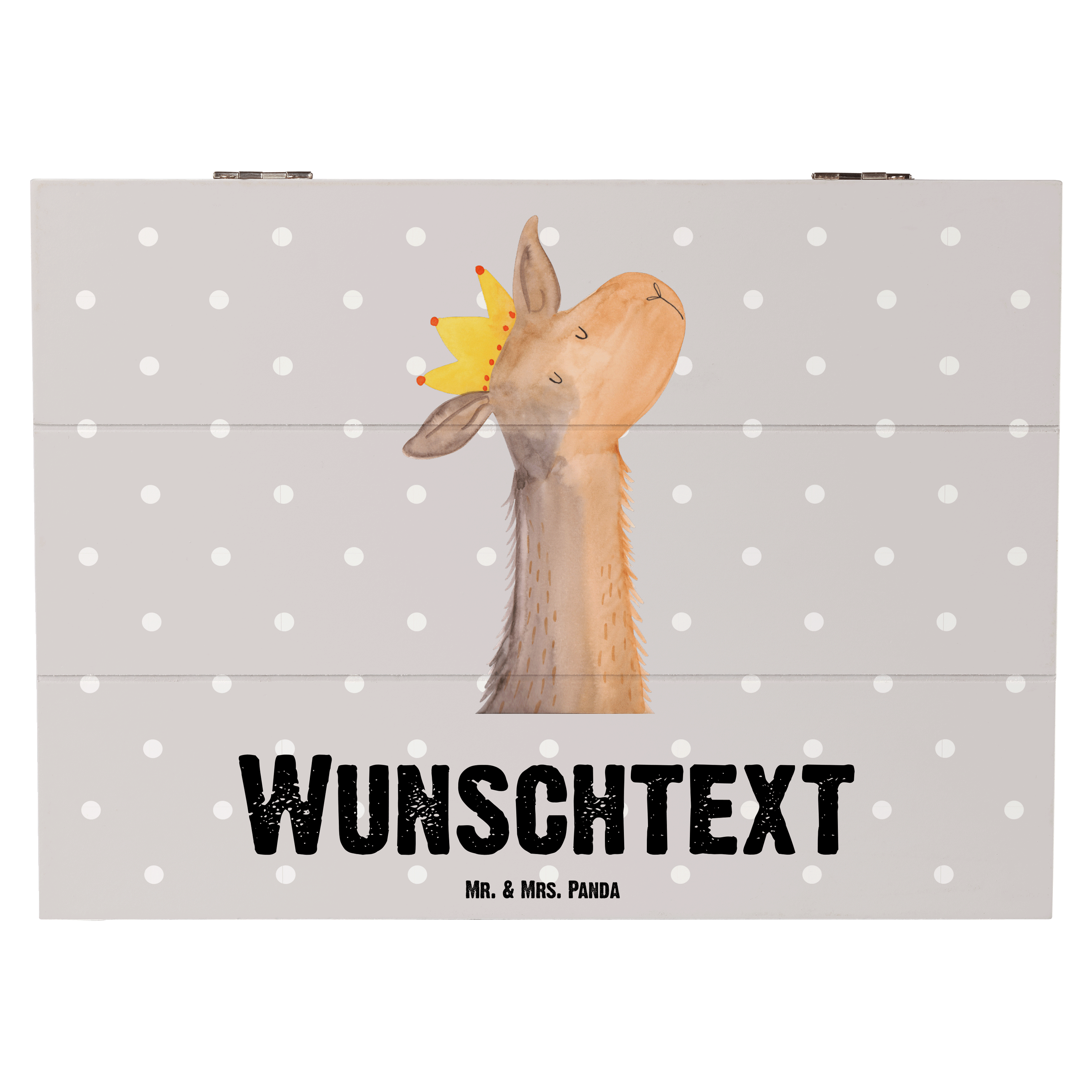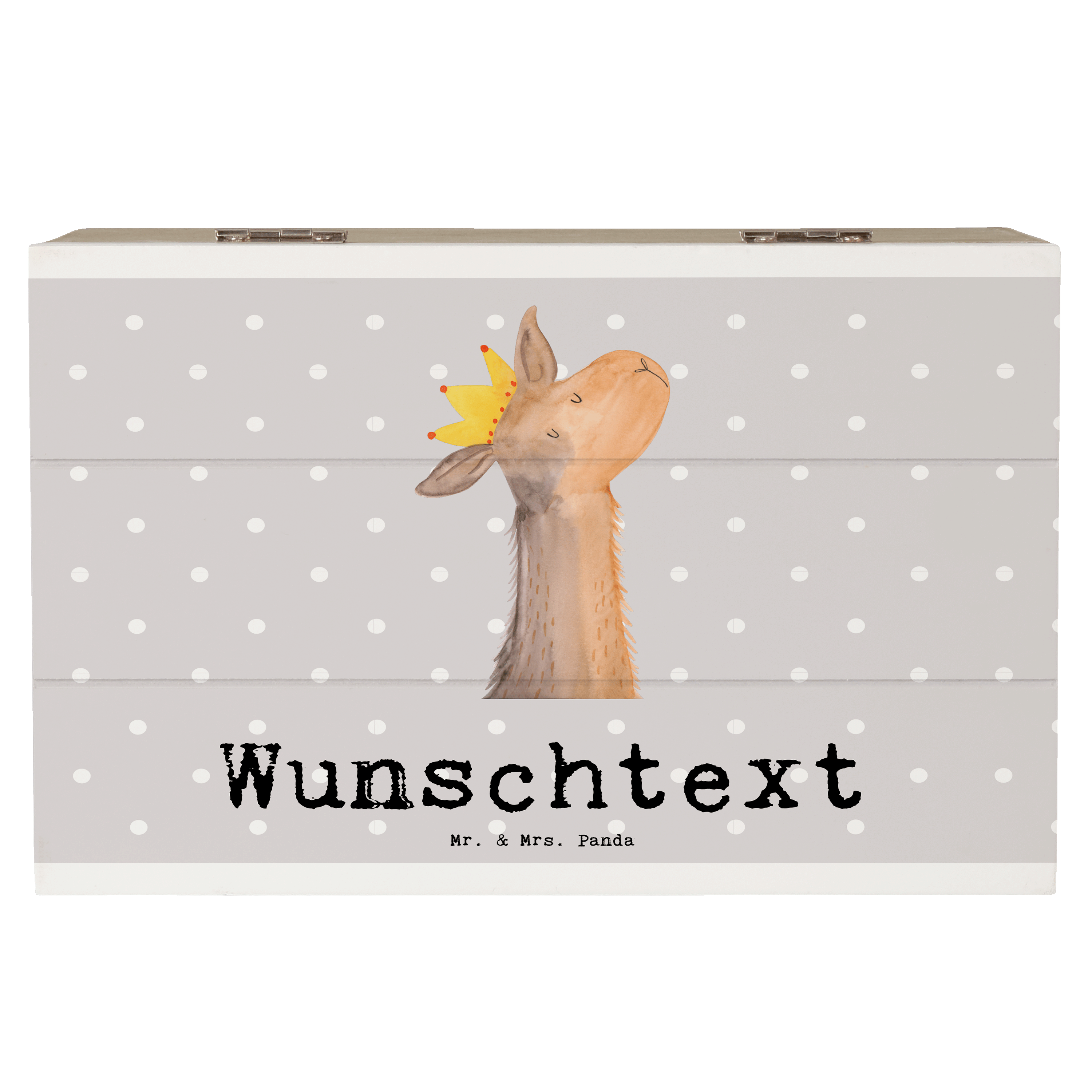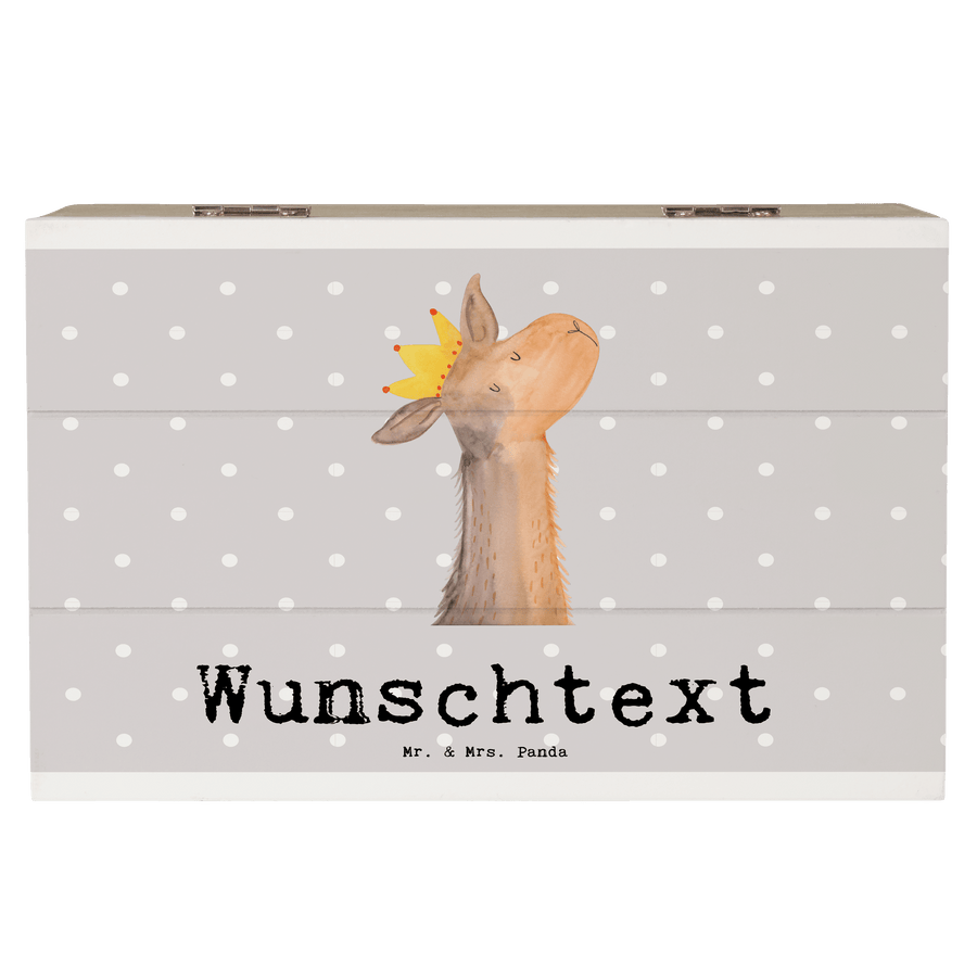 Personalisierte Holzkiste Lama Bester Mensch der Welt - Grau Pastell - 19 x 12 cm
