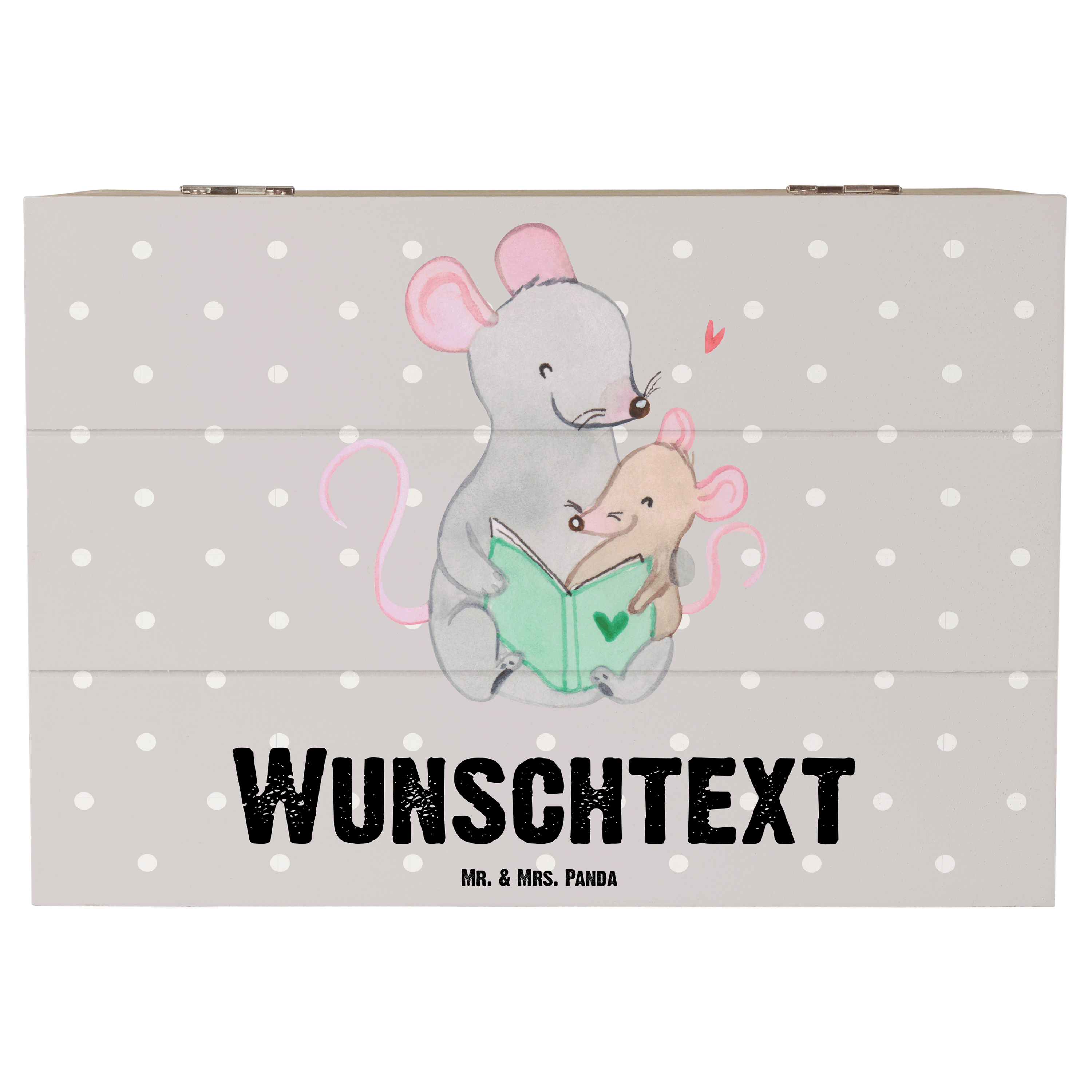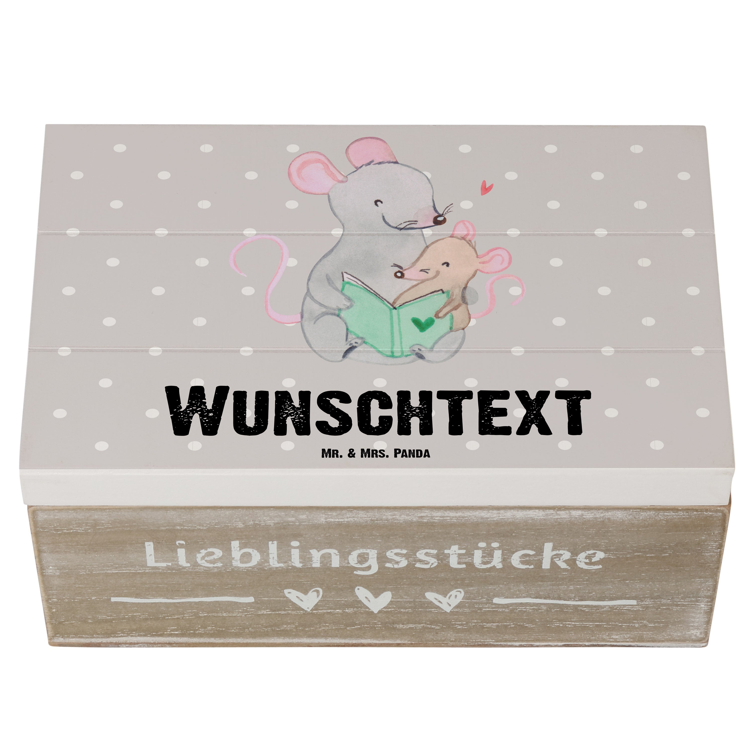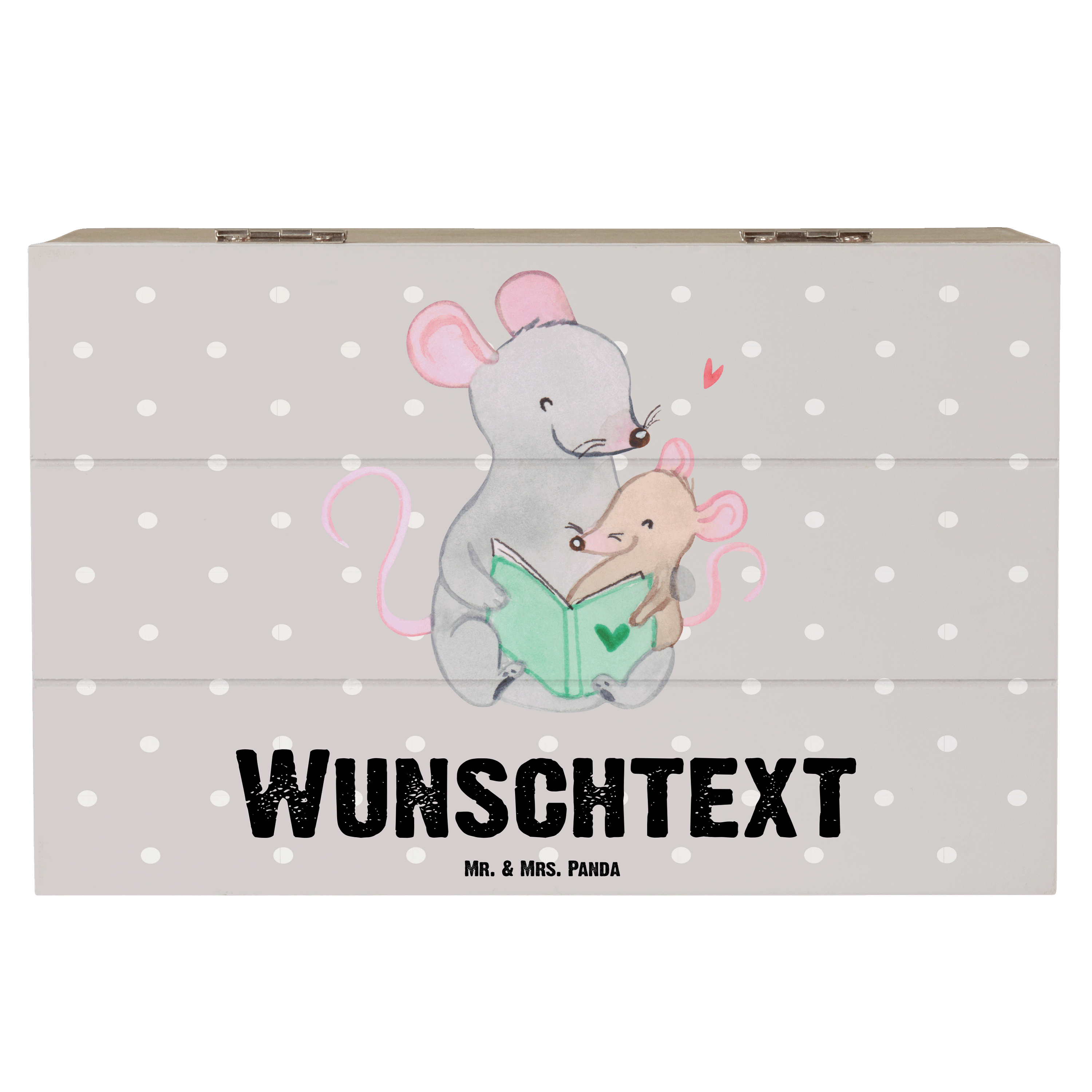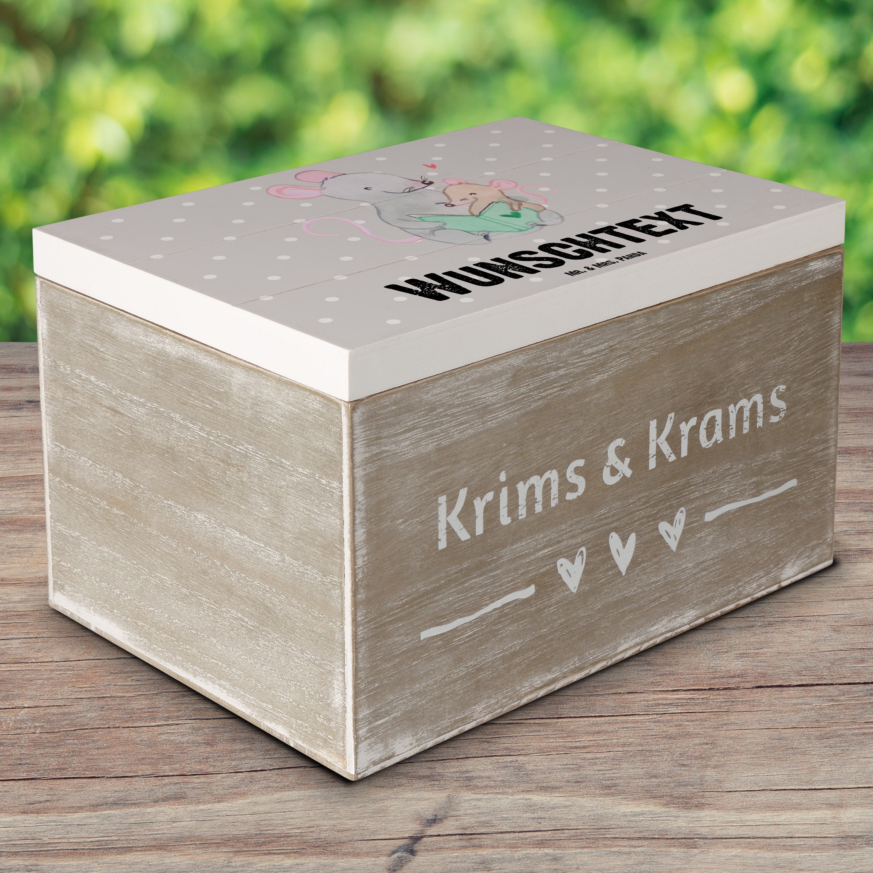 Personalisierte Holzkiste Maus Beste Adoptivmutter der Welt - Grau Pastell - 19 x 12 cm