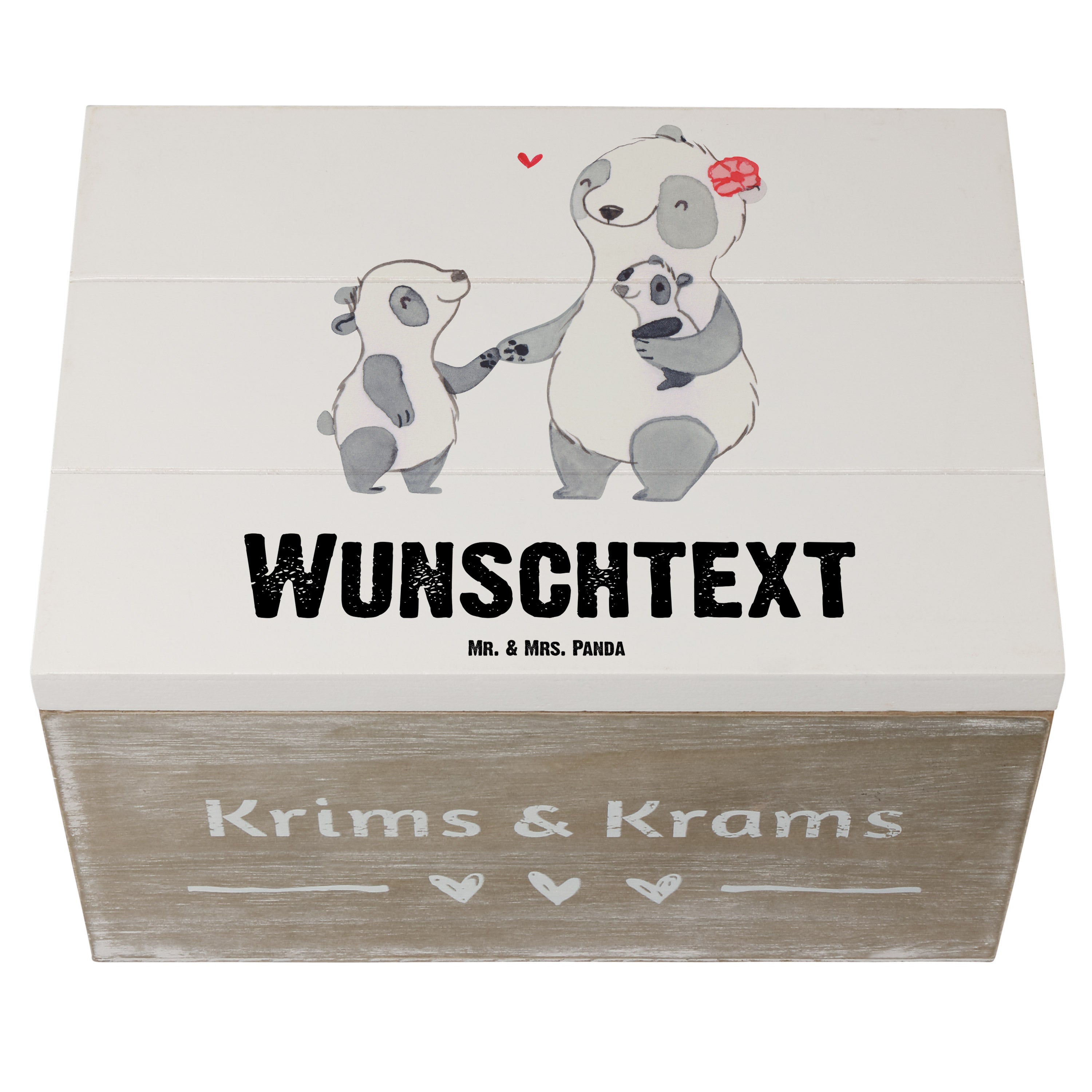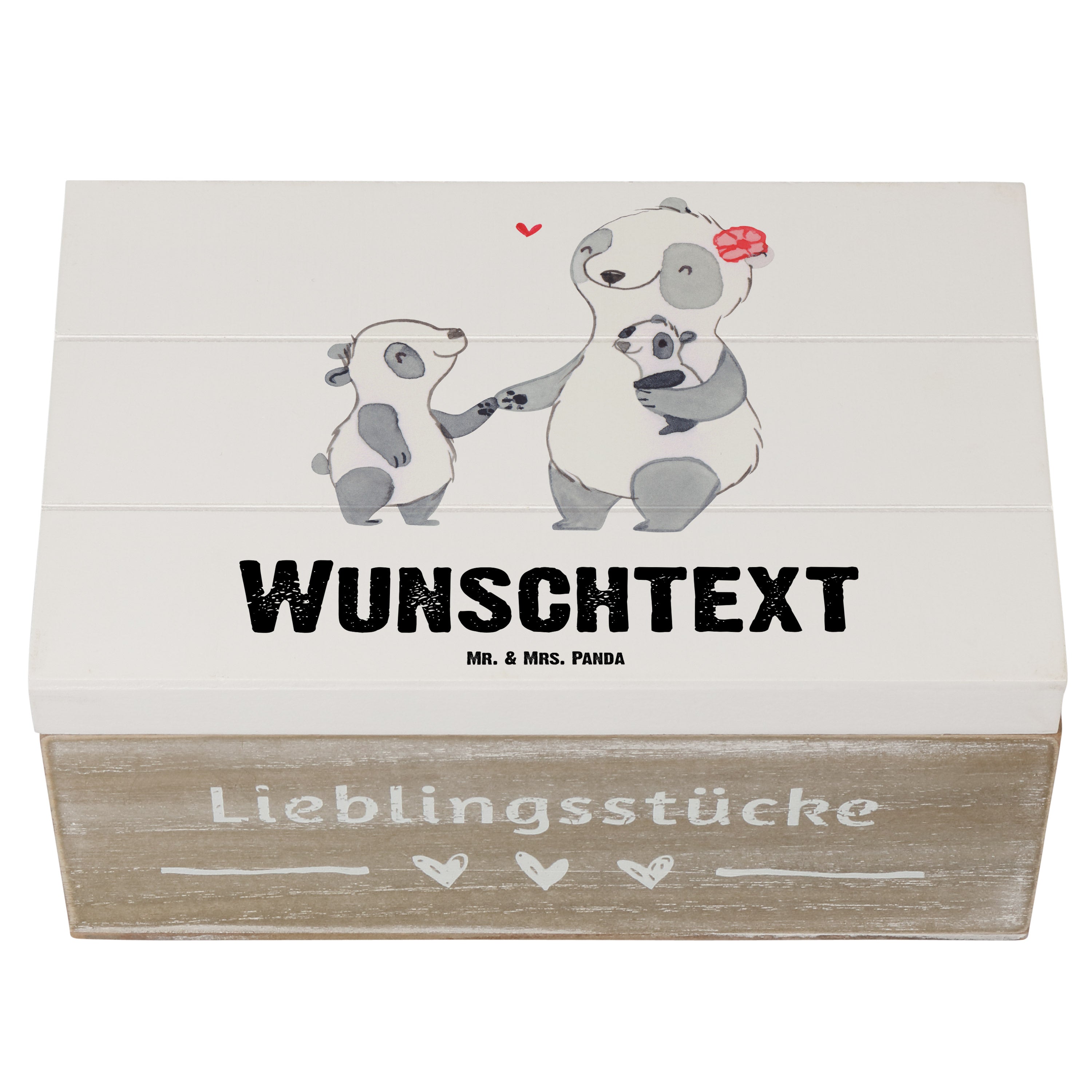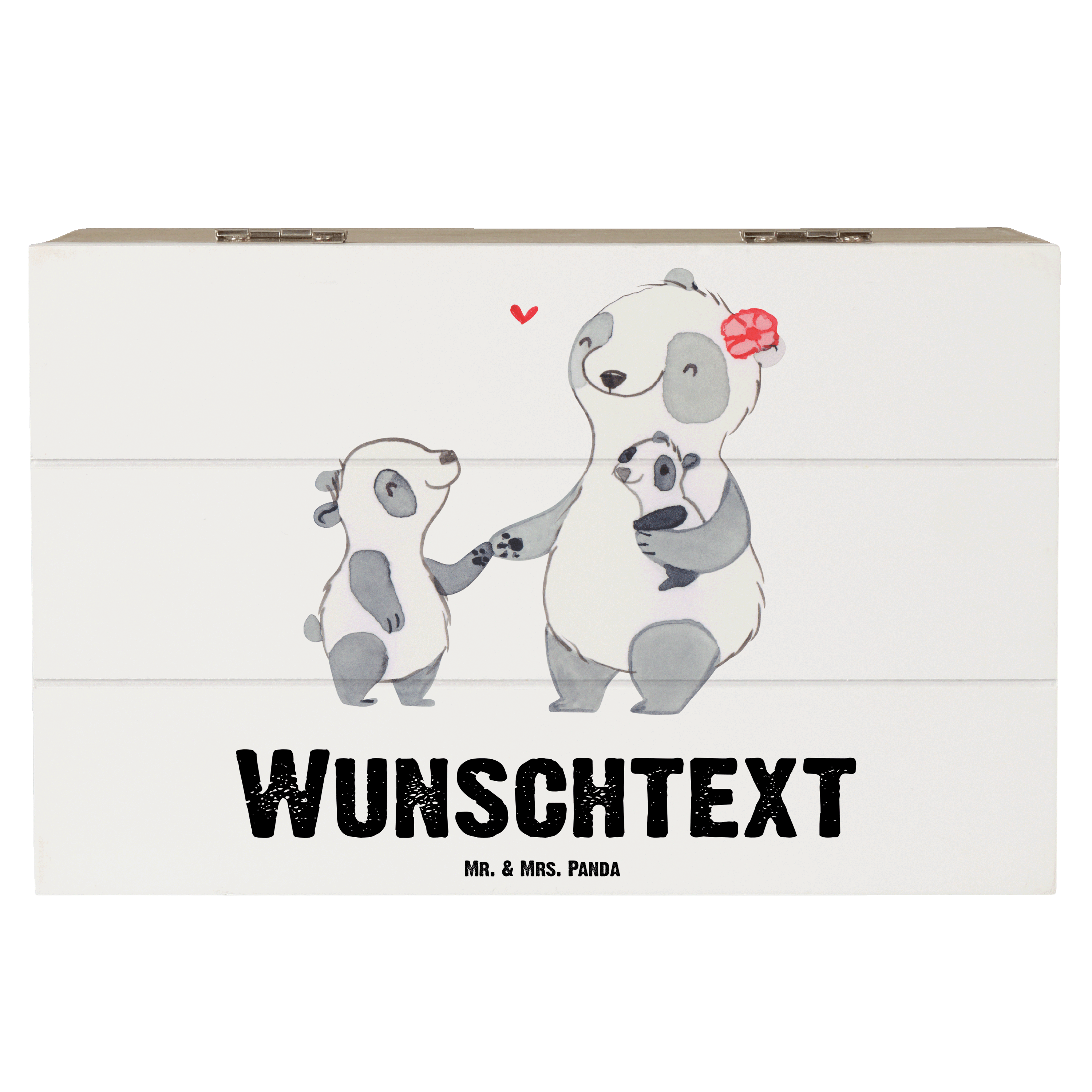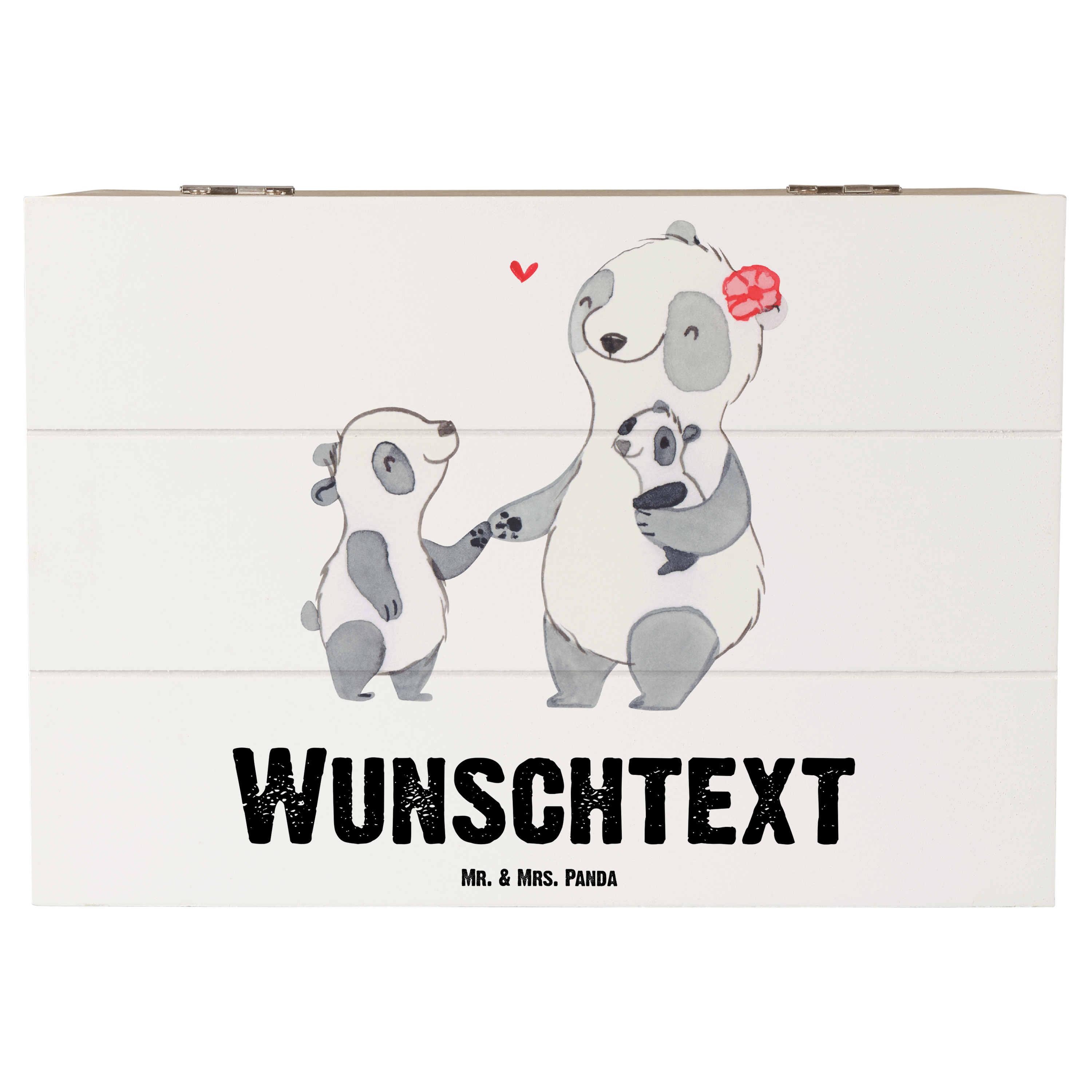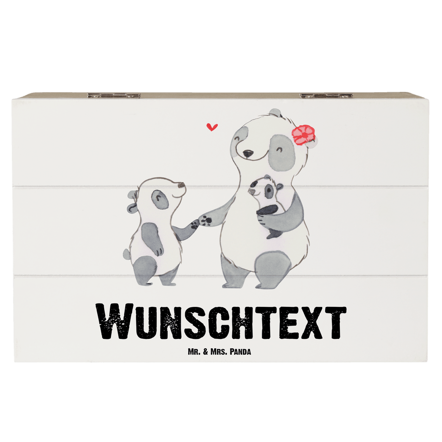 Personalisierte Holzkiste Panda Beste Mom der Welt - Weiß - 19 x 12 cm