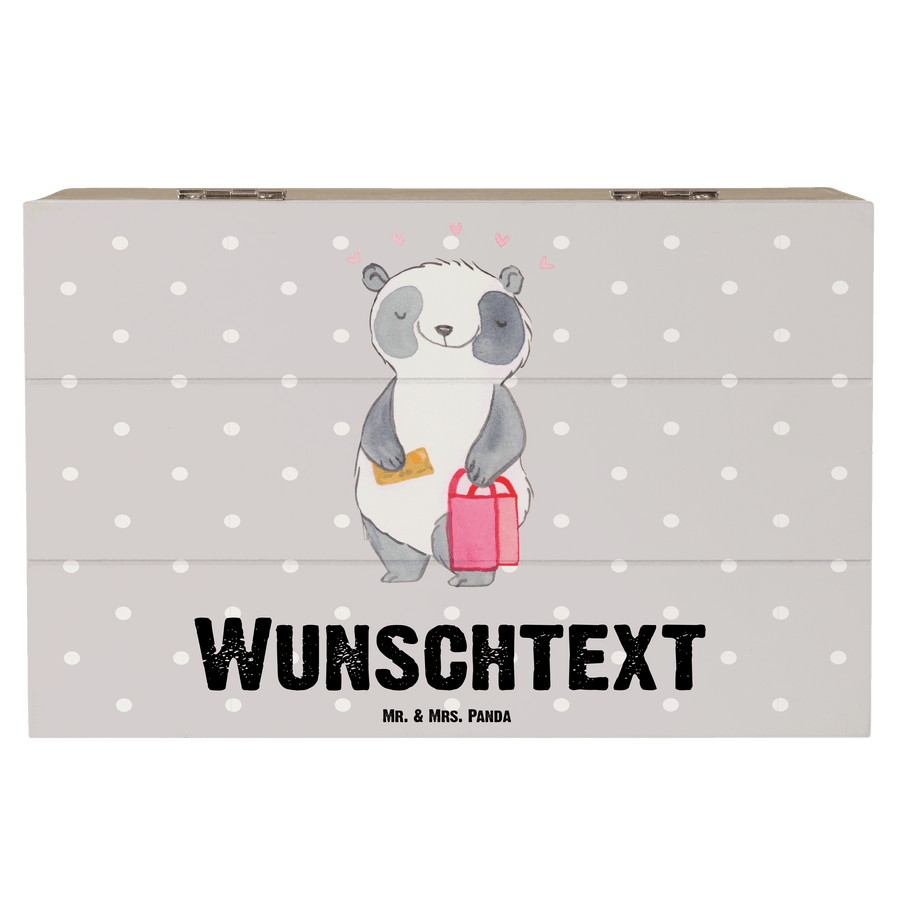 Personalisierte Holzkiste Panda Beste Shoppingbegleitung der Welt - Grau Pastell - 19 x 12 cm