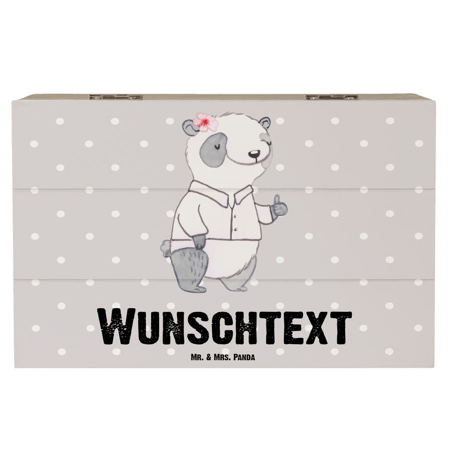Personalisierte Holzkiste Panda Beste Teamleiterin - Grau Pastell - 19 x 12 cm