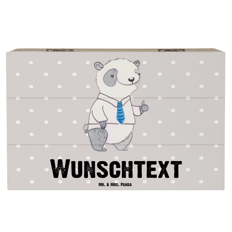 Personalisierte Holzkiste Panda Bester Adoptivvater der Welt - Grau Pastell - 19 x 12 cm