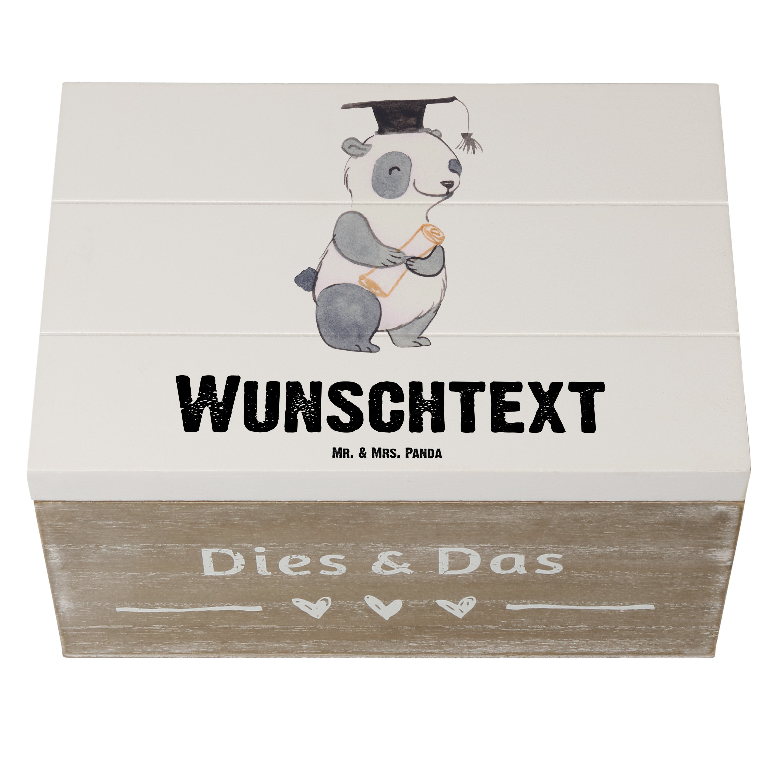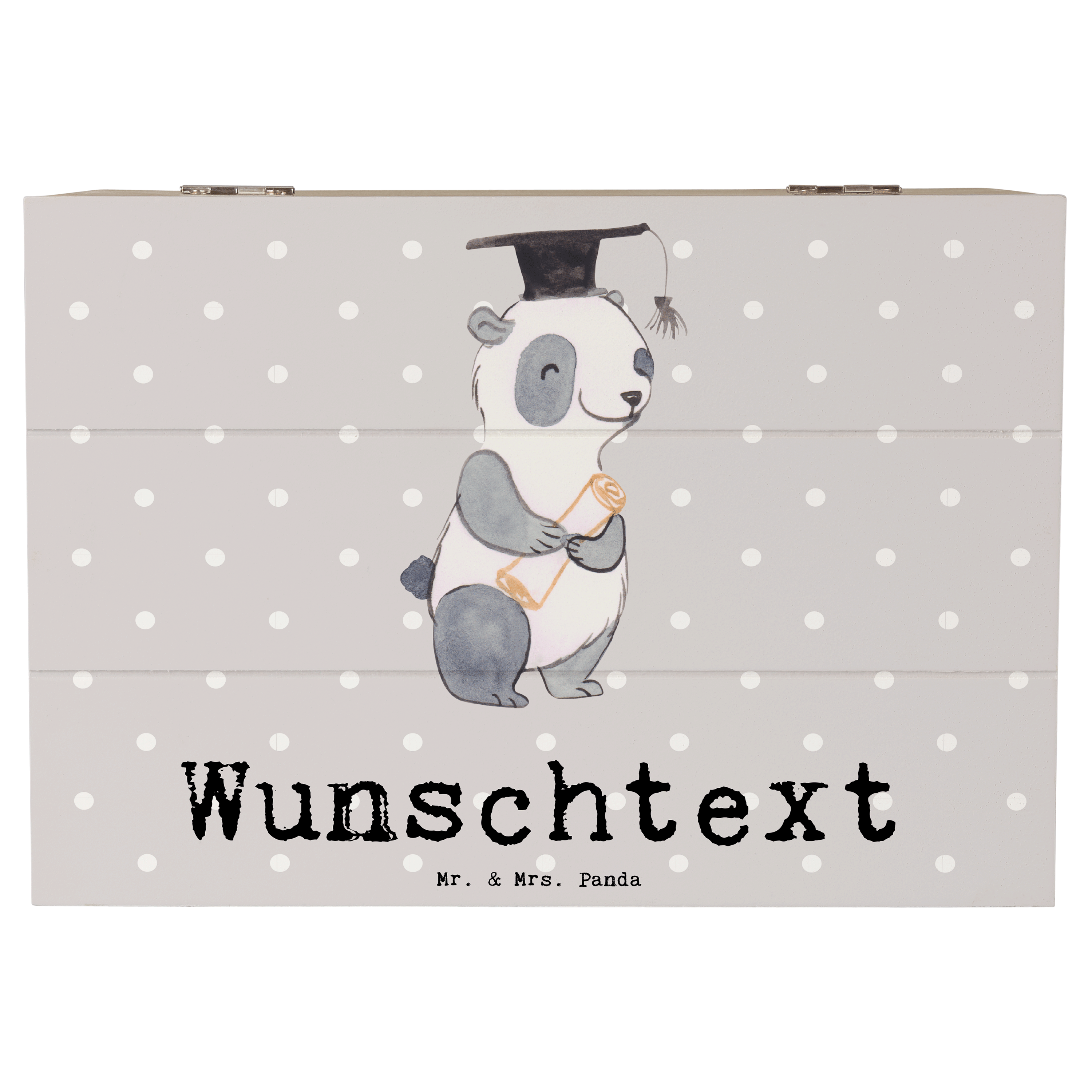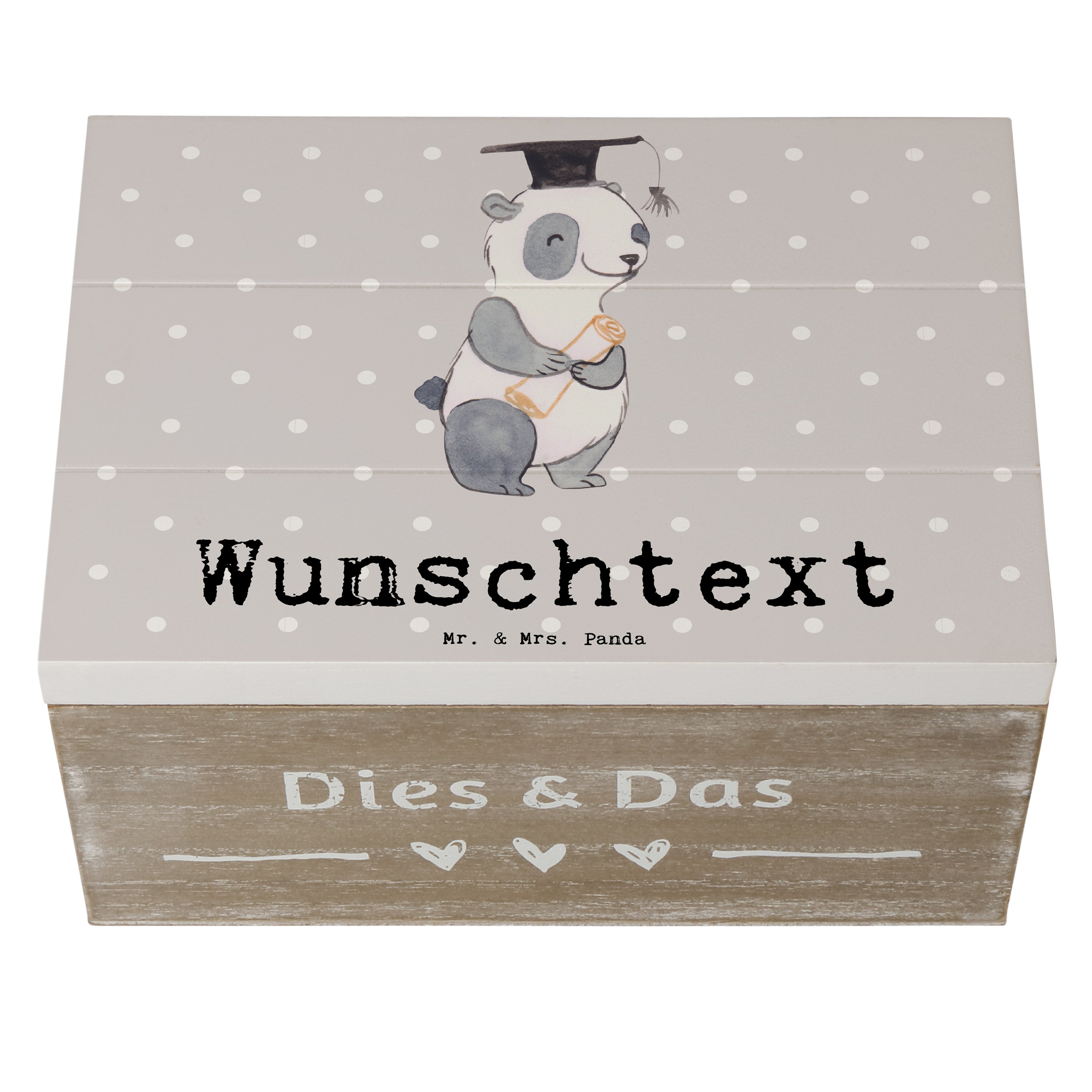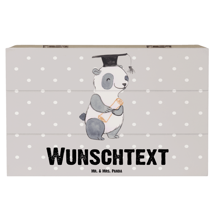 Personalisierte Holzkiste Panda Bester Student der Welt - Grau Pastell - 19 x 12 cm