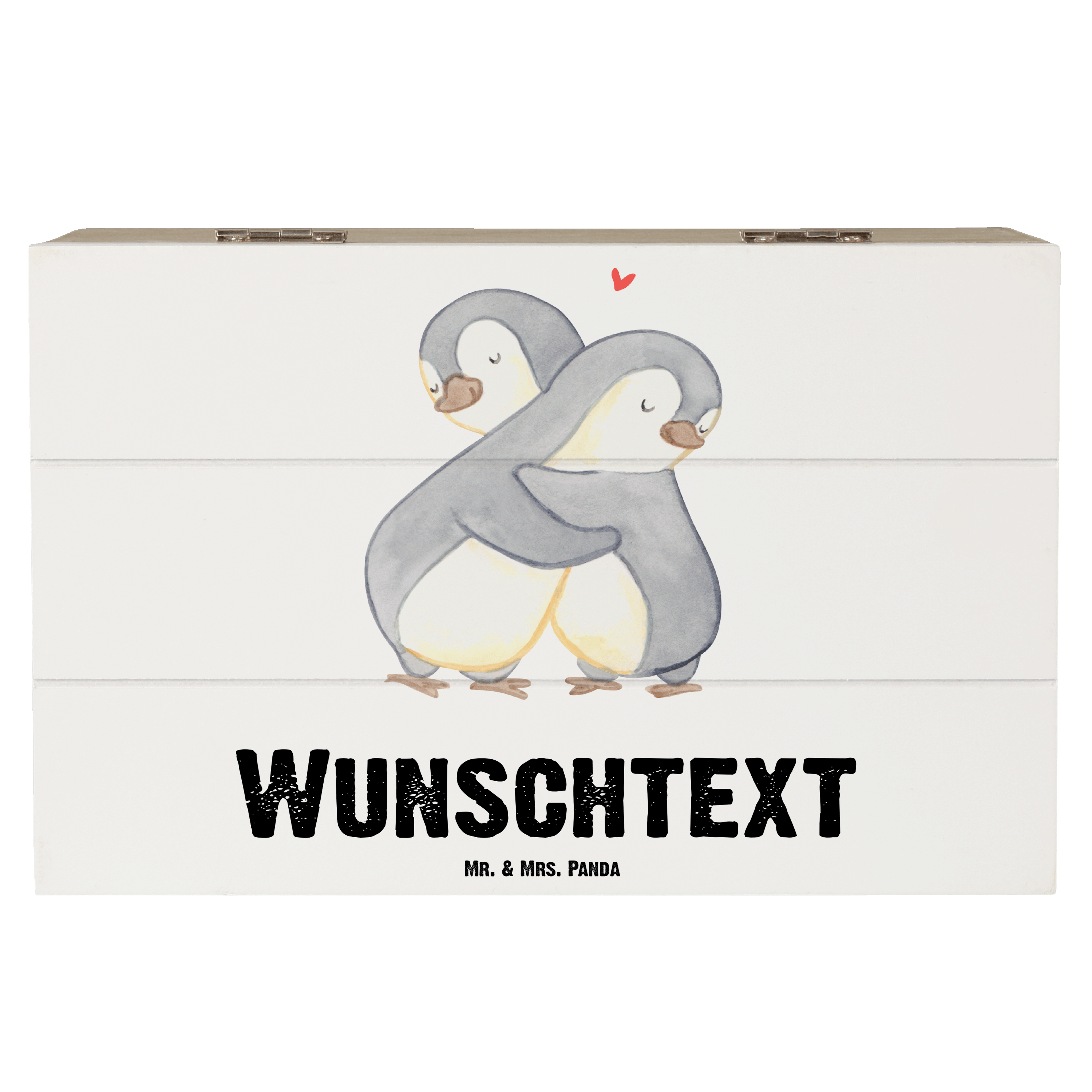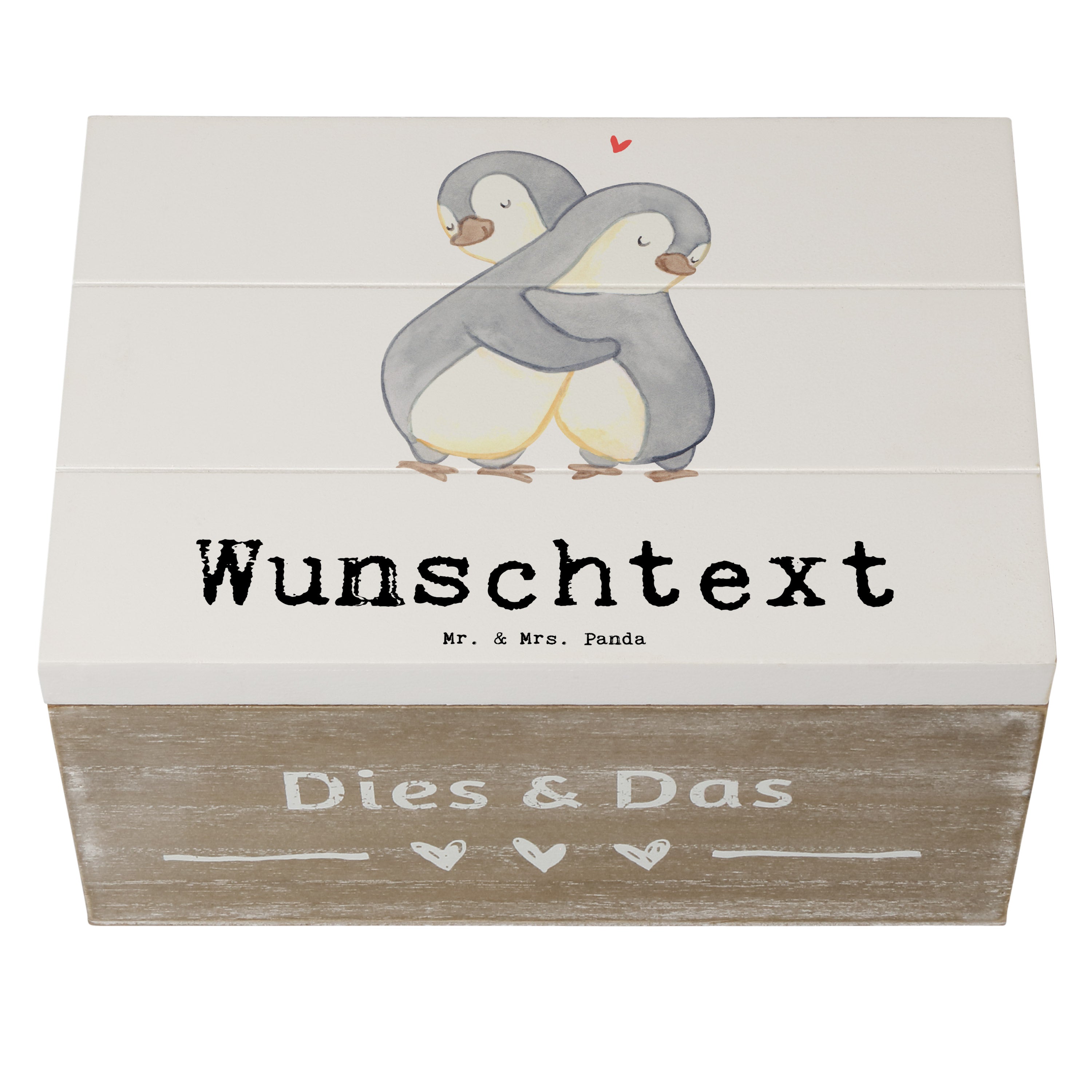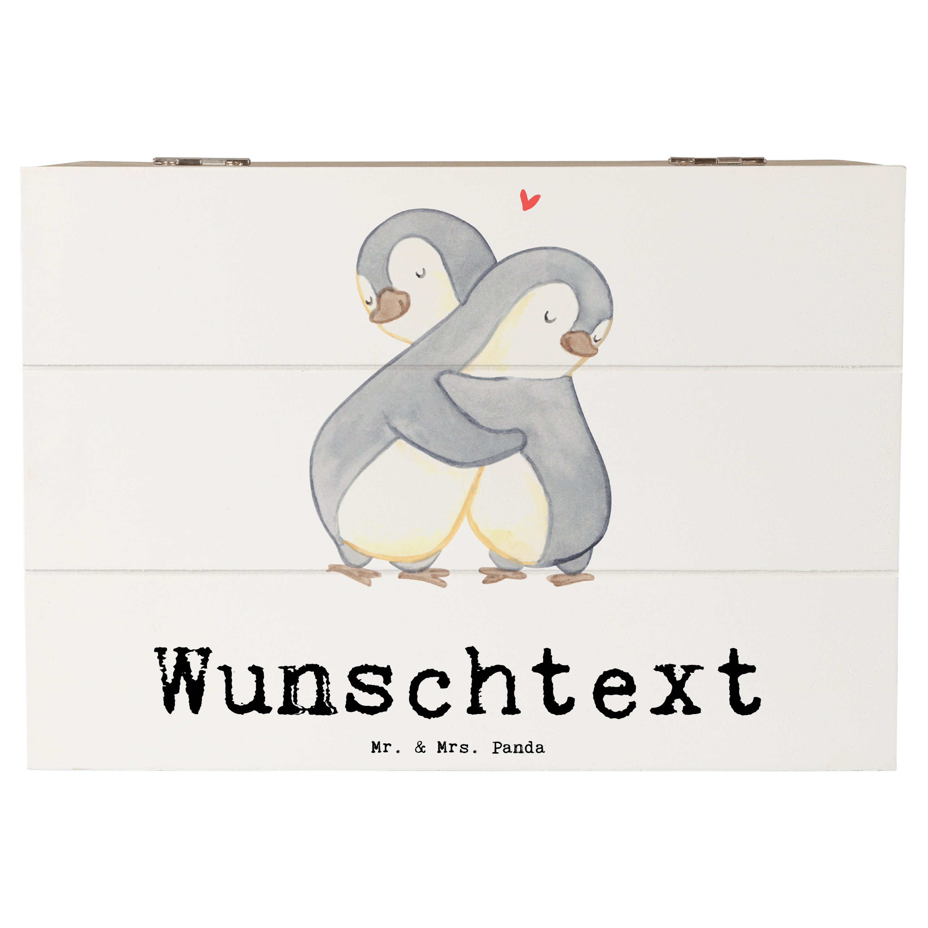 Personalisierte Holzkiste Pinguin Beste Adoptivschwester der Welt - Weiß - 19 x 12 cm