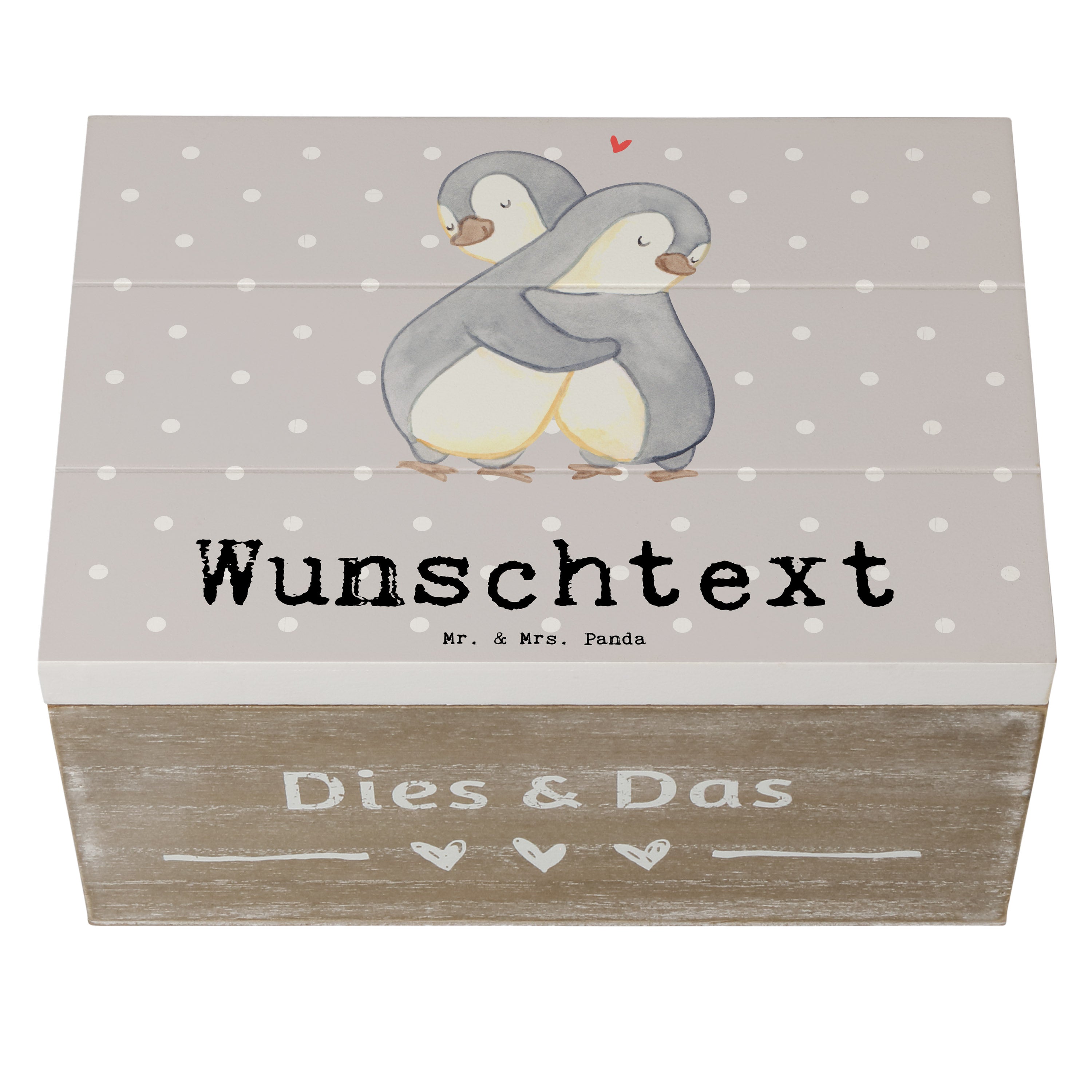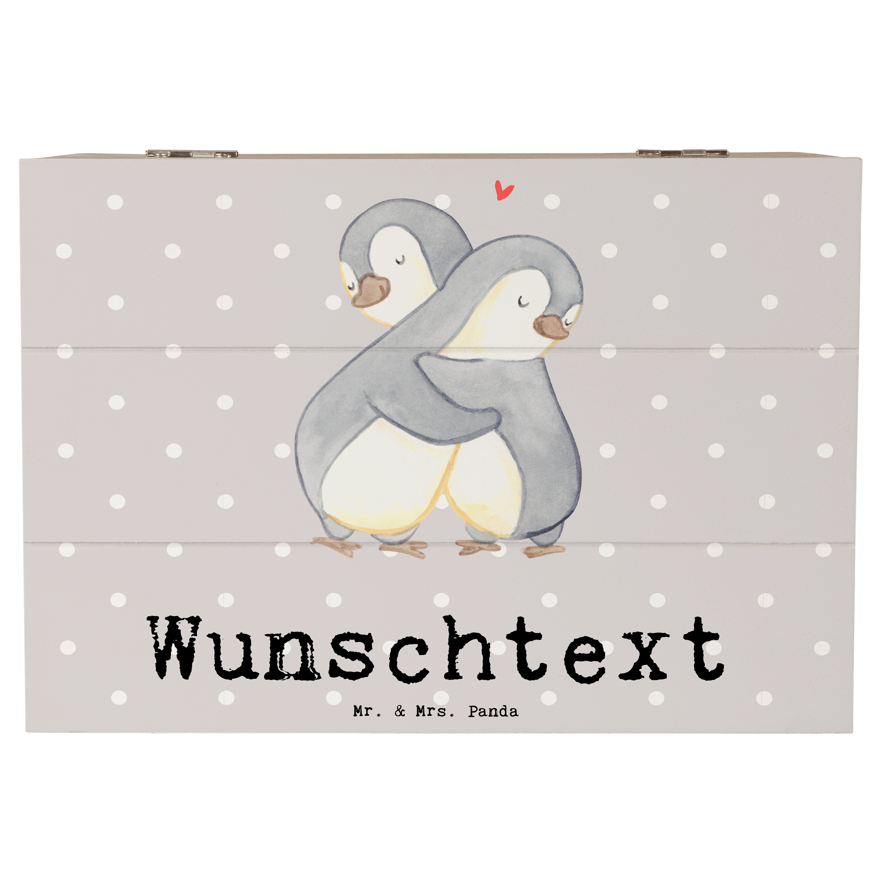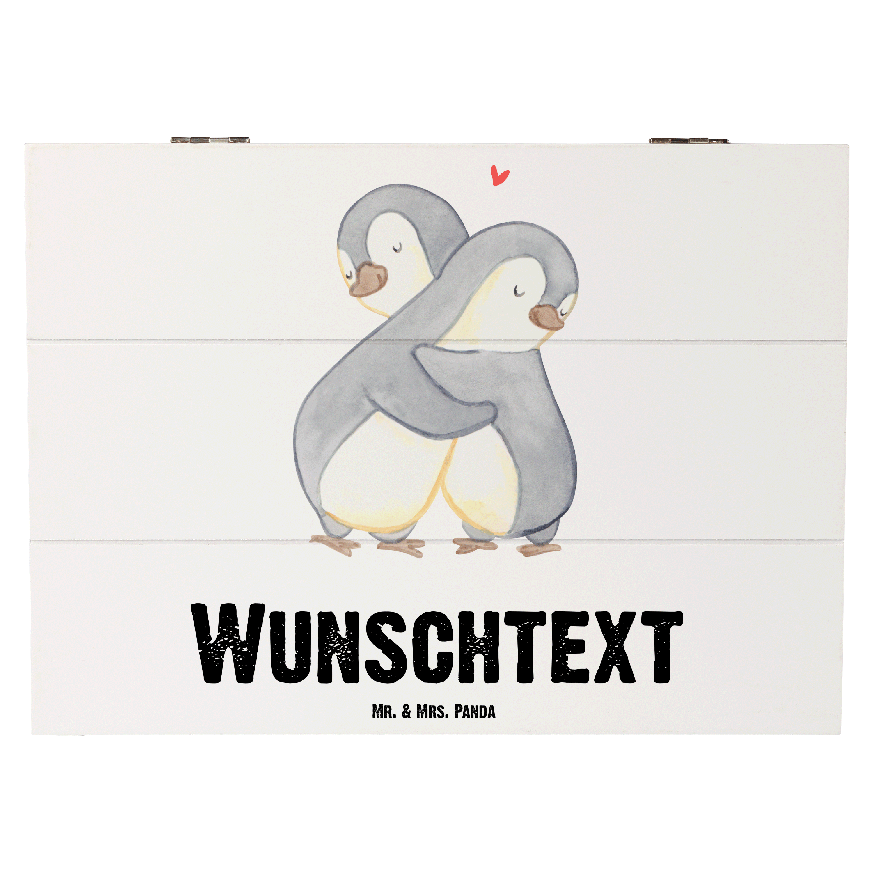 Personalisierte Holzkiste Pinguin Beste Adoptivschwester der Welt - Weiß - 19 x 12 cm