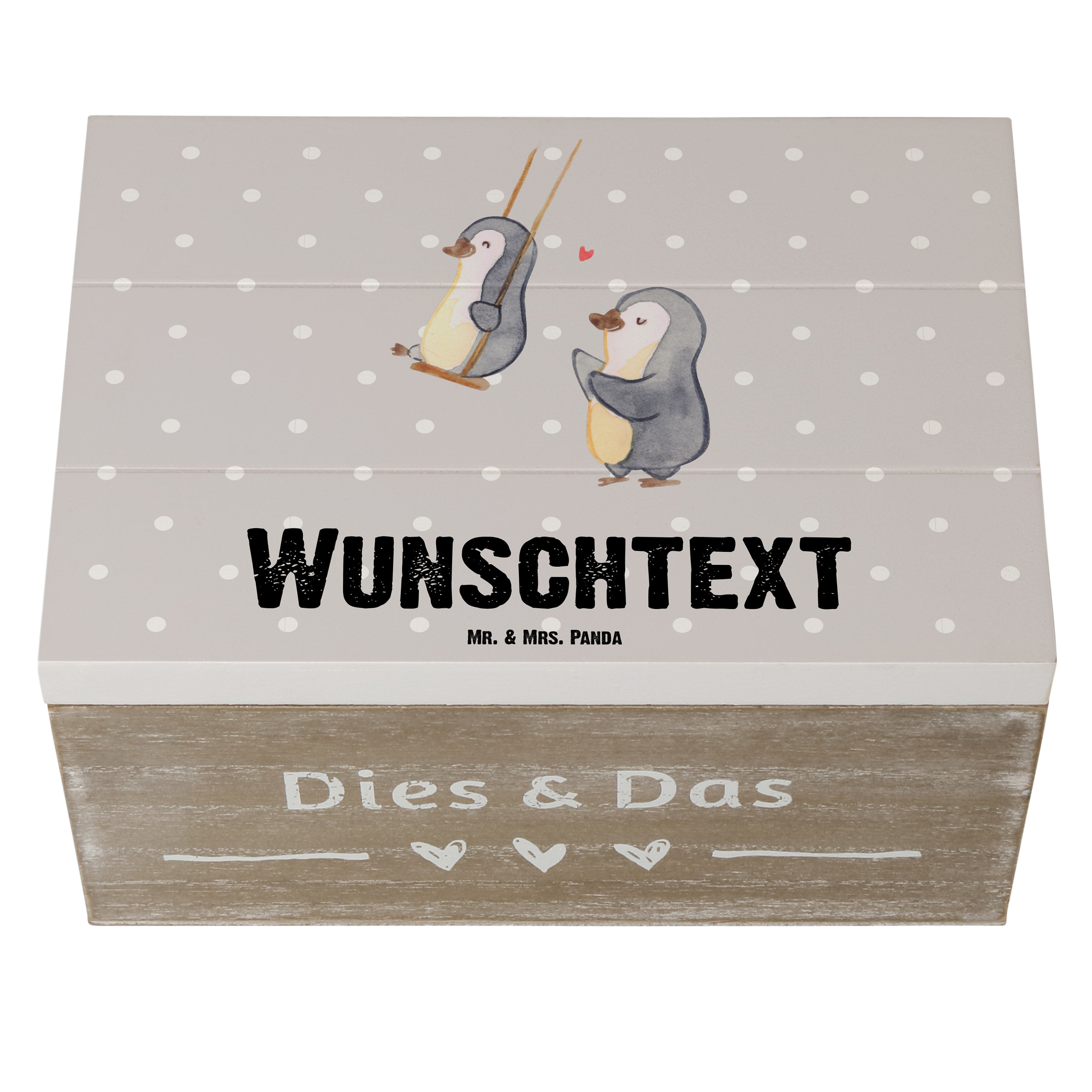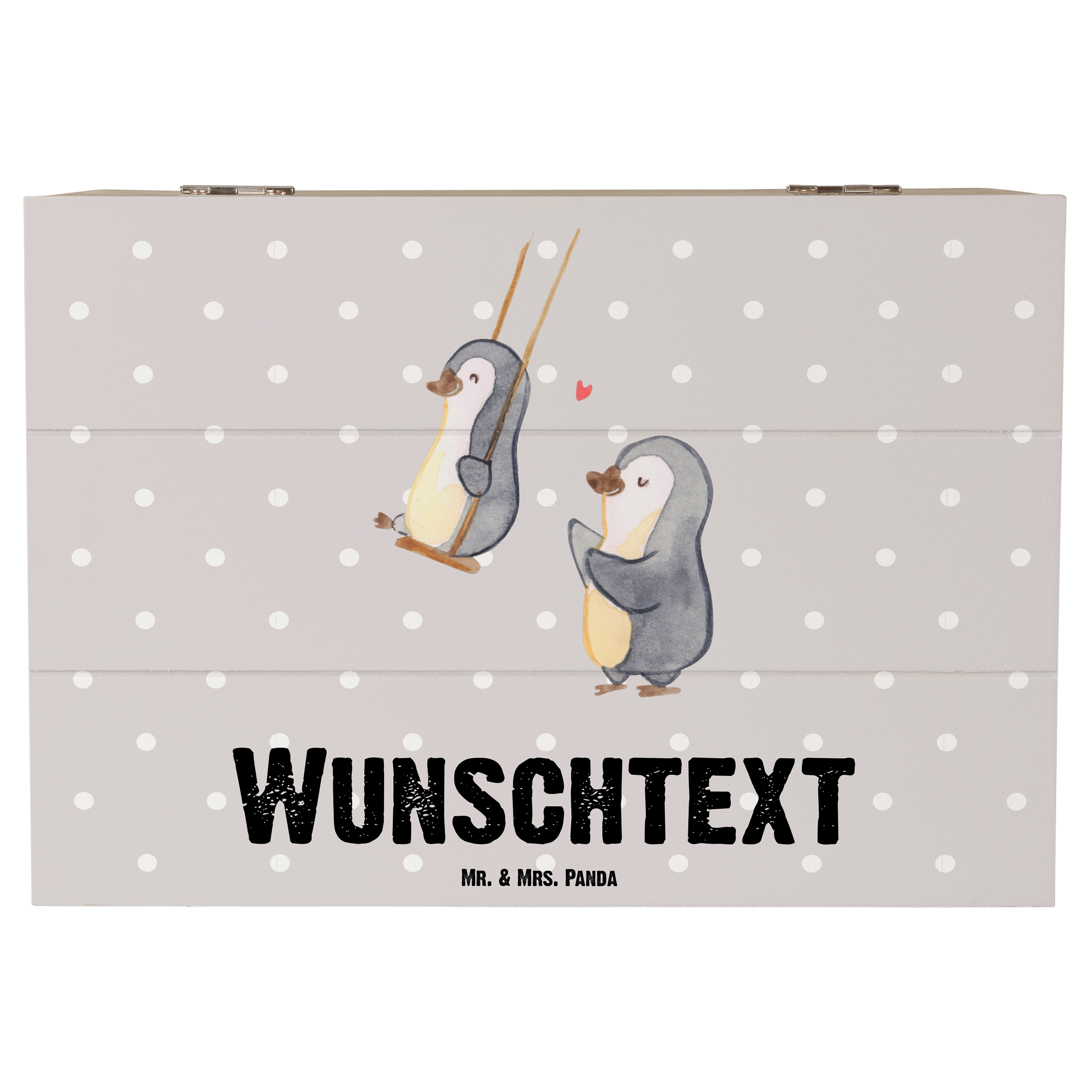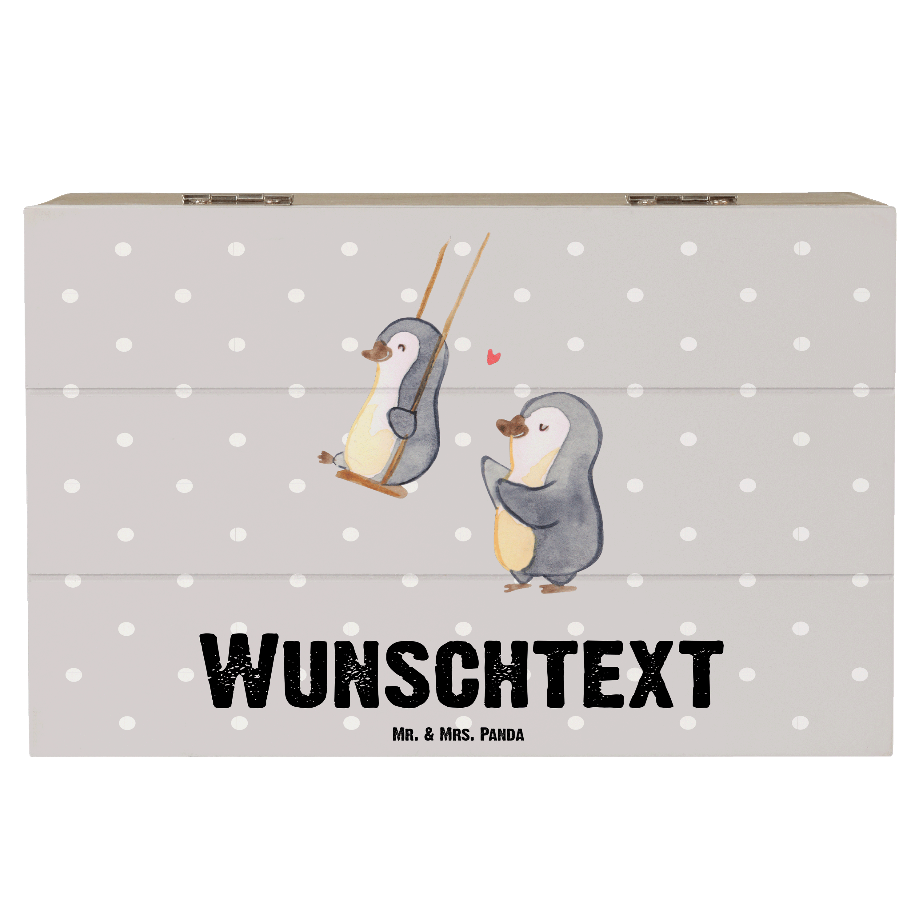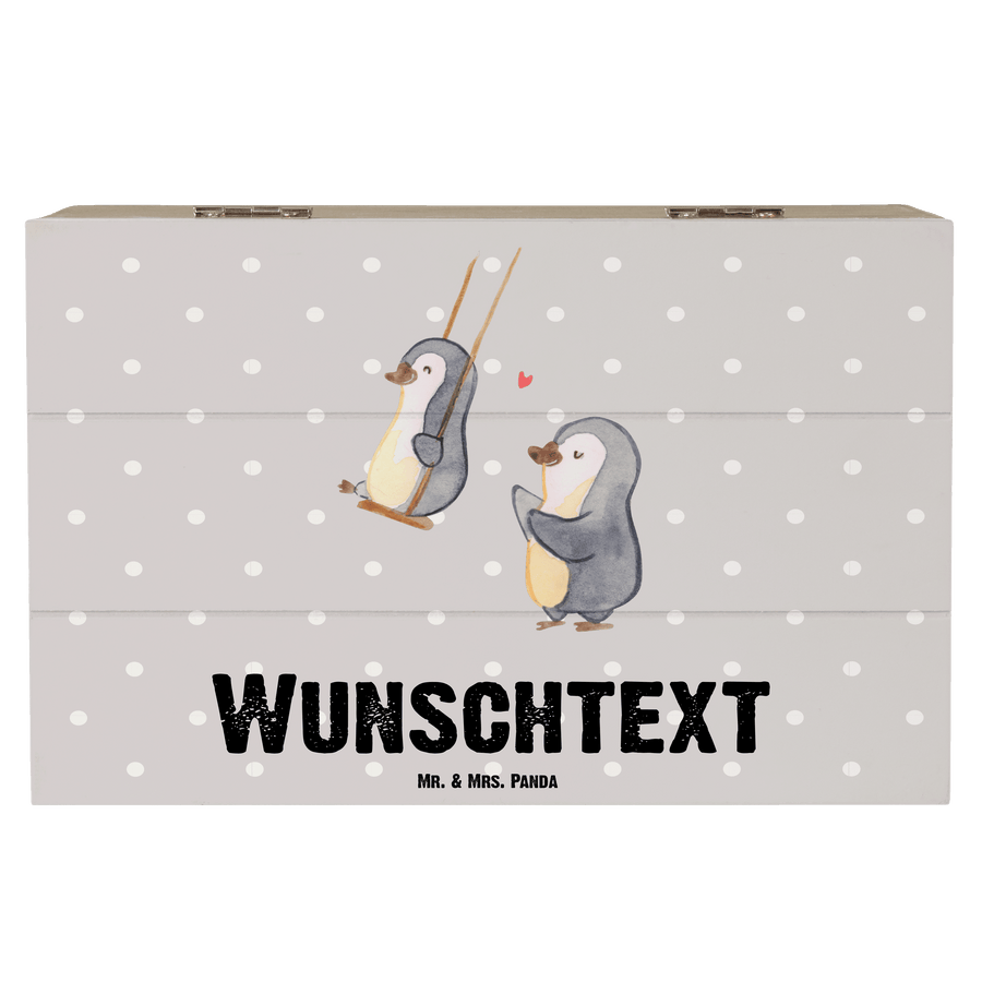 Personalisierte Holzkiste Pinguin Beste Großmutter der Welt - Grau Pastell - 19 x 12 cm