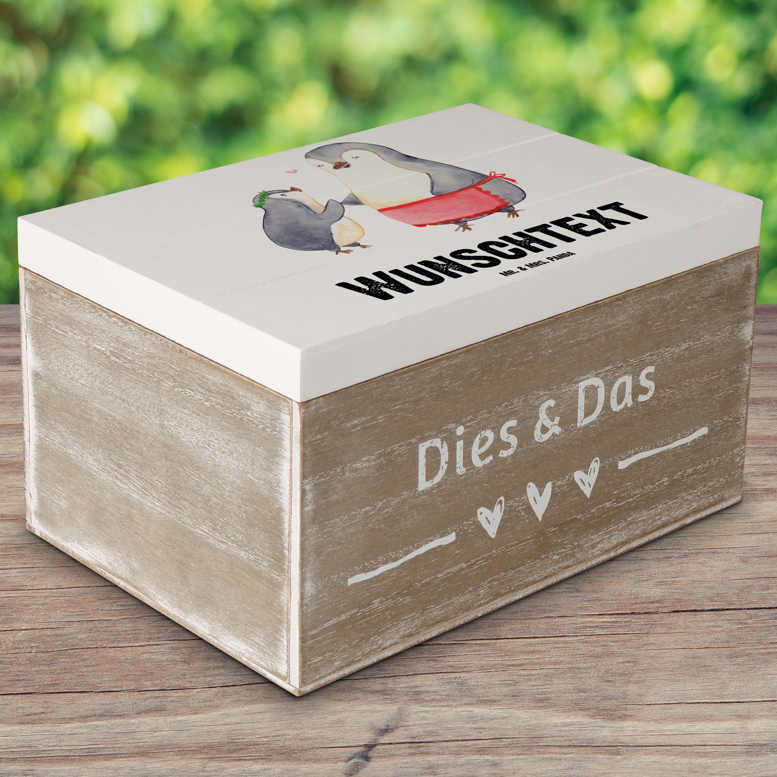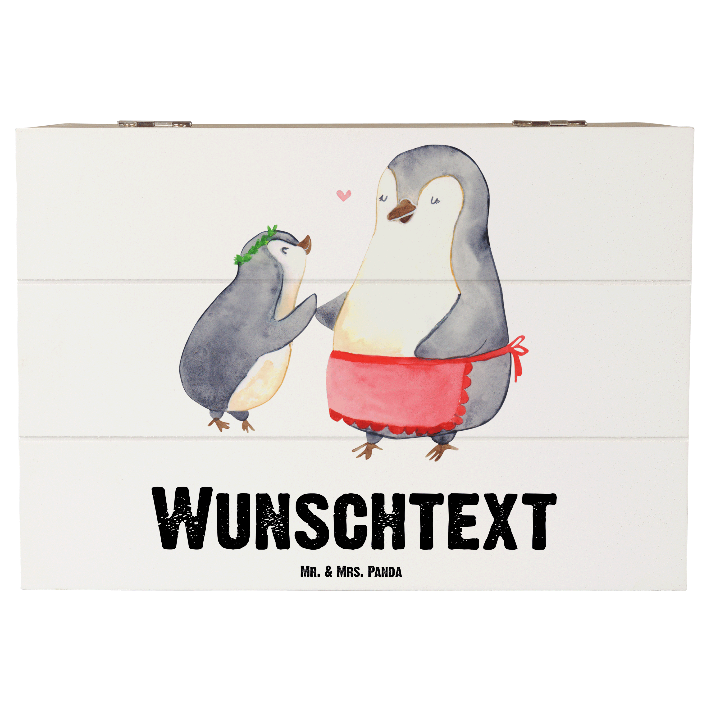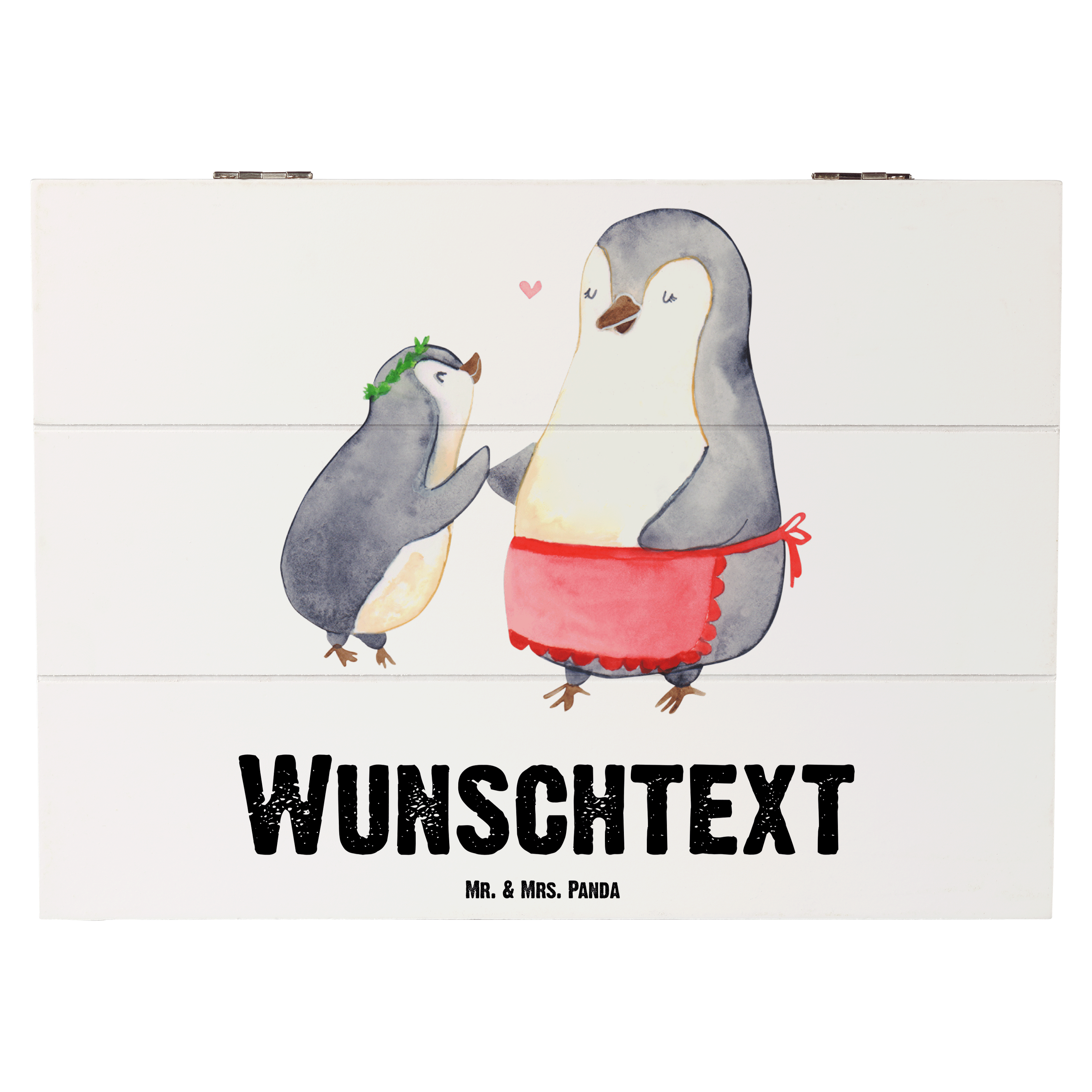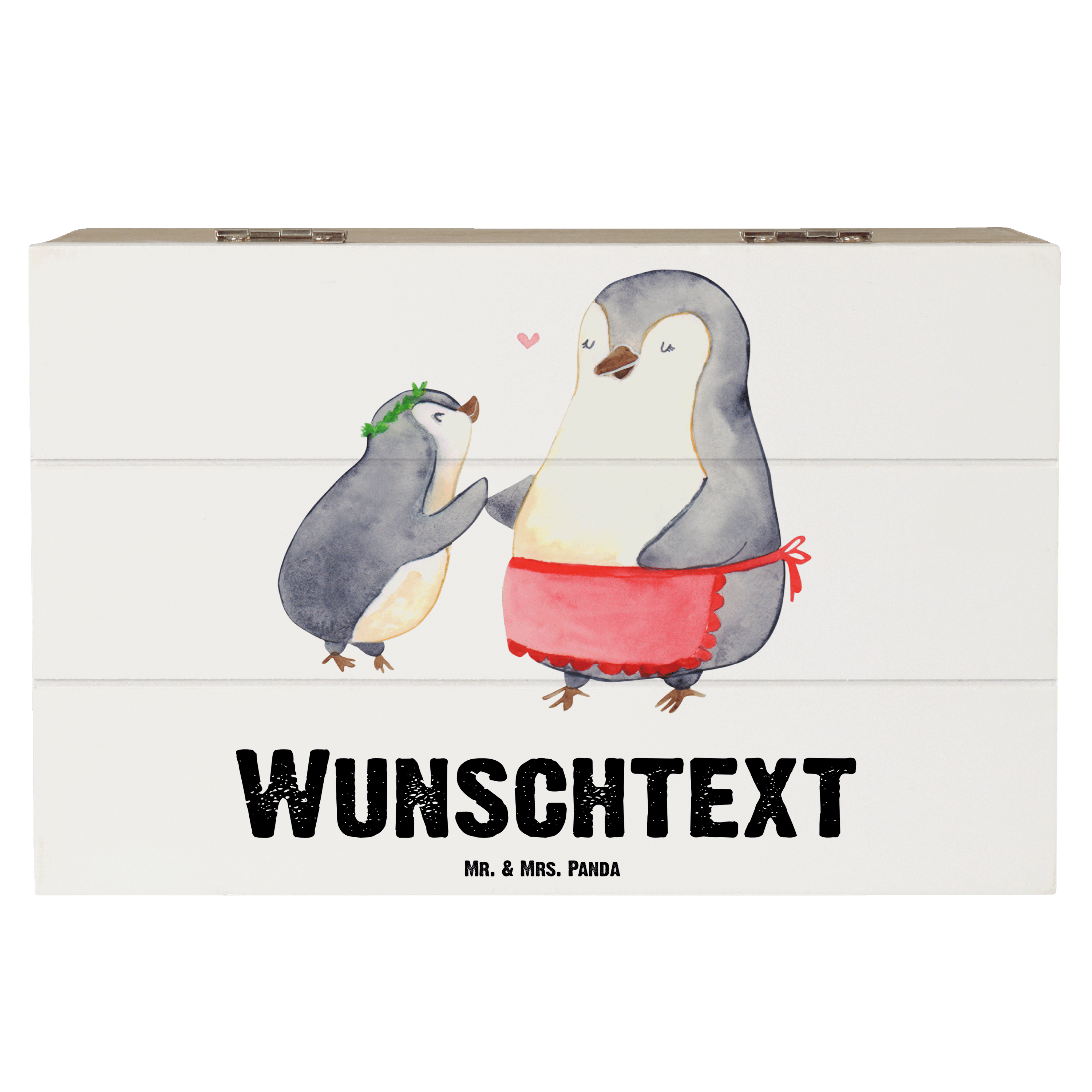 Personalisierte Holzkiste Pinguin Beste Mutti der Welt - Weiß - 19 x 12 cm