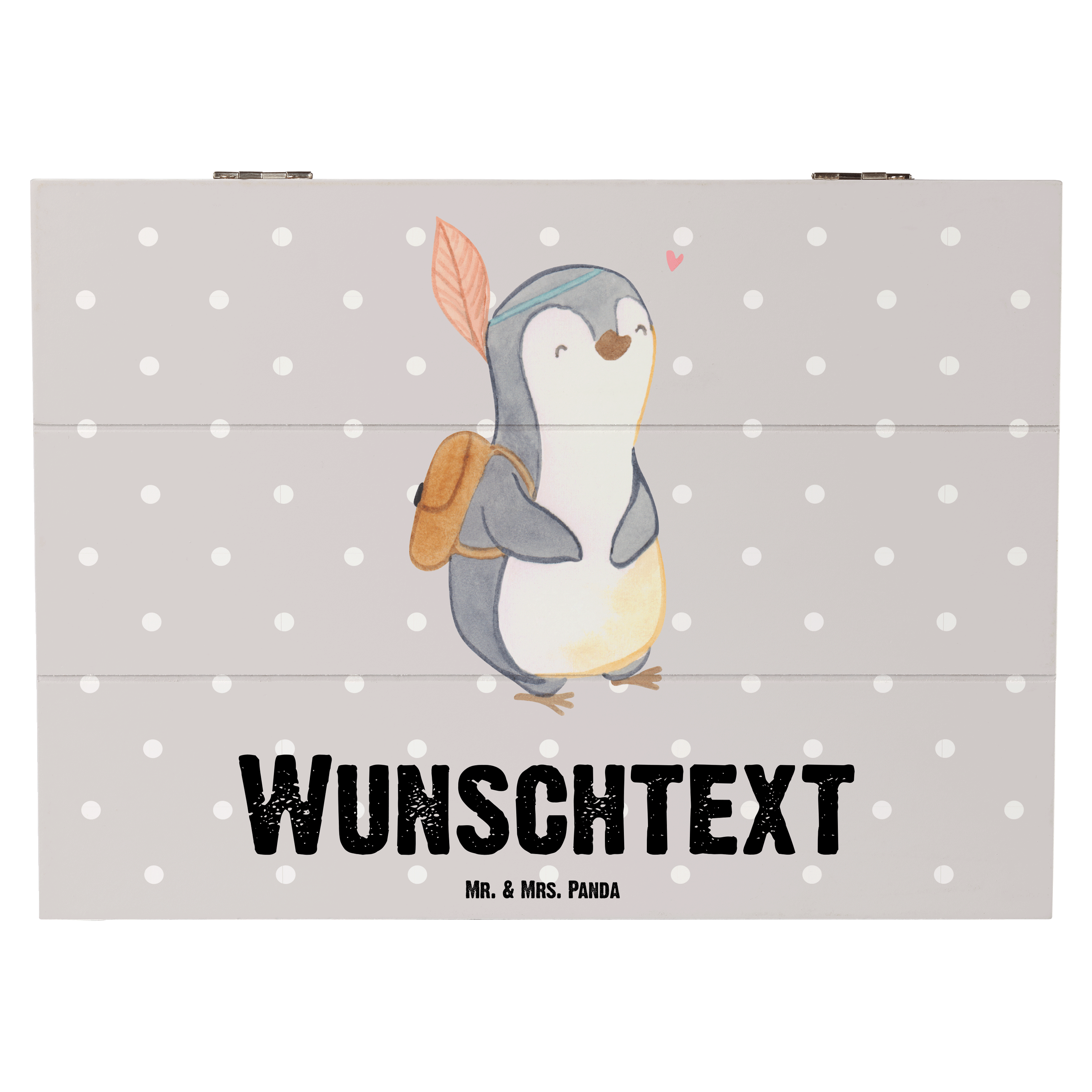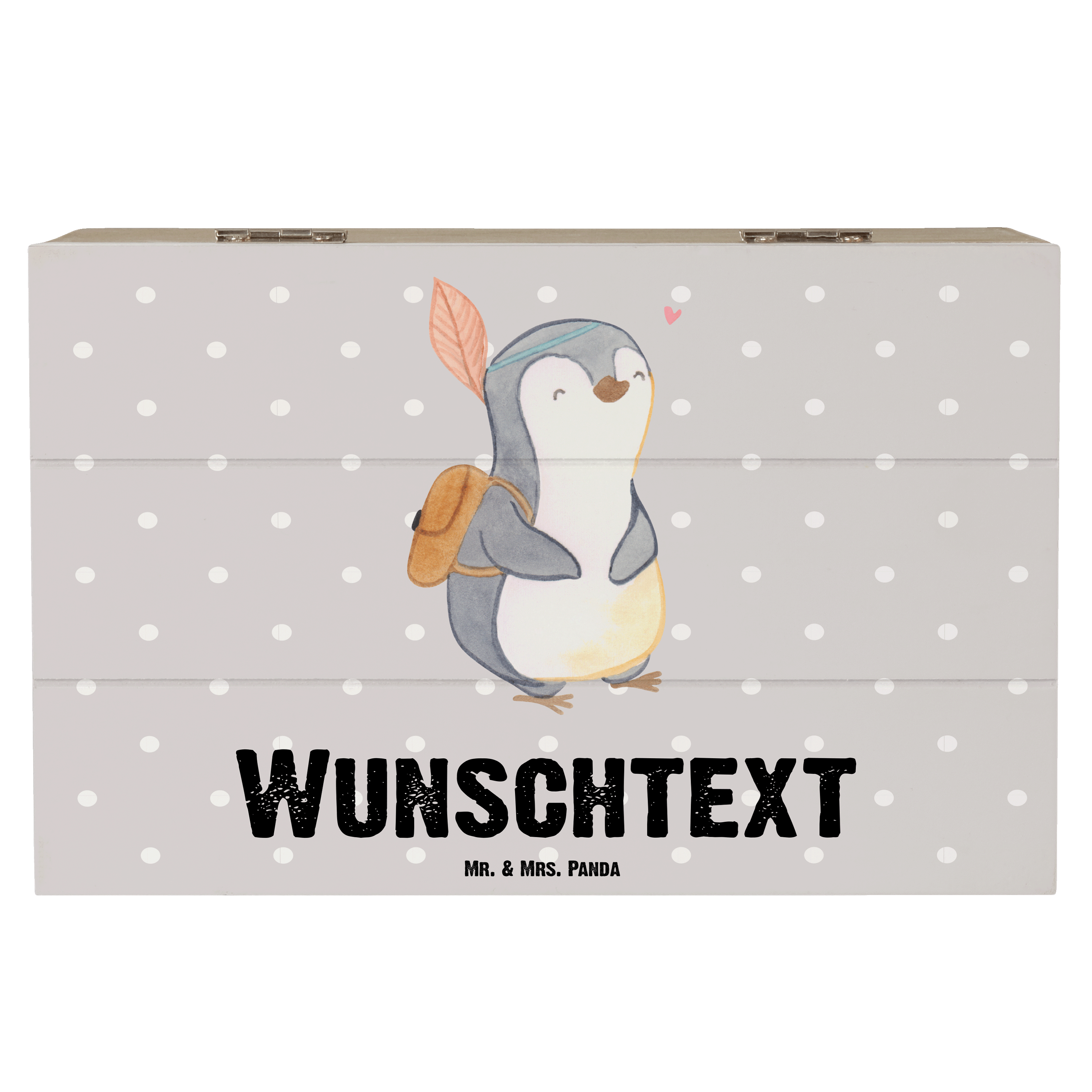 Personalisierte Holzkiste Pinguin Bester Blutsbruder der Welt - Grau Pastell - 19 x 12 cm