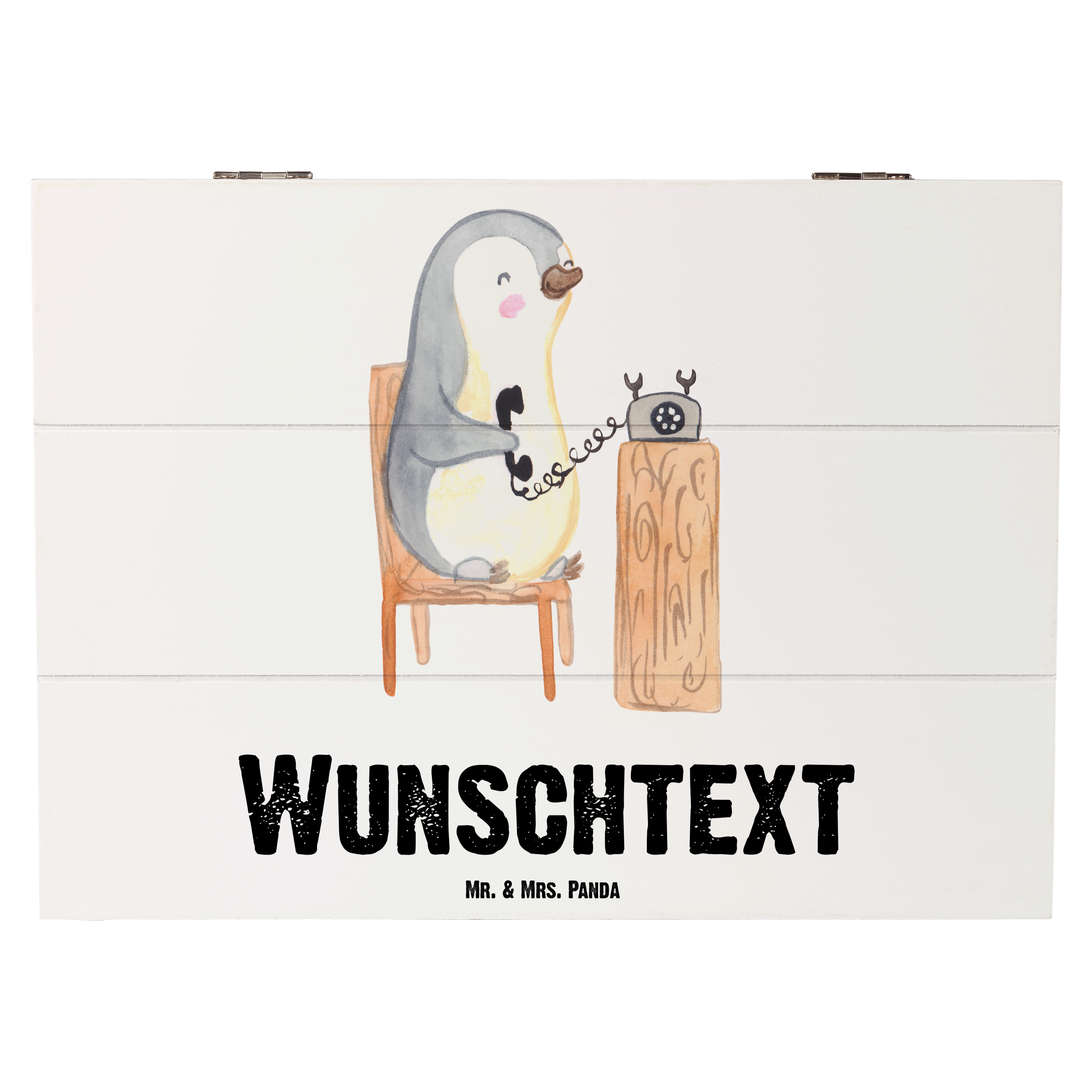 Personalisierte Holzkiste Pinguin Bester Lästerpartner der Welt - Weiß - 19 x 12 cm