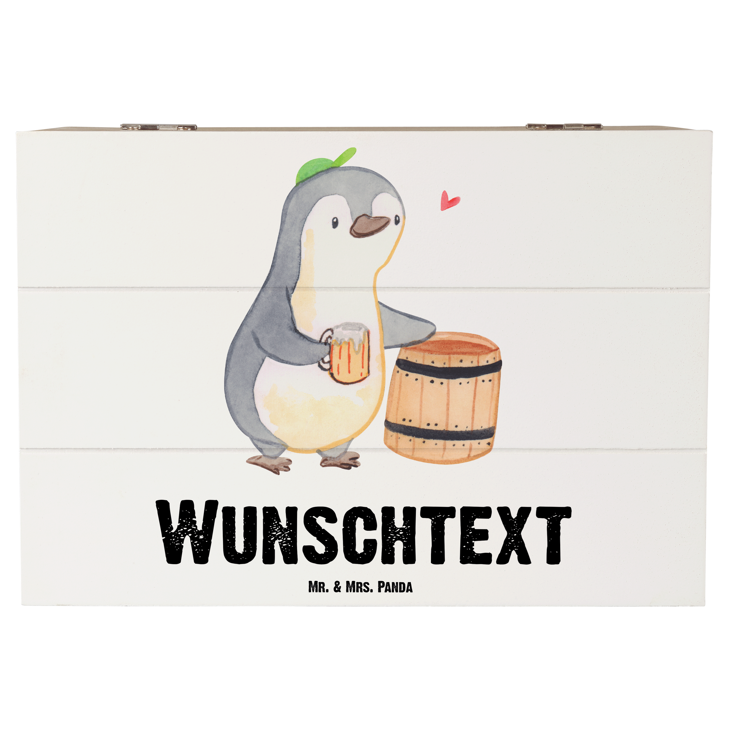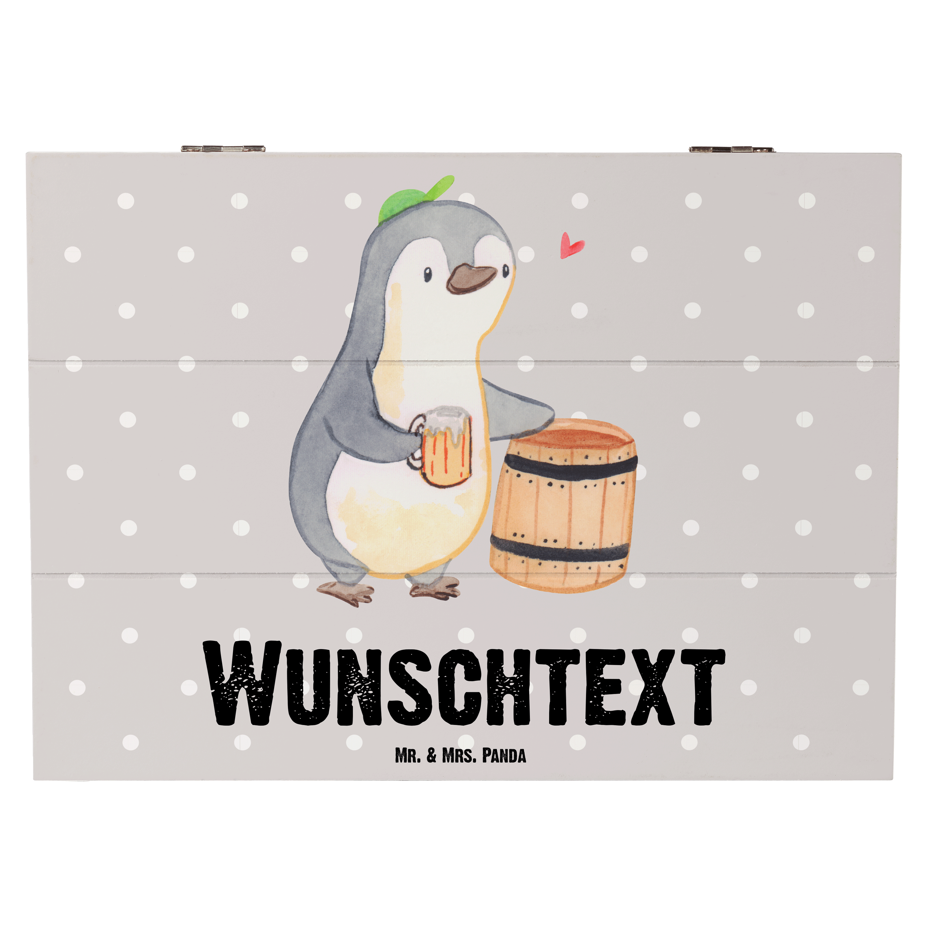 Personalisierte Holzkiste Pinguin Bester Trinkbruder der Welt - Grau Pastell - 19 x 12 cm