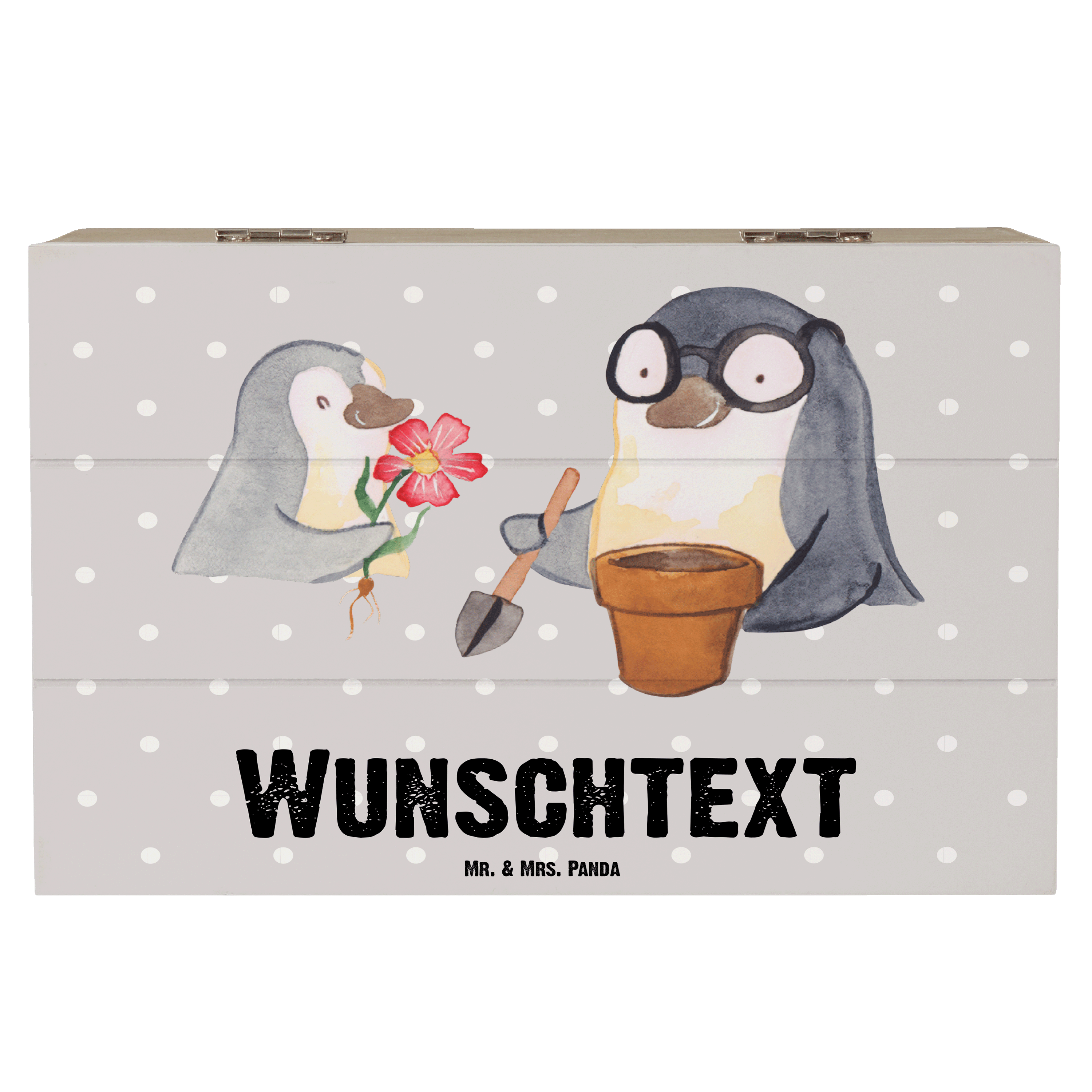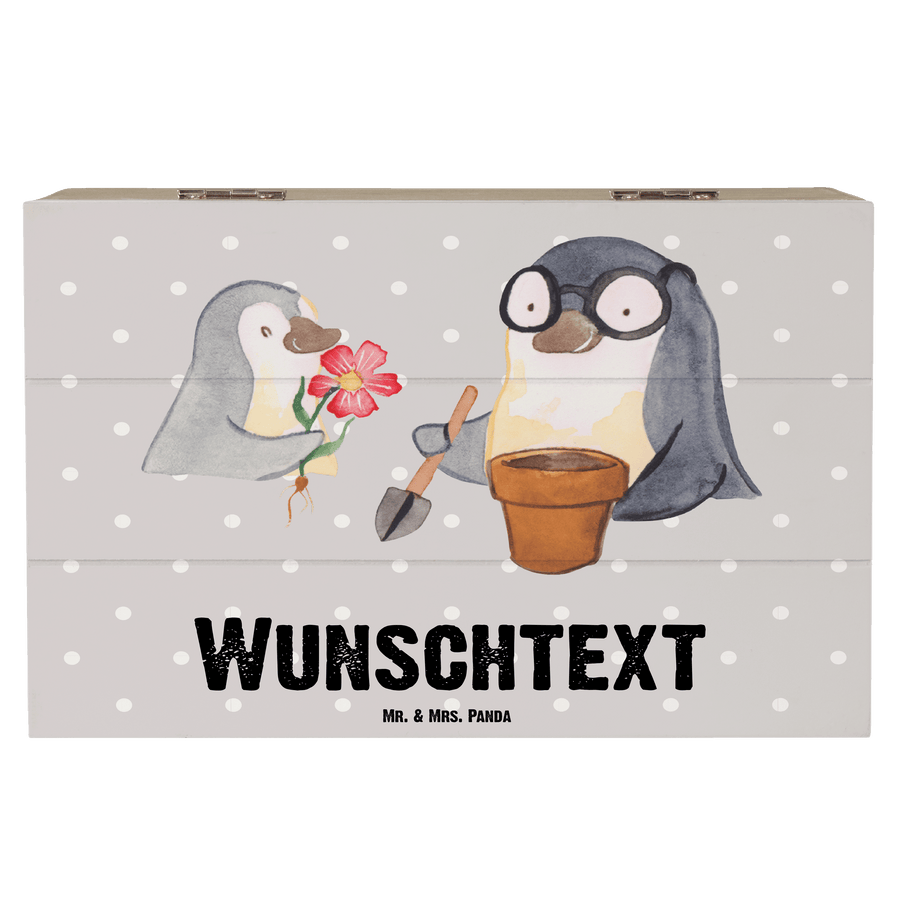 Personalisierte Holzkiste Pinguin Bester Uropa der Welt - Grau Pastell - 19 x 12 cm
