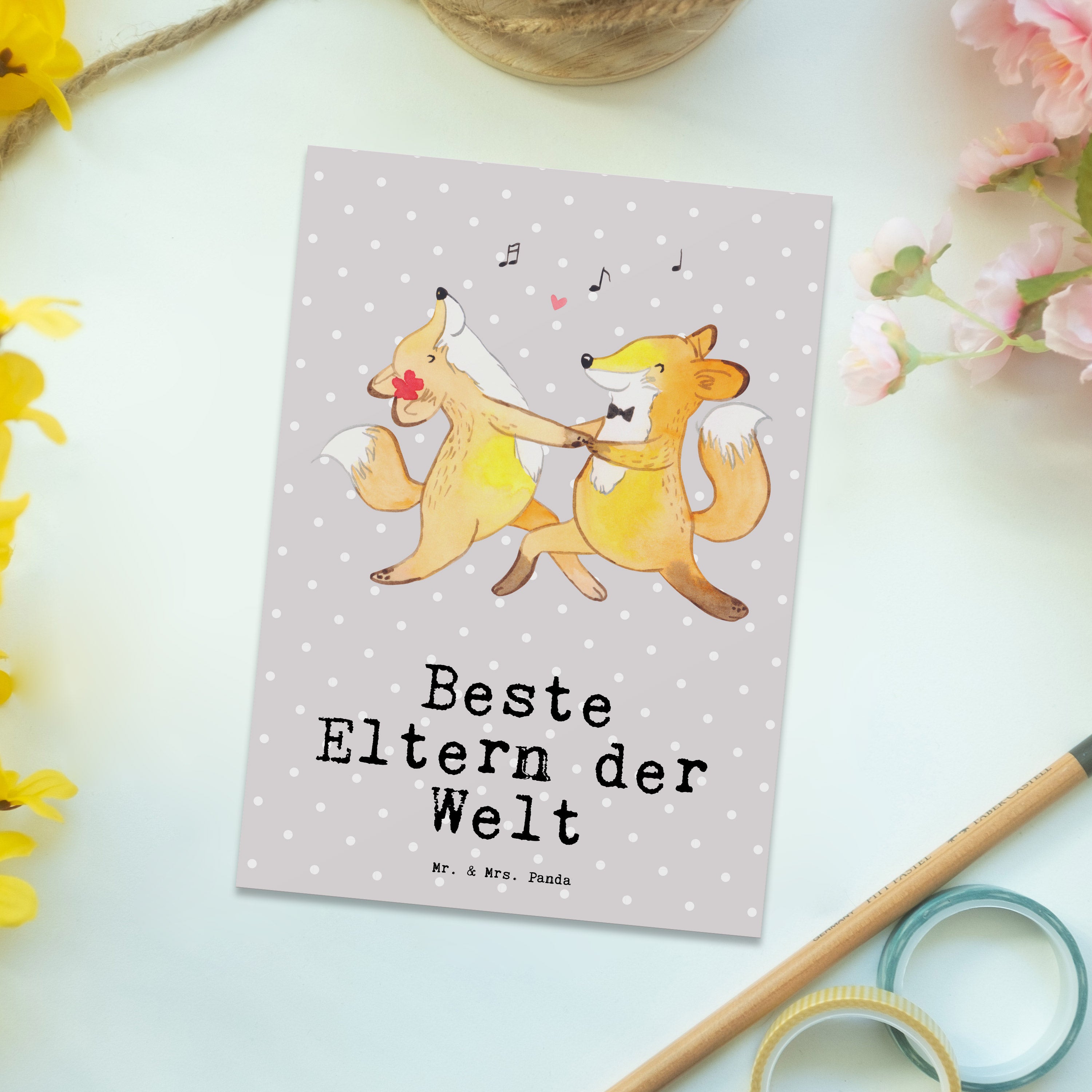 Postkarte Fuchs Beste Eltern der Welt - Grau Pastell