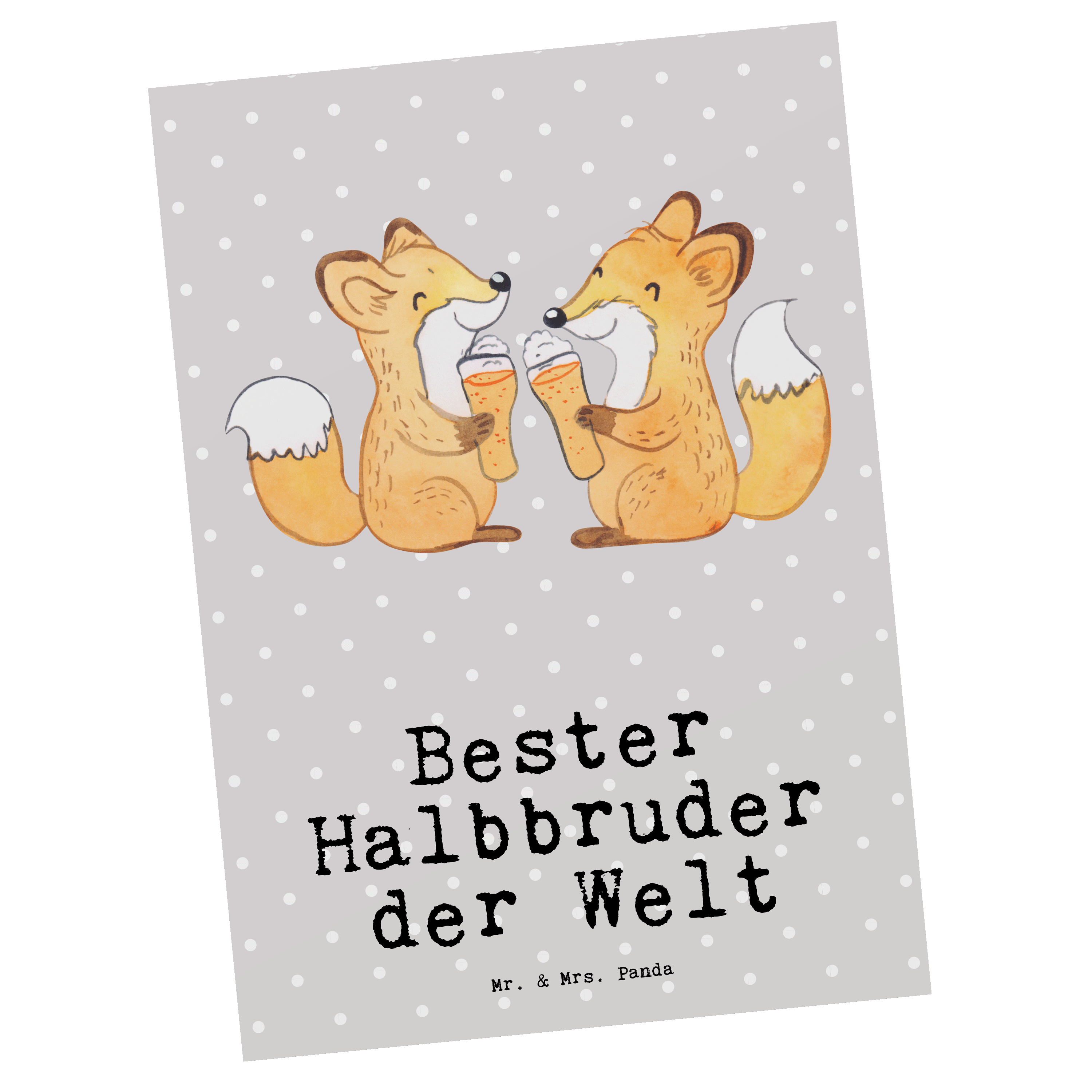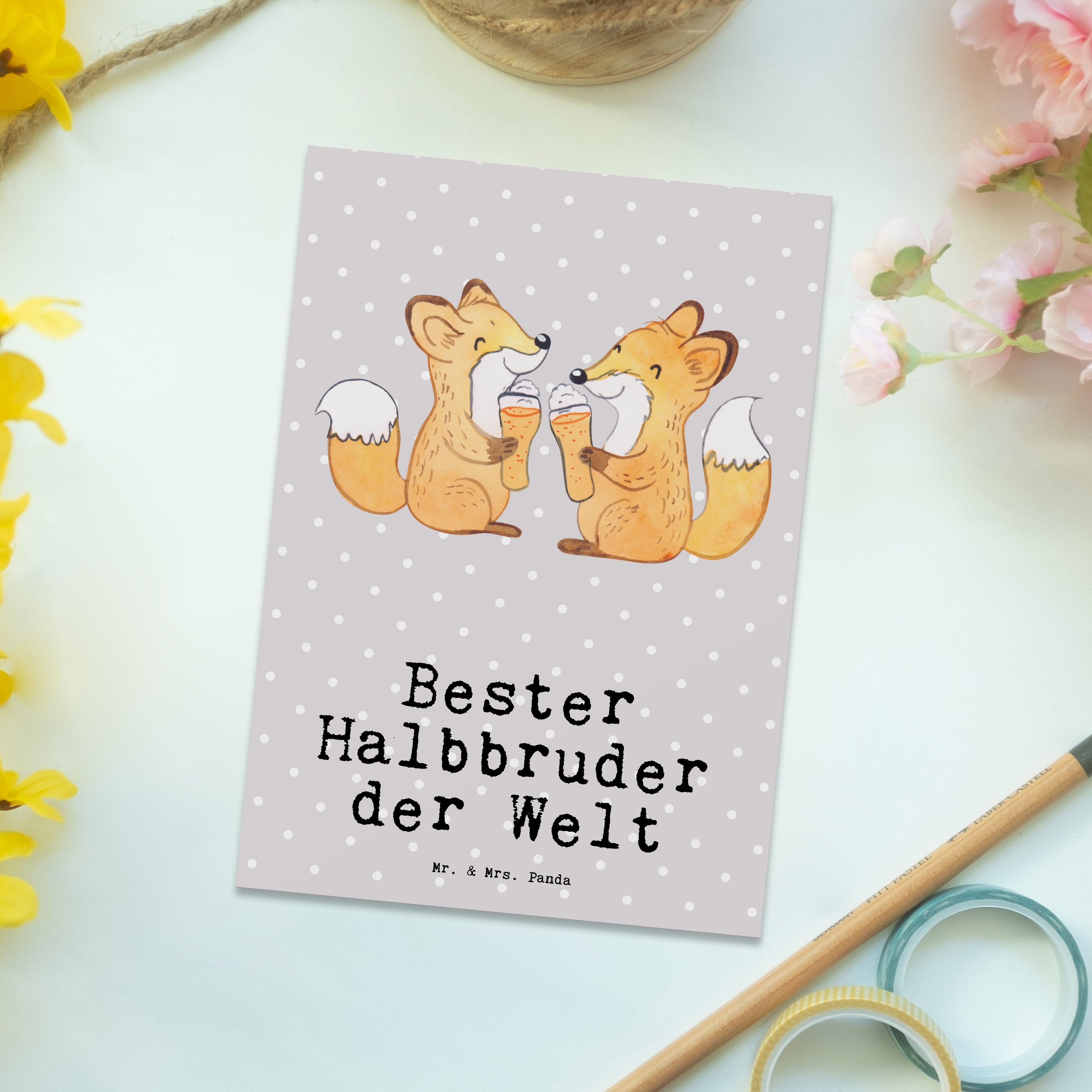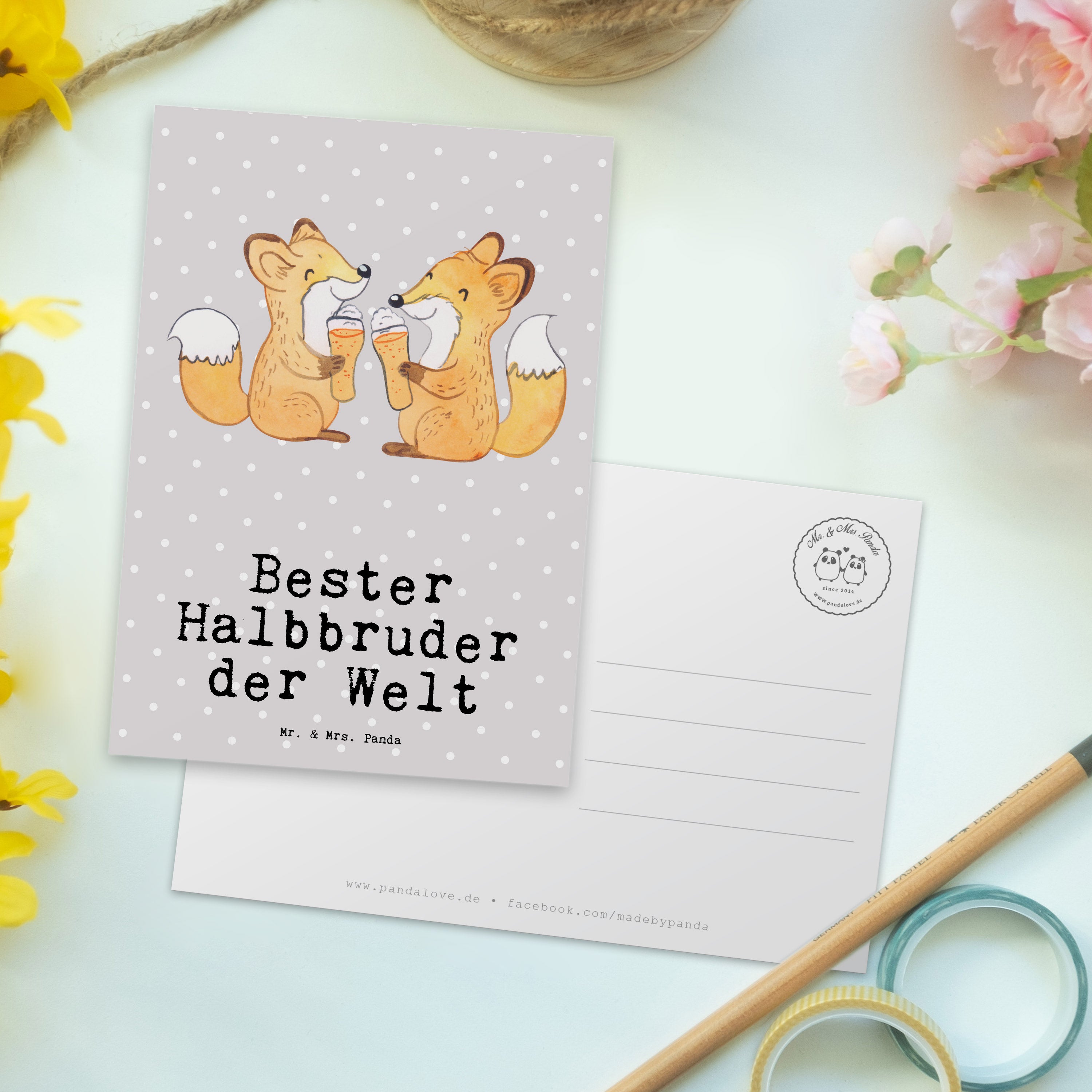 Postkarte Fuchs Bester Halbbruder der Welt - Grau Pastell