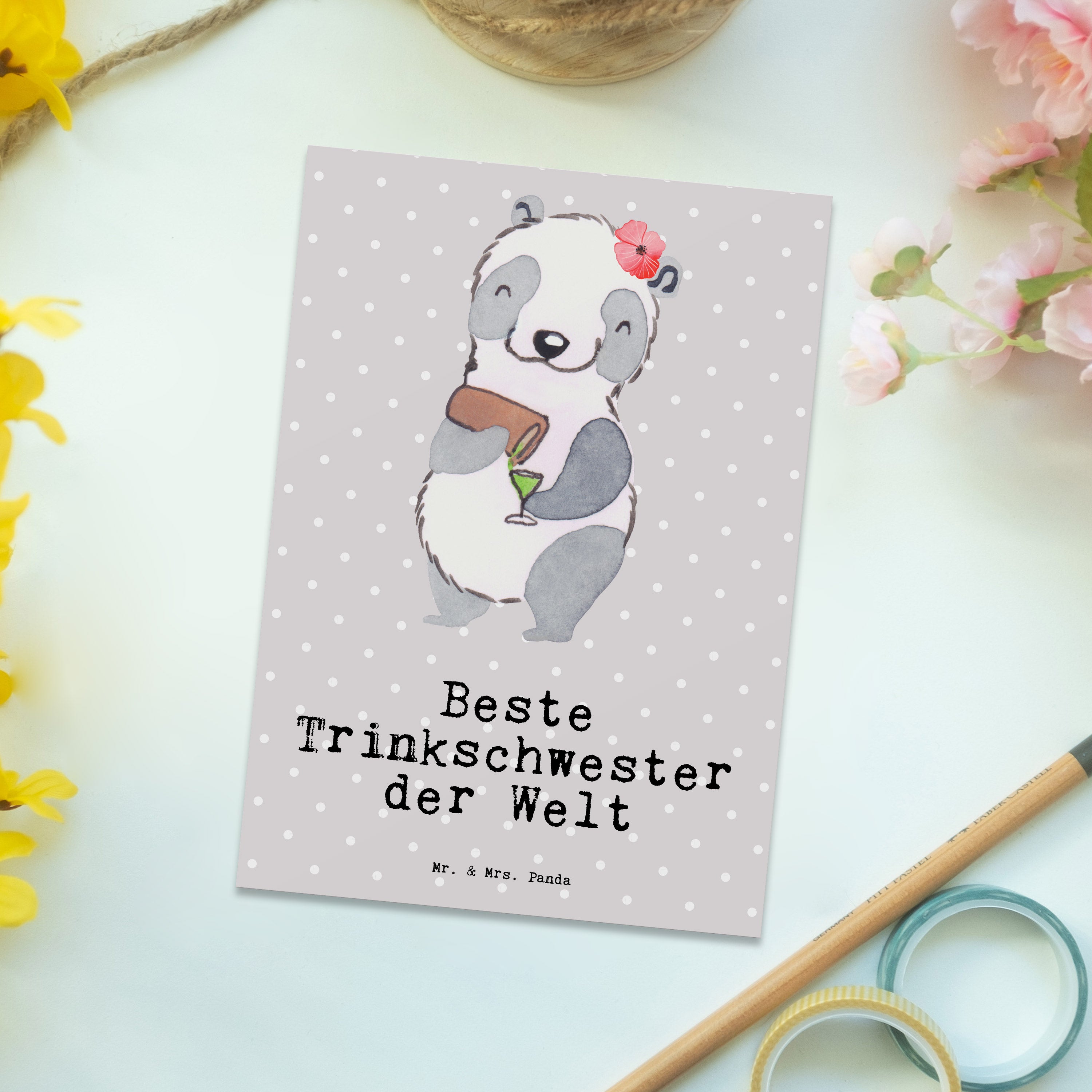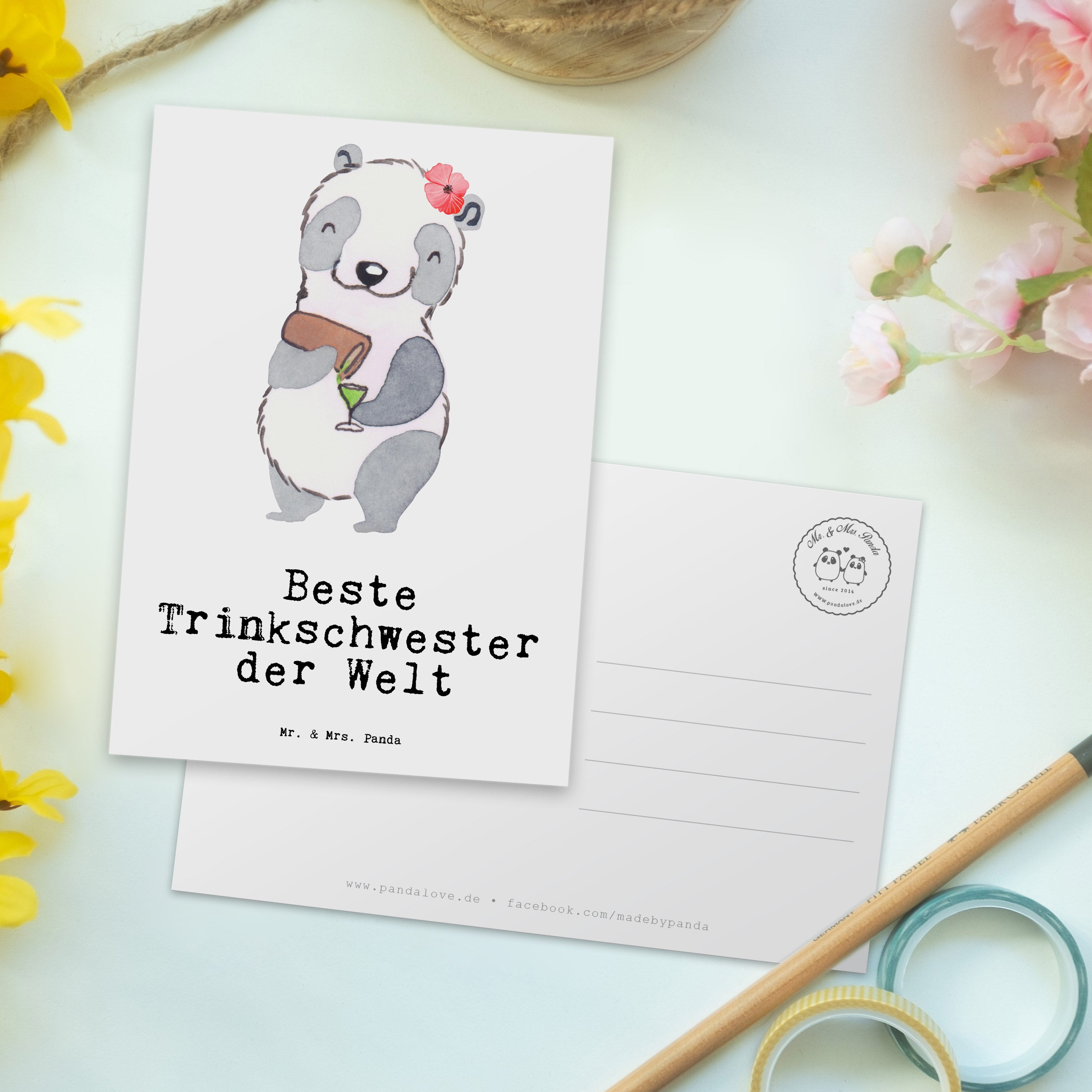Postkarte Panda Beste Trinkschwester der Welt Geschenkkarte, Grußkarte, Karte, Einladung, Ansichtskarte, Geburtstagskarte, Einladungskarte, Dankeskarte, für, Dankeschön, Geschenk, Schenken, Geburtstag, Geburtstagsgeschenk, Geschenkidee, Danke, Bedanken, Mitbringsel, Freude machen, Geschenktipp, Trinkschwester, Saufschwester, Schwester, Sister, Freundin, Party, Bae, Trinken, Alkohol, Wochenende, Kleinigkeit, Sister from another Mister
