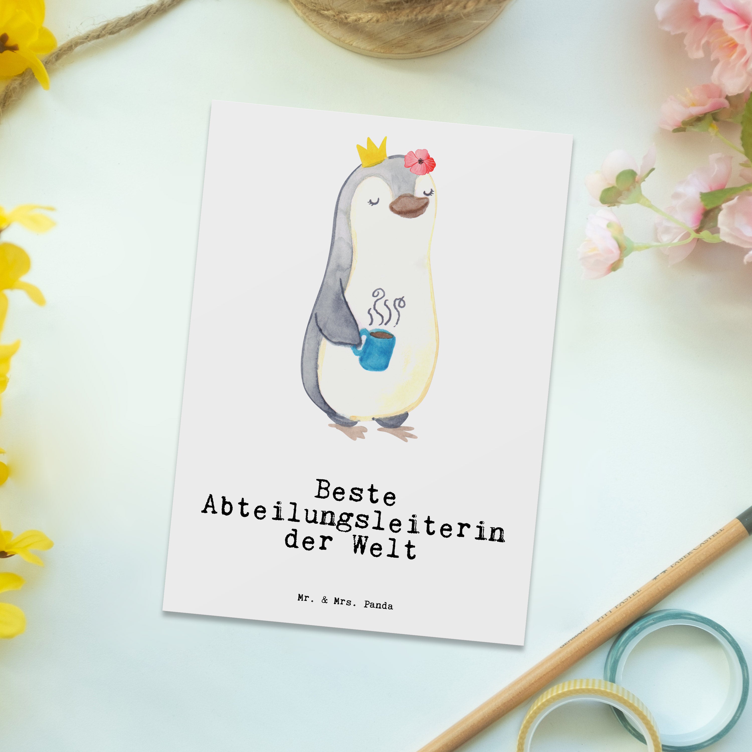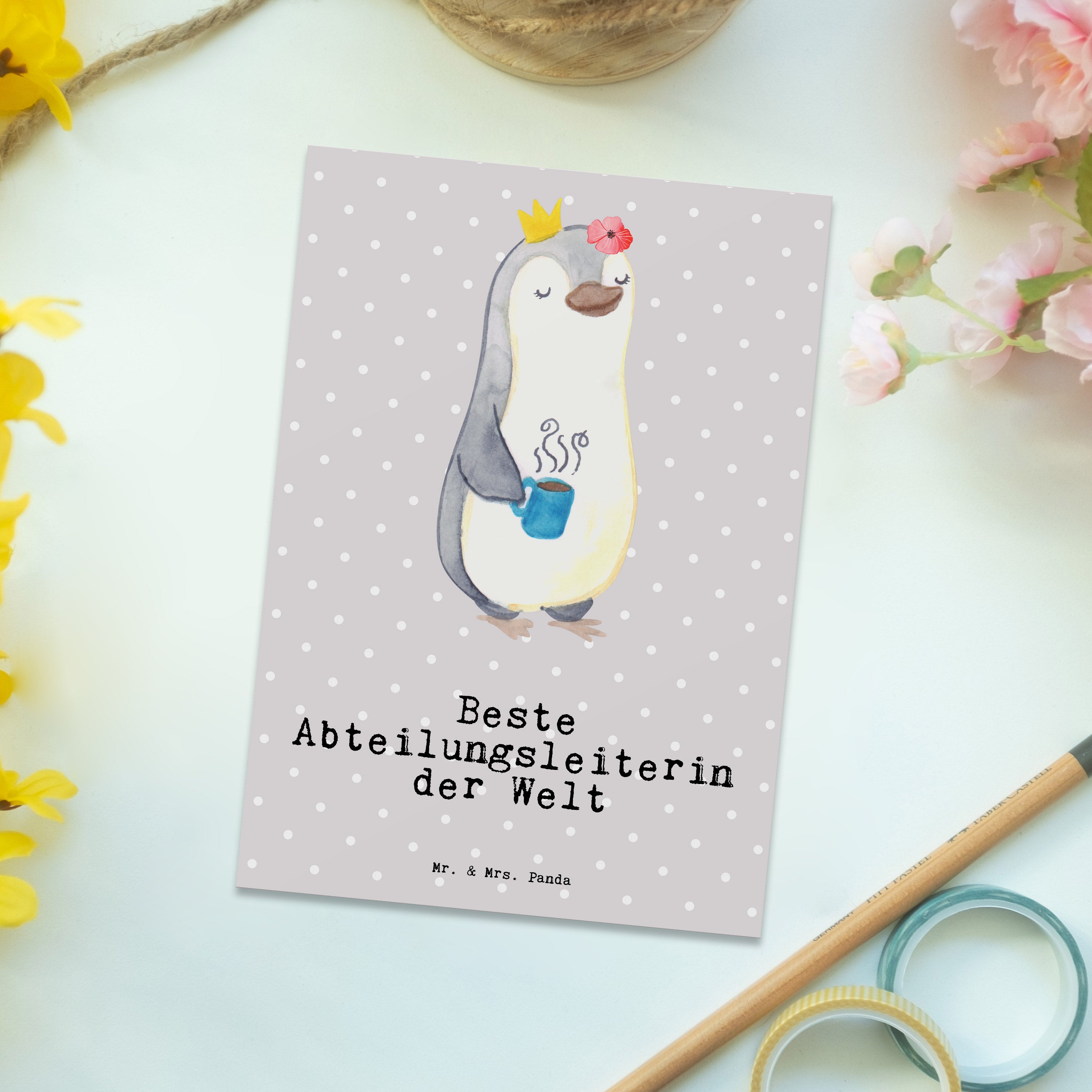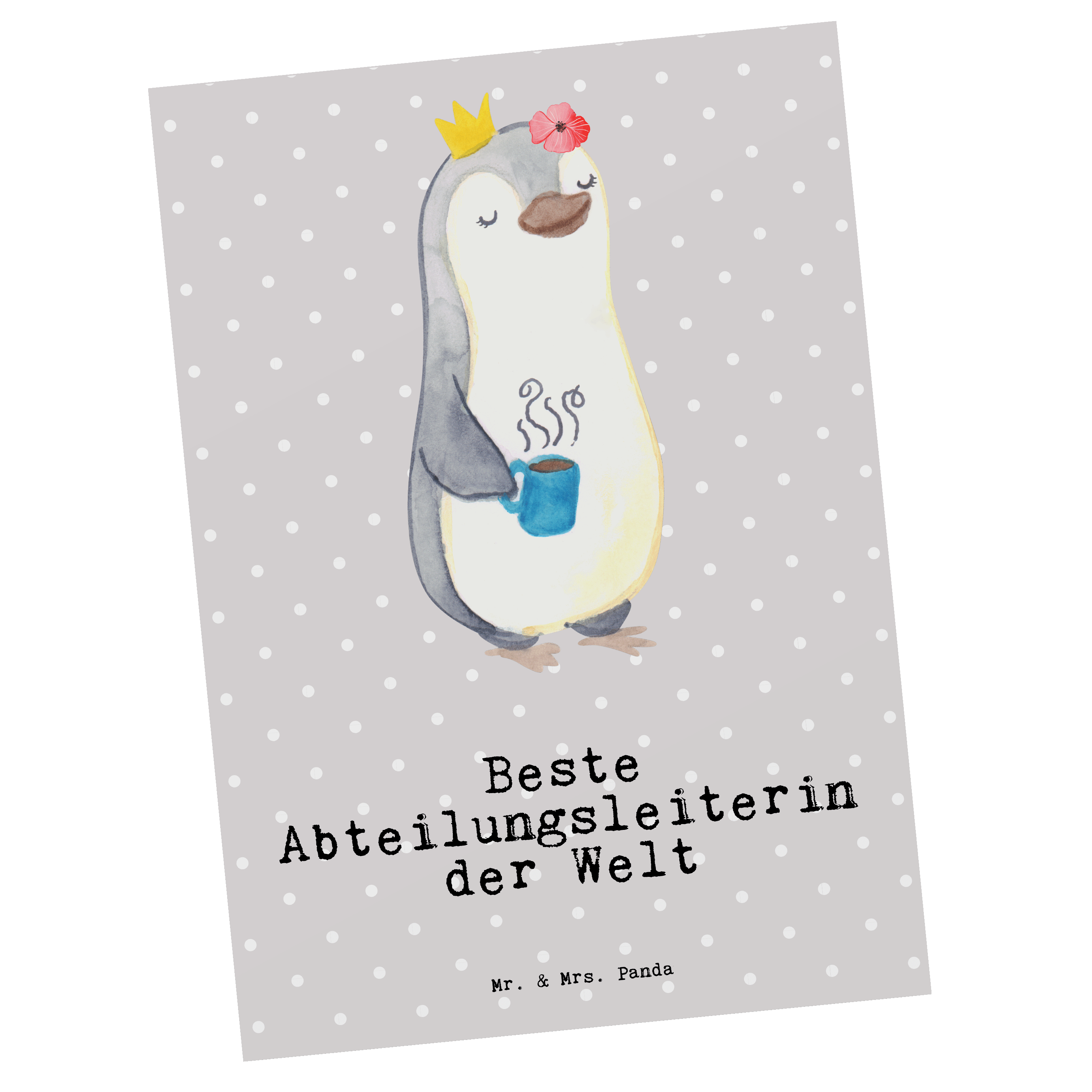 Postkarte Pinguin Beste Abteilungsleiterin der Welt - Grau Pastell