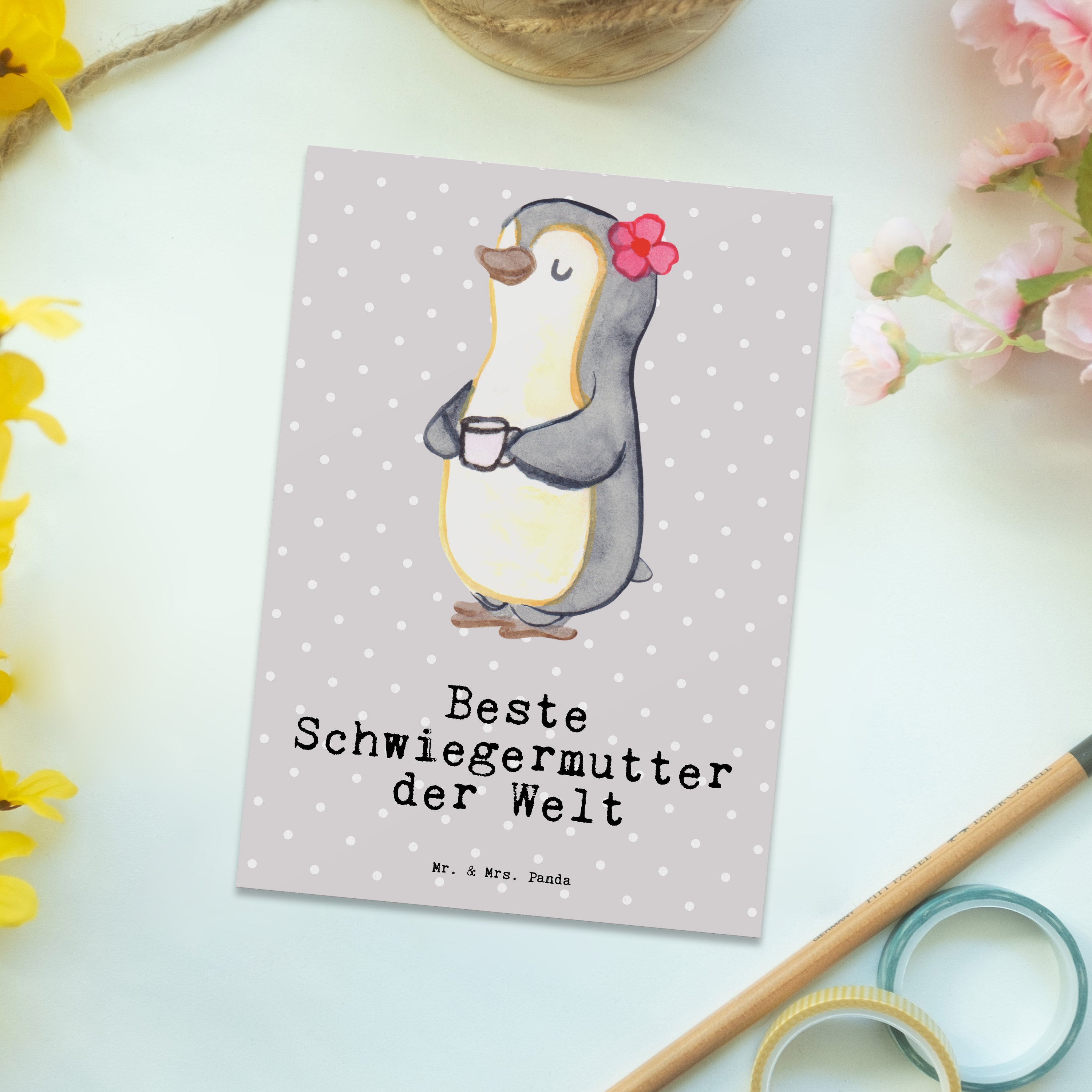 Postkarte Pinguin Beste Schwiegermutter der Welt - Weiß