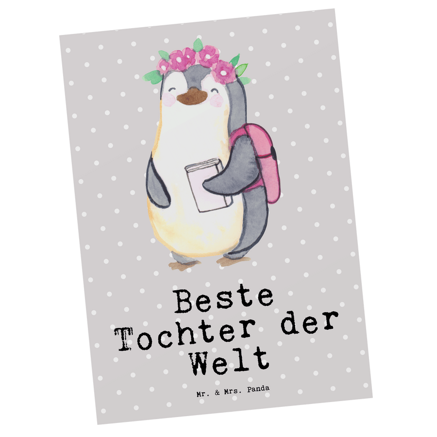Postkarte Pinguin Beste Tochter der Welt - Grau Pastell