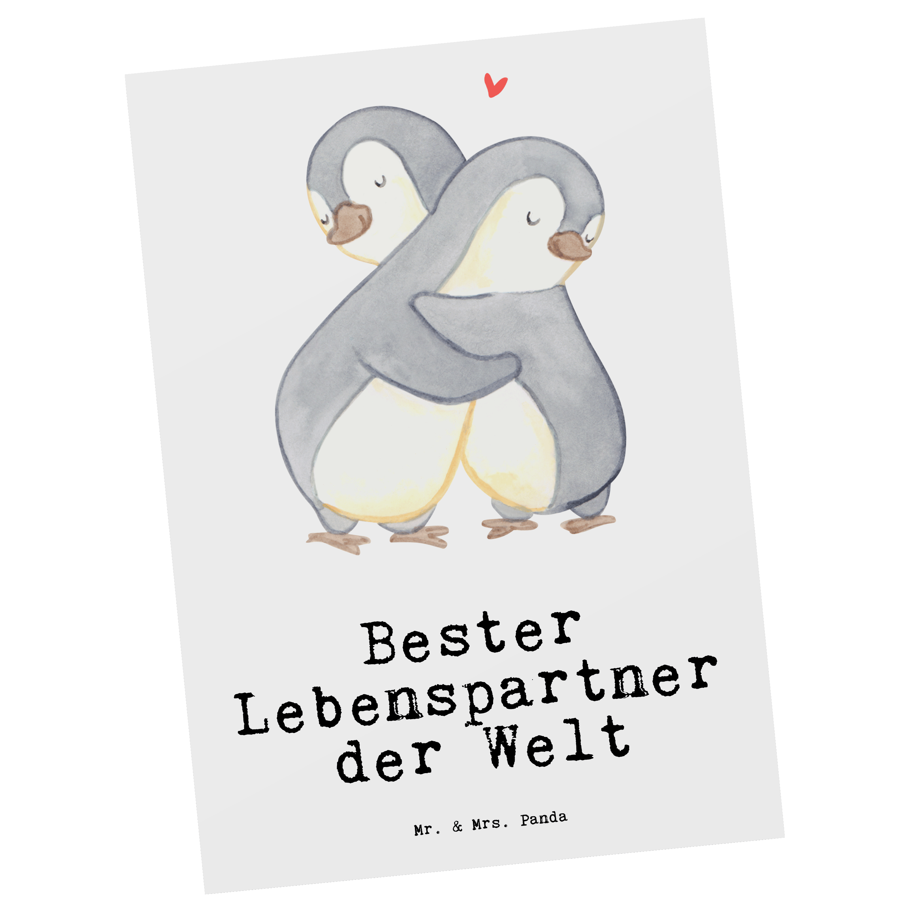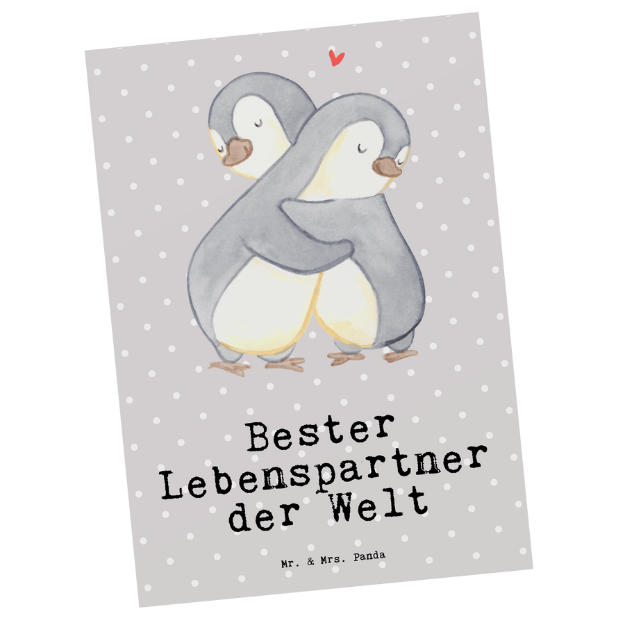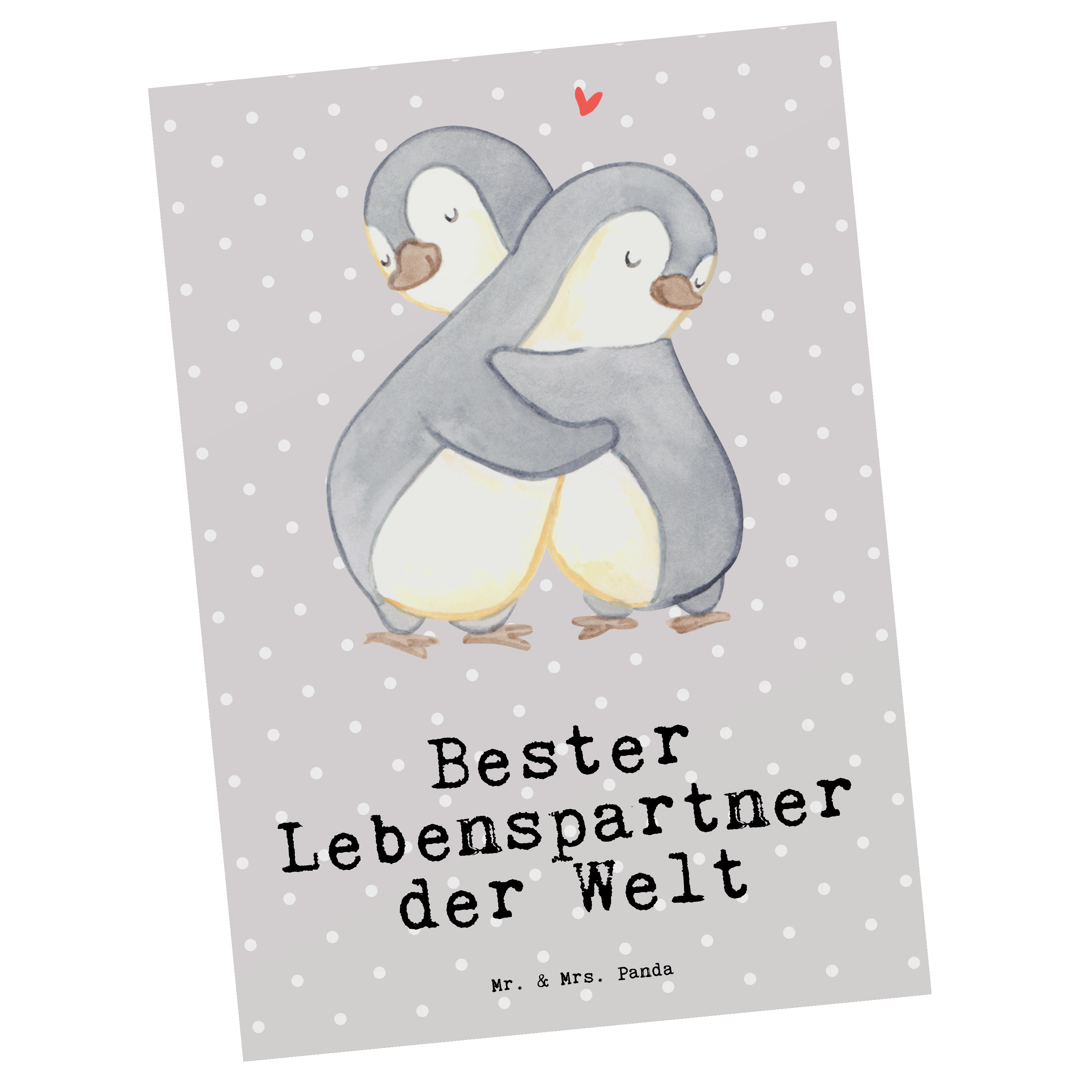 Postkarte Pinguin Bester Lebenspartner der Welt - Grau Pastell