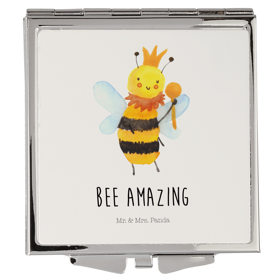 Handtaschenspiegel quadratisch Biene König - mit Spruch - Weiß