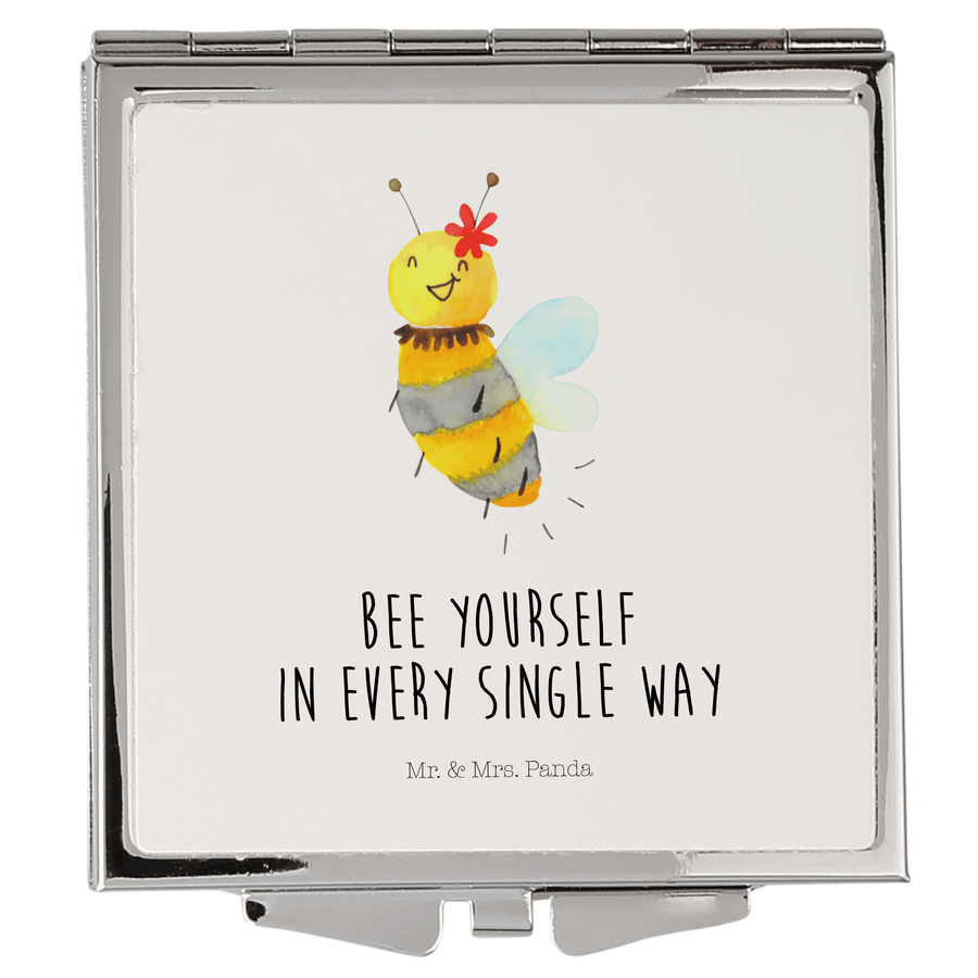 Handtaschenspiegel quadratisch Biene Blume - mit Spruch - Weiß
