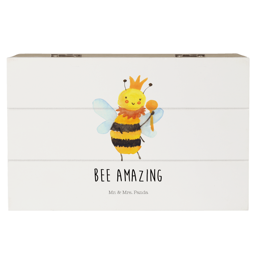 Holzkiste Biene König - 19 x 12 cm - mit Spruch - Weiß