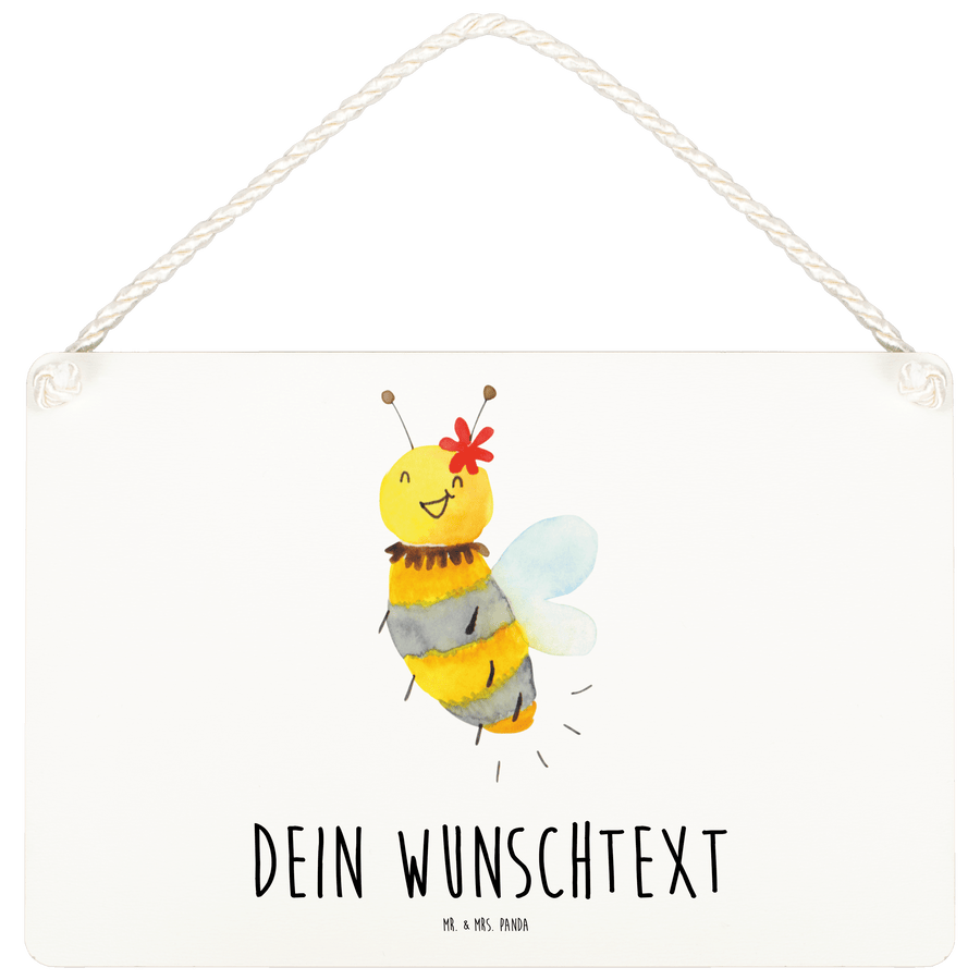 Personalisiertes Deko Schild Biene Blume - DIN A6 - Weiß