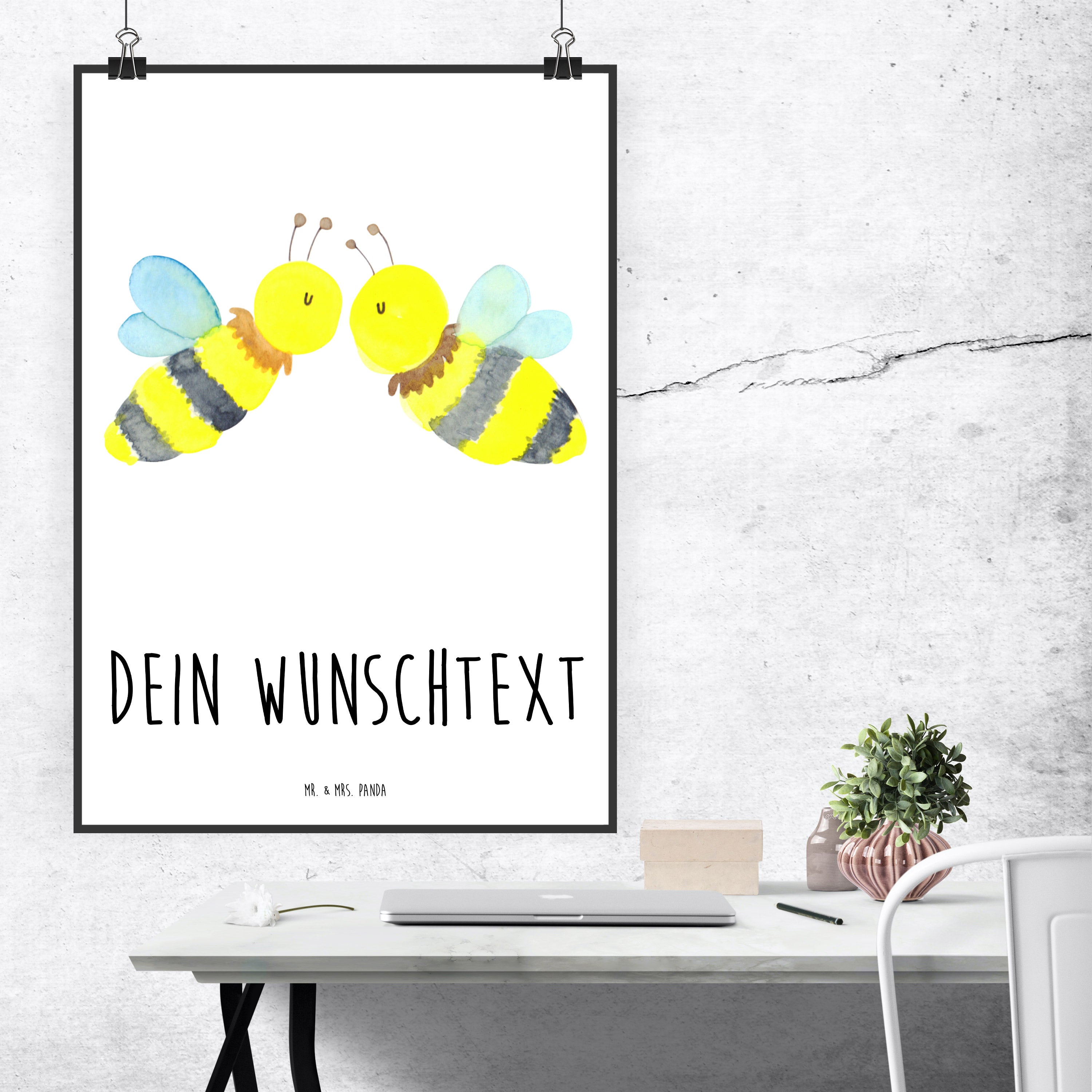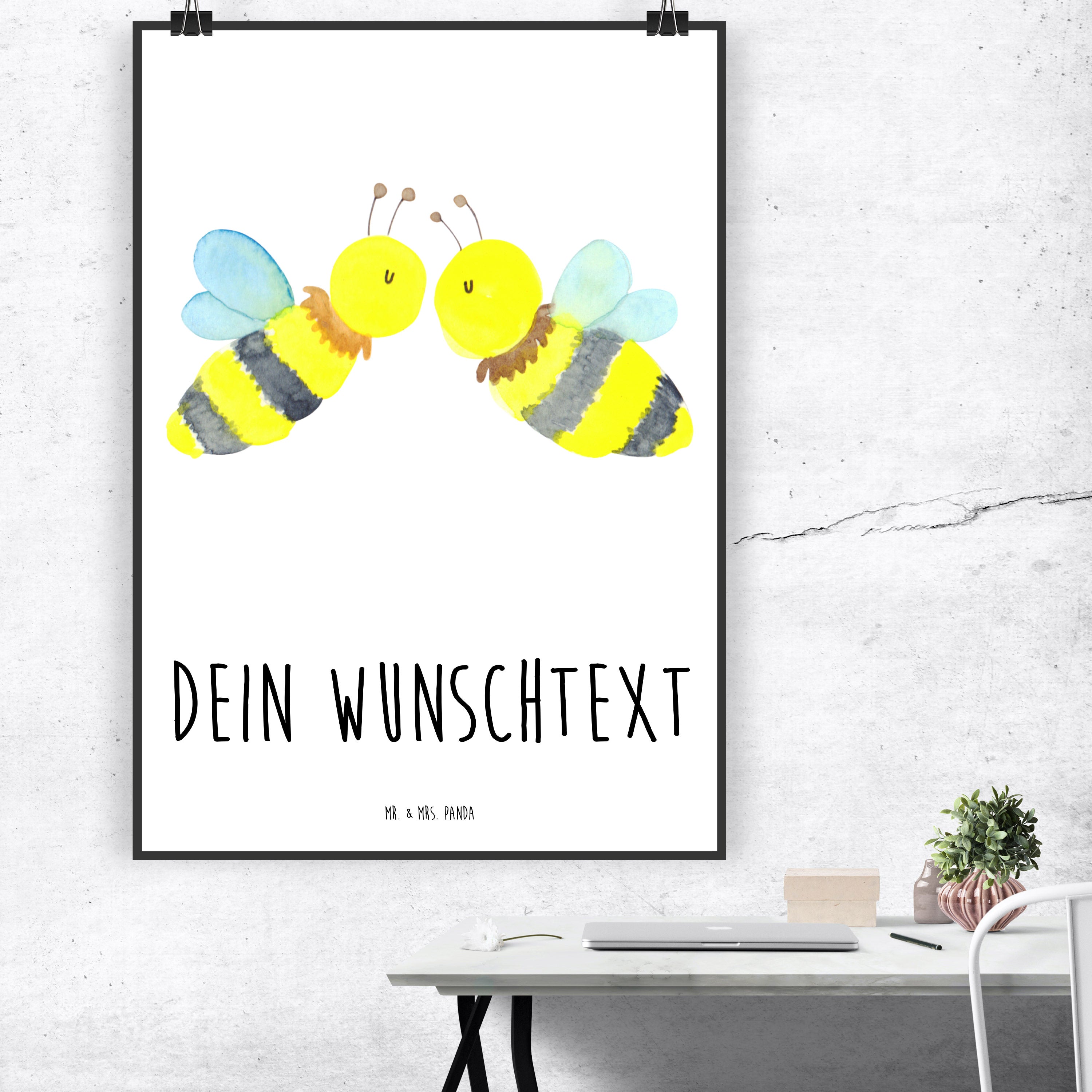 Mit unserem Motiv "Biene Liebe" feierst du deine Liebe auf eine süße und romantische Weise. Die beiden Bienen sind das perfekte Paar und zeigen mit ihrem innigen Kuss, welch starke Gefühle zwischen ihnen herrschen. Das handgezeichnete Design von Mr. & Mrs. Panda ist sehr fein und detailreich, wodurch das Motiv zu einem echten Unikat wird. Hol dir jetzt "Biene Liebe" und lasse deine Liebe hochleben.