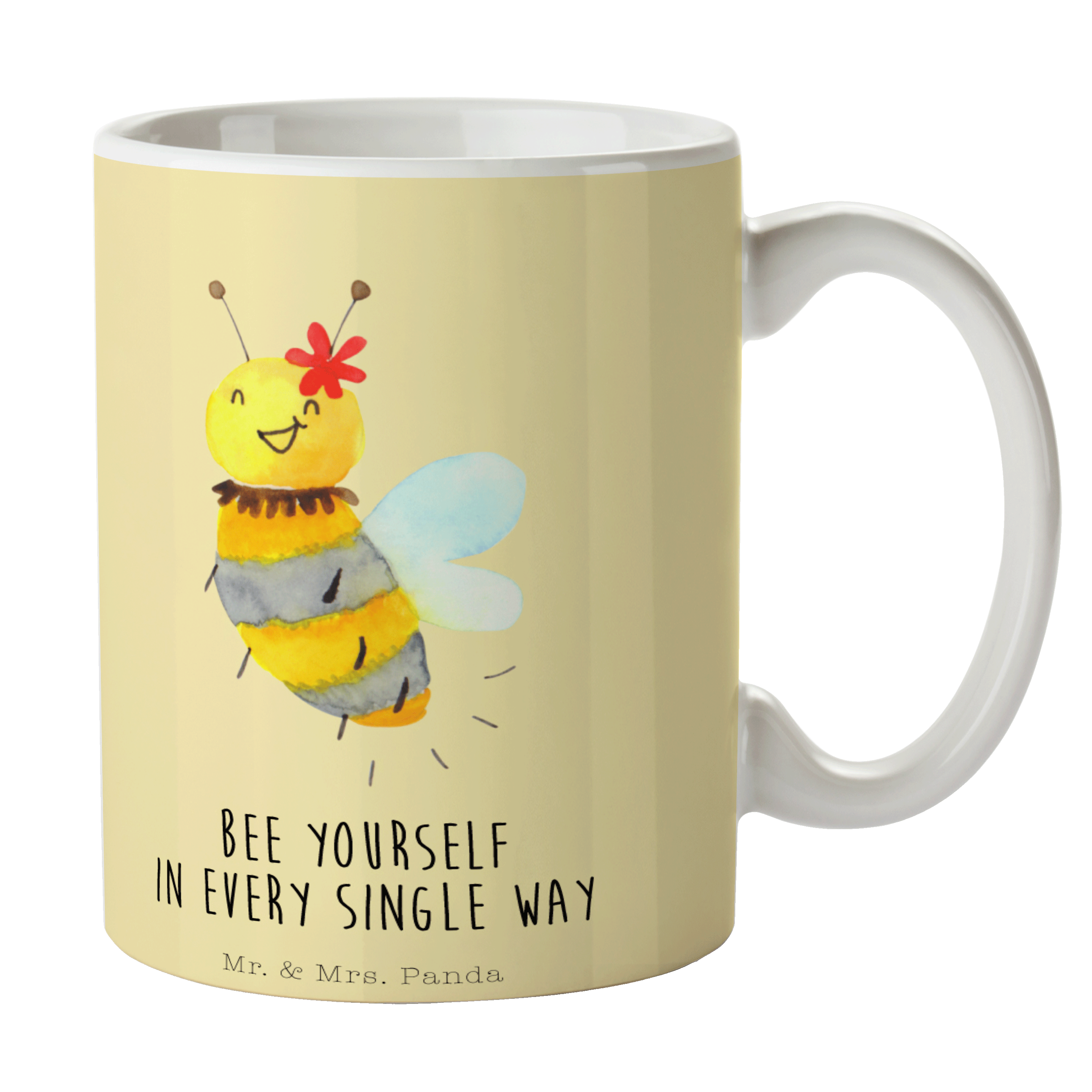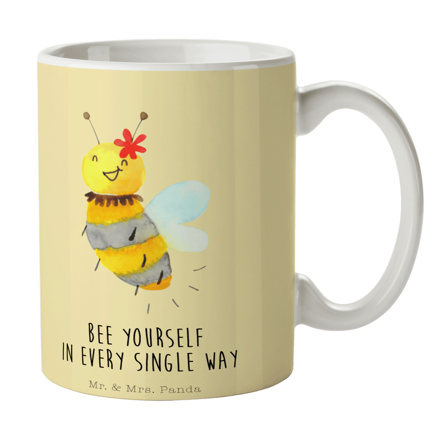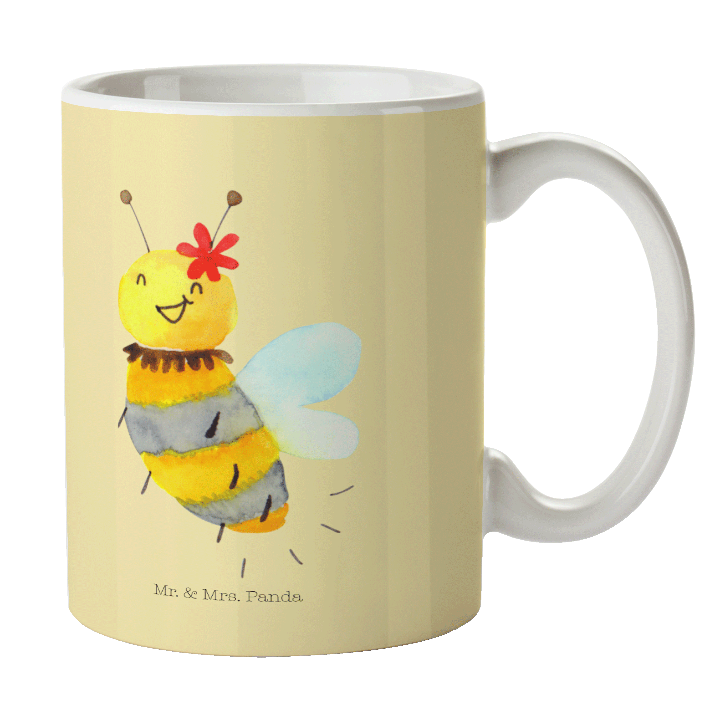 Tasse Biene Blume - mit Spruch - Gelb Pastell