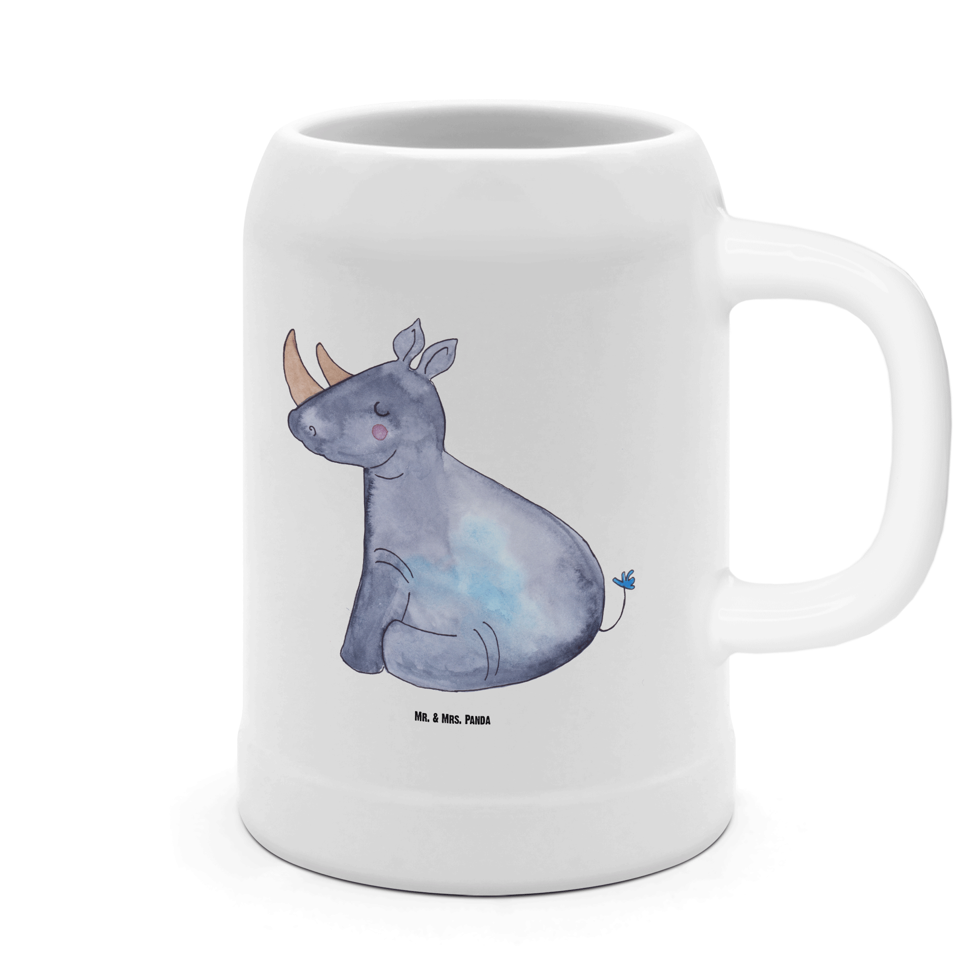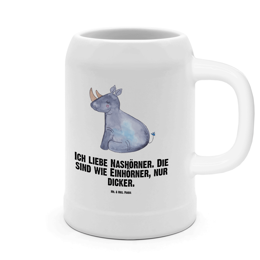 Das glückliche Nashorn zeigt: Einhörner sind gar nicht so selten. Sie sind eben nur ein bisschen dicker. Das perfekte Motiv, um ein Schmunzeln zu erzwingen.