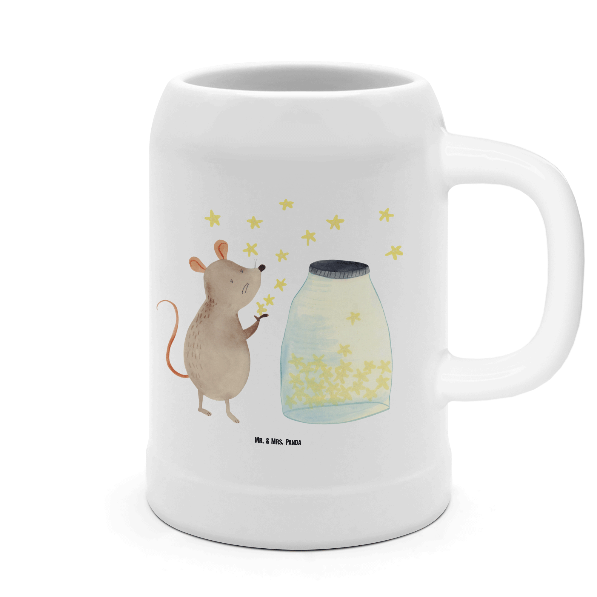 Lass dich von der süßen Maus verzaubern, die vor einem Glas funkelnder Sterne sitzt und jeden einzelnen in die Freiheit entlässt. Sie träumt von Abenteuern und entführt dich mit ihren Sternen auf eine wunderbare Reise durch die Weiten des Universums.