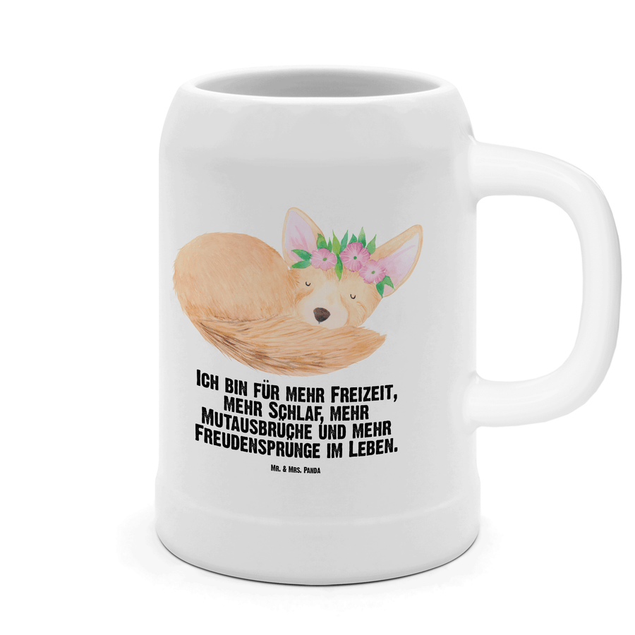 Bierkrug Wüstenfuchs Blumenkranz - mit Spruch