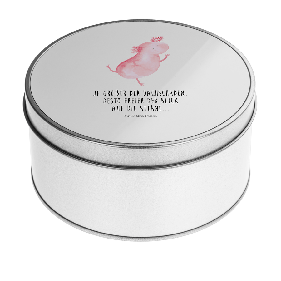 Blechdose rund Axolotl tanzt - mit Spruch - Weiß