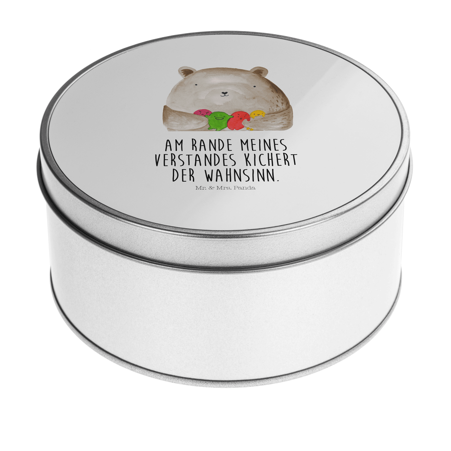 Blechdose rund Bär Gefühl - mit Spruch - Weiß