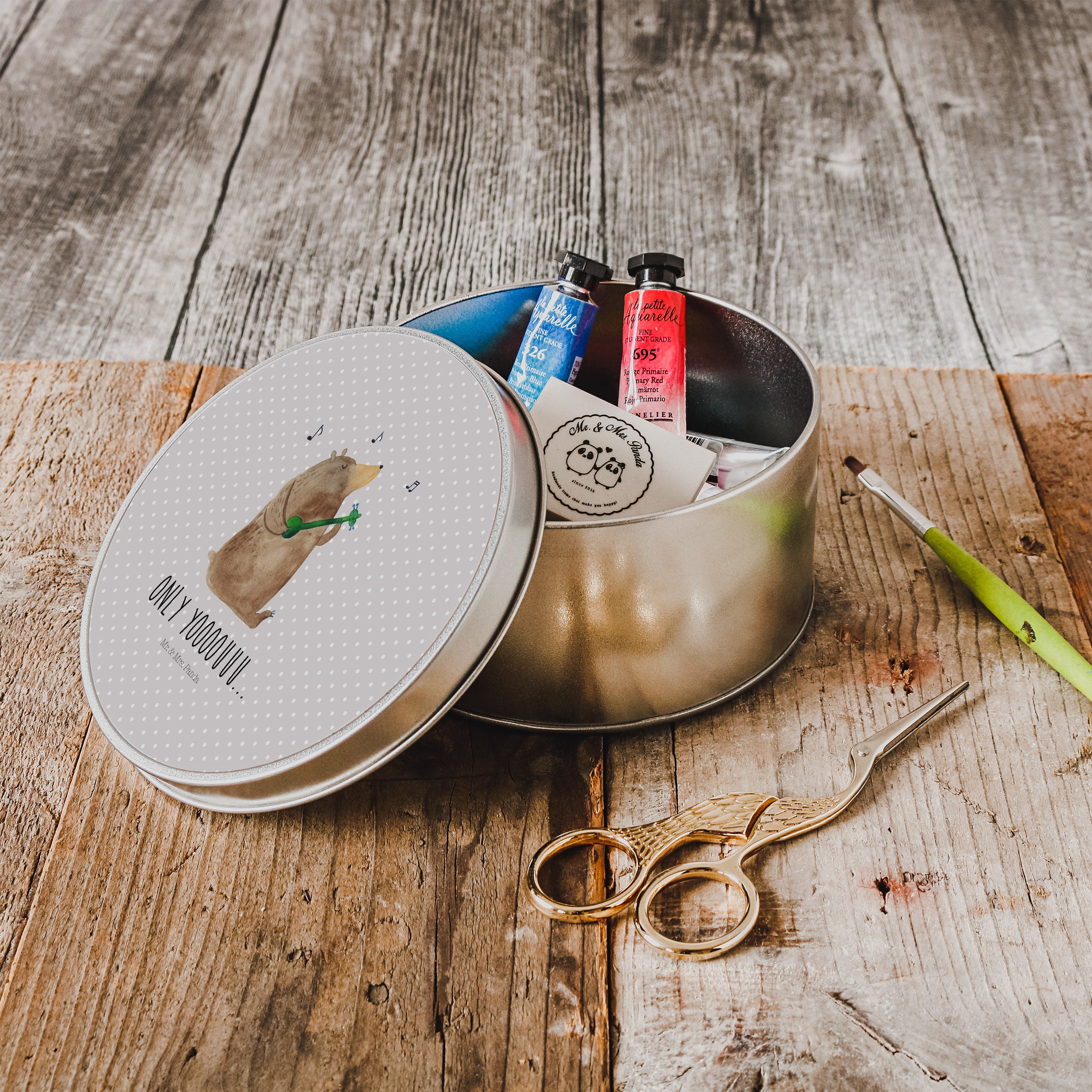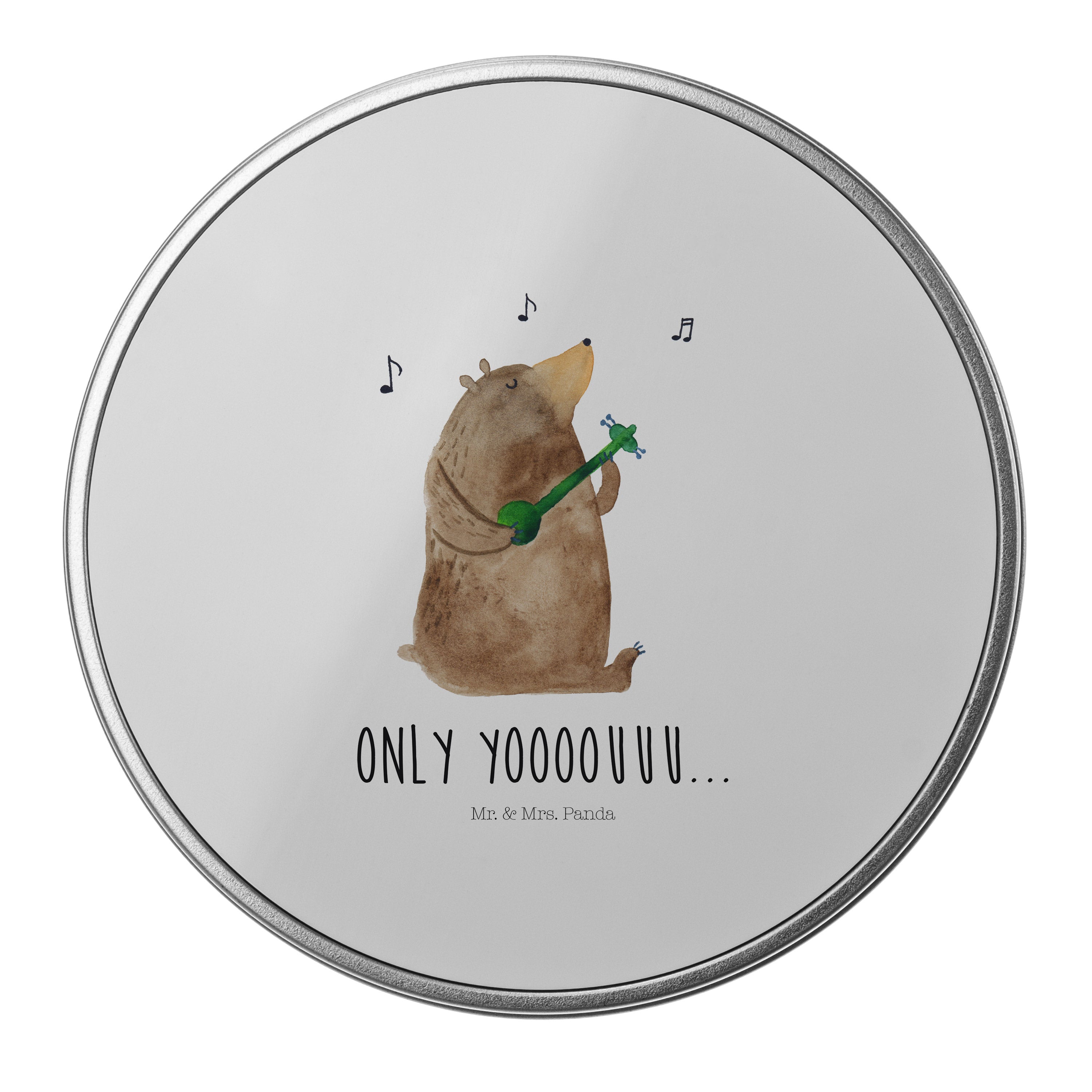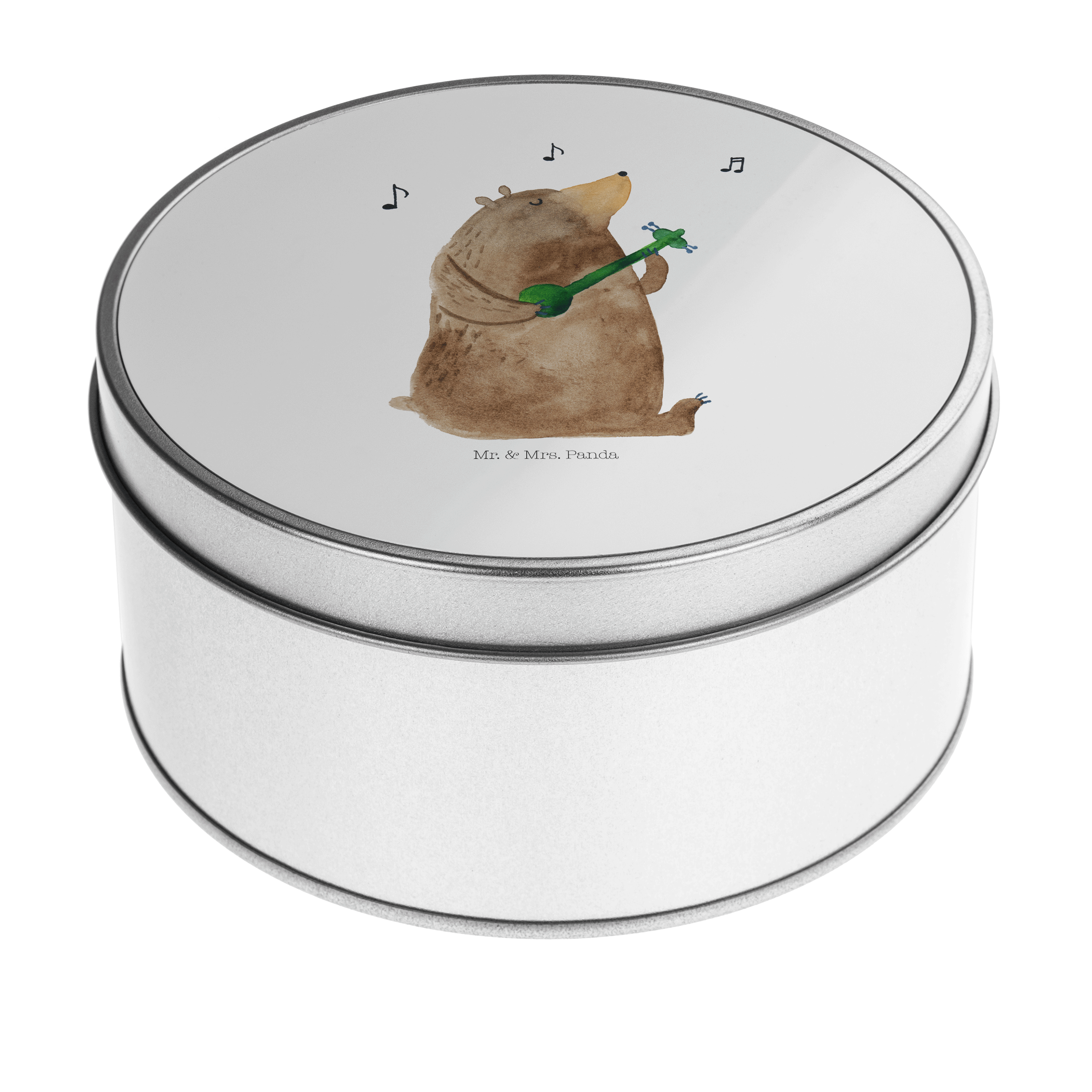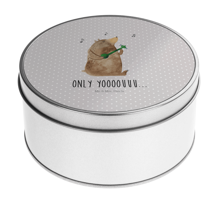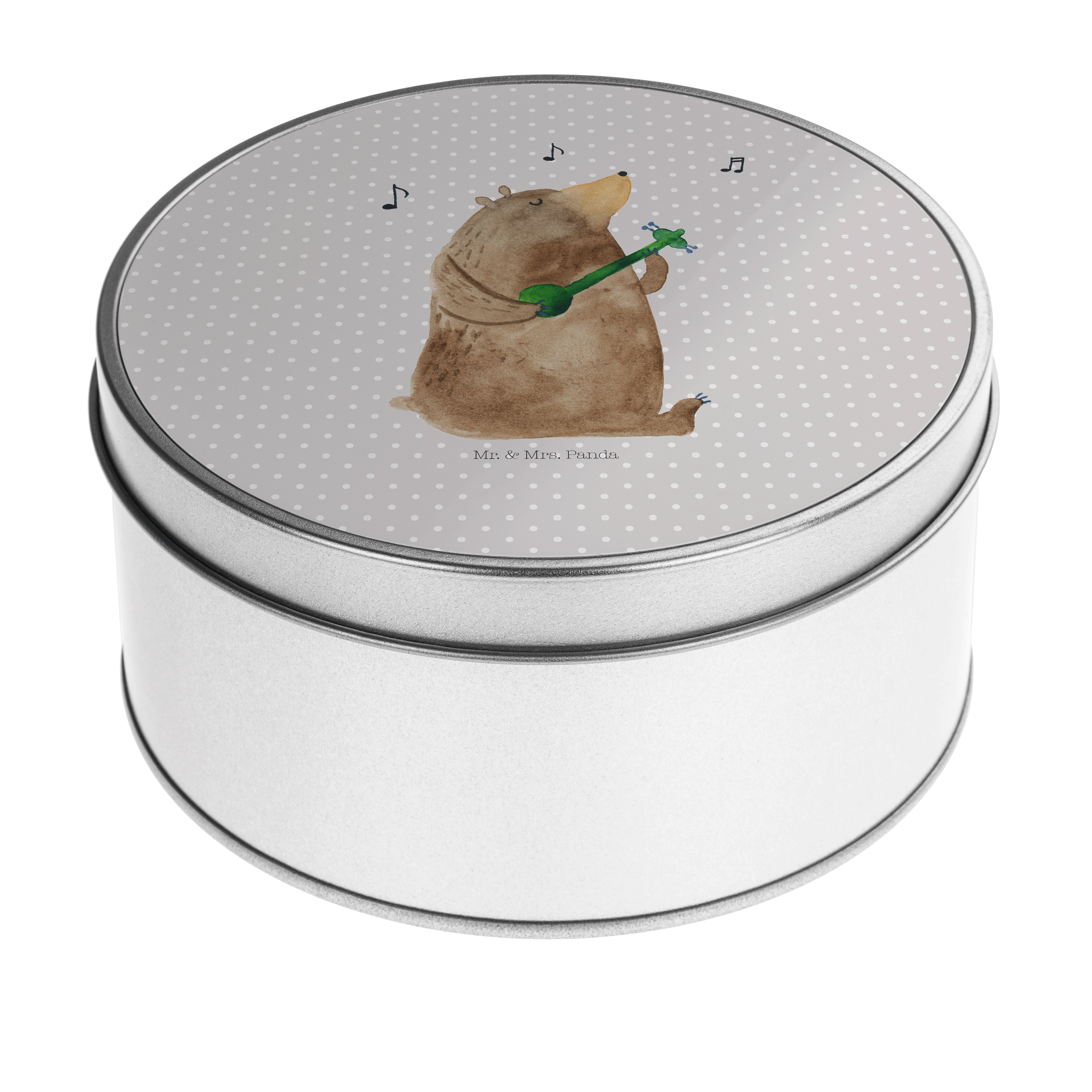 Blechdose rund Bär Gitarre - mit Spruch - Grau Pastell